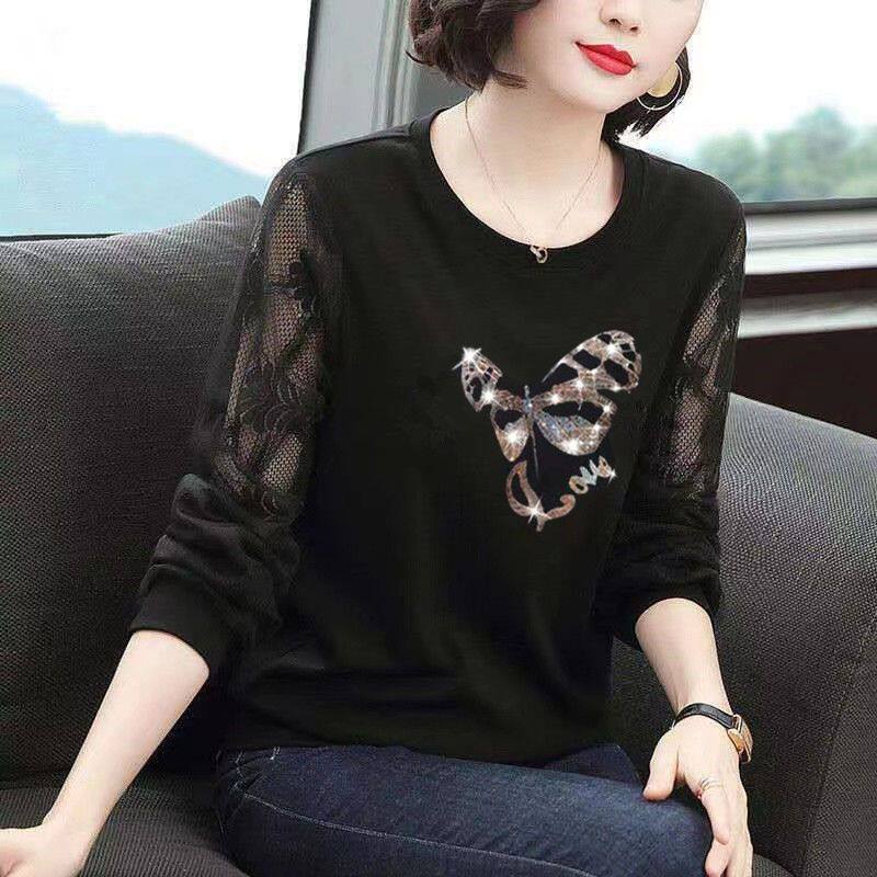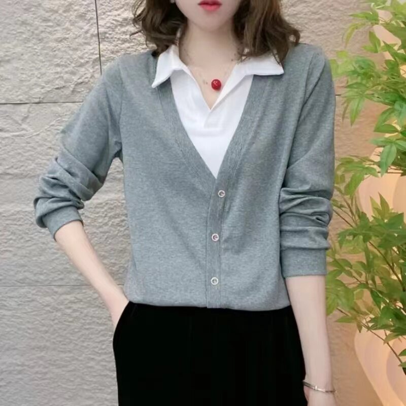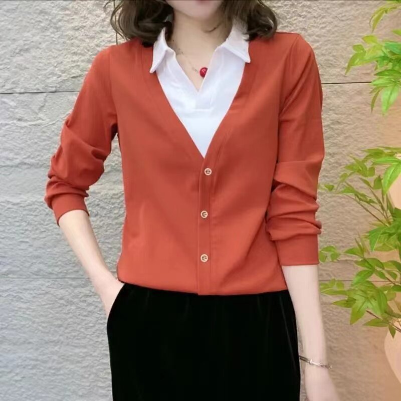 2025新款时尚气质假两件长袖小衫洋气百搭显瘦减龄女士上衣