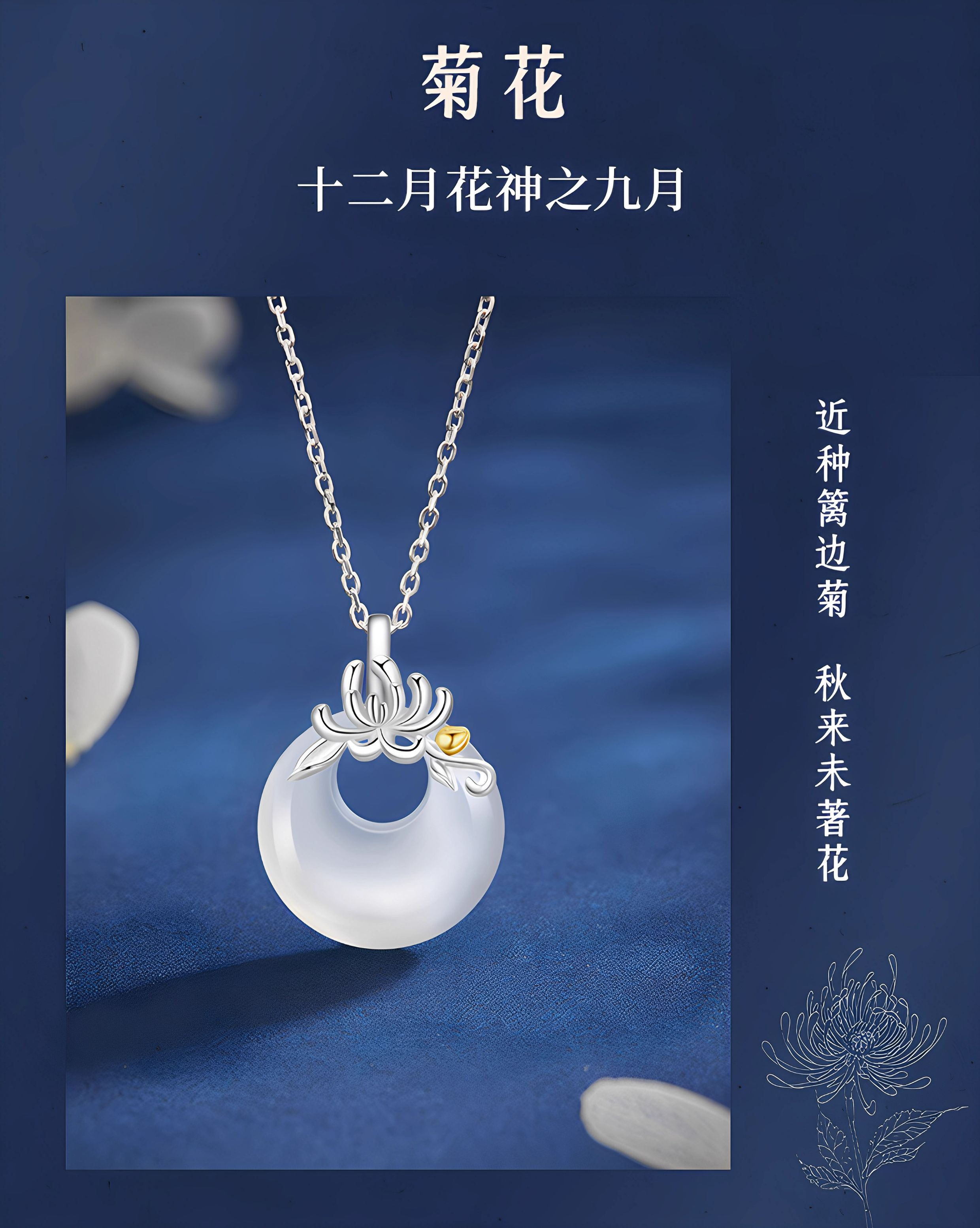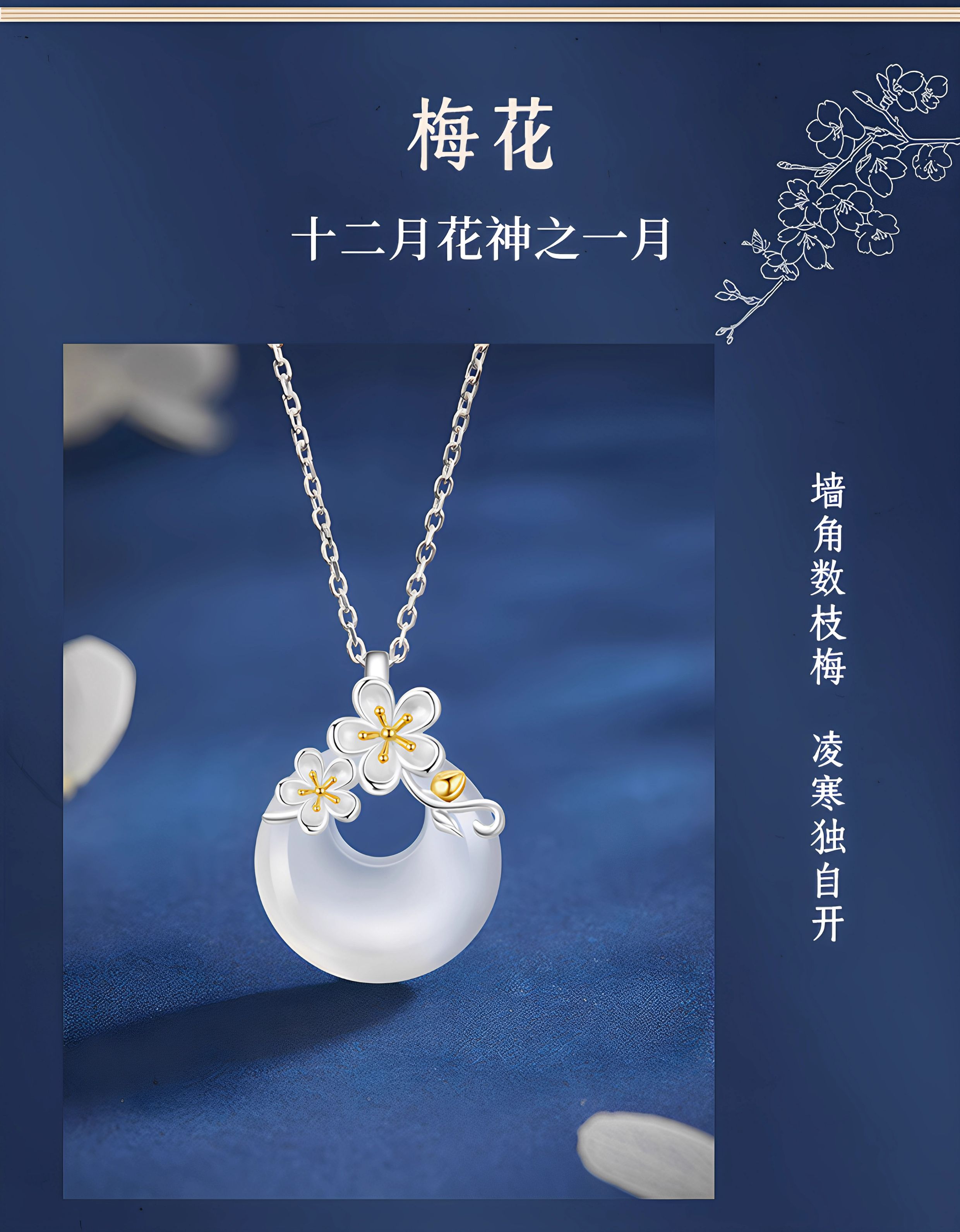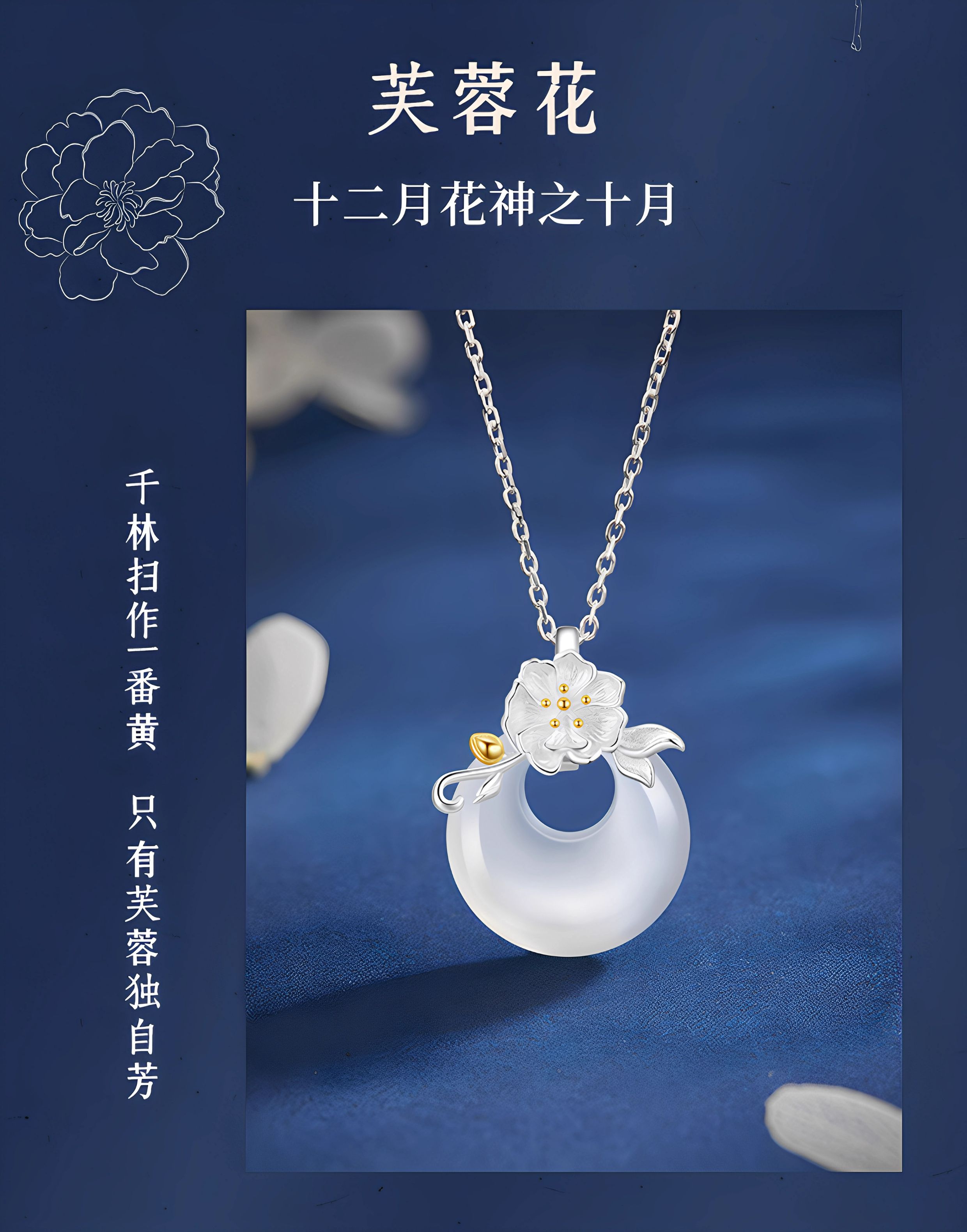 中国黄金山茶花纯银项链女平安扣项链轻奢小众吊坠生日礼物送女友