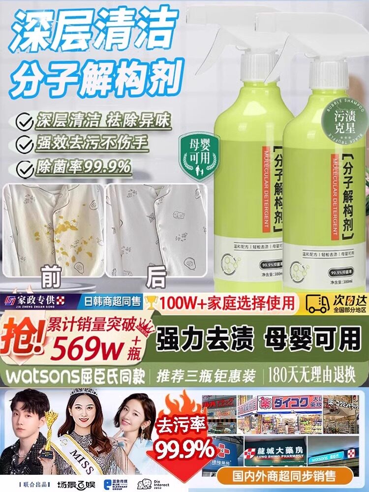 【官方正品】分子解构剂衣物干洗剂去黄去渍无痕持久留香去污神器