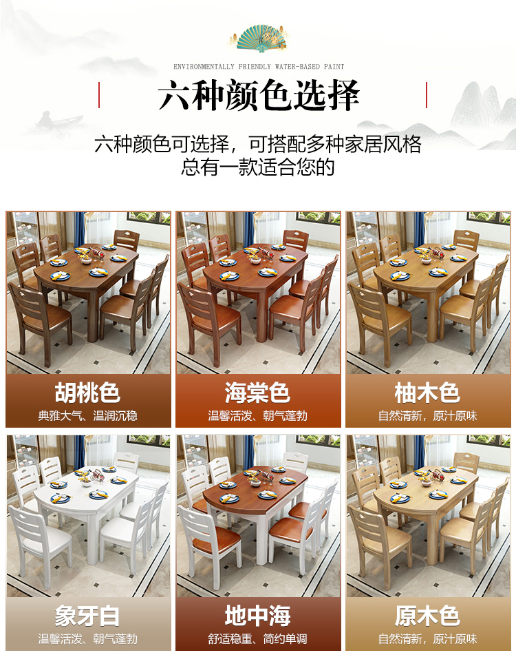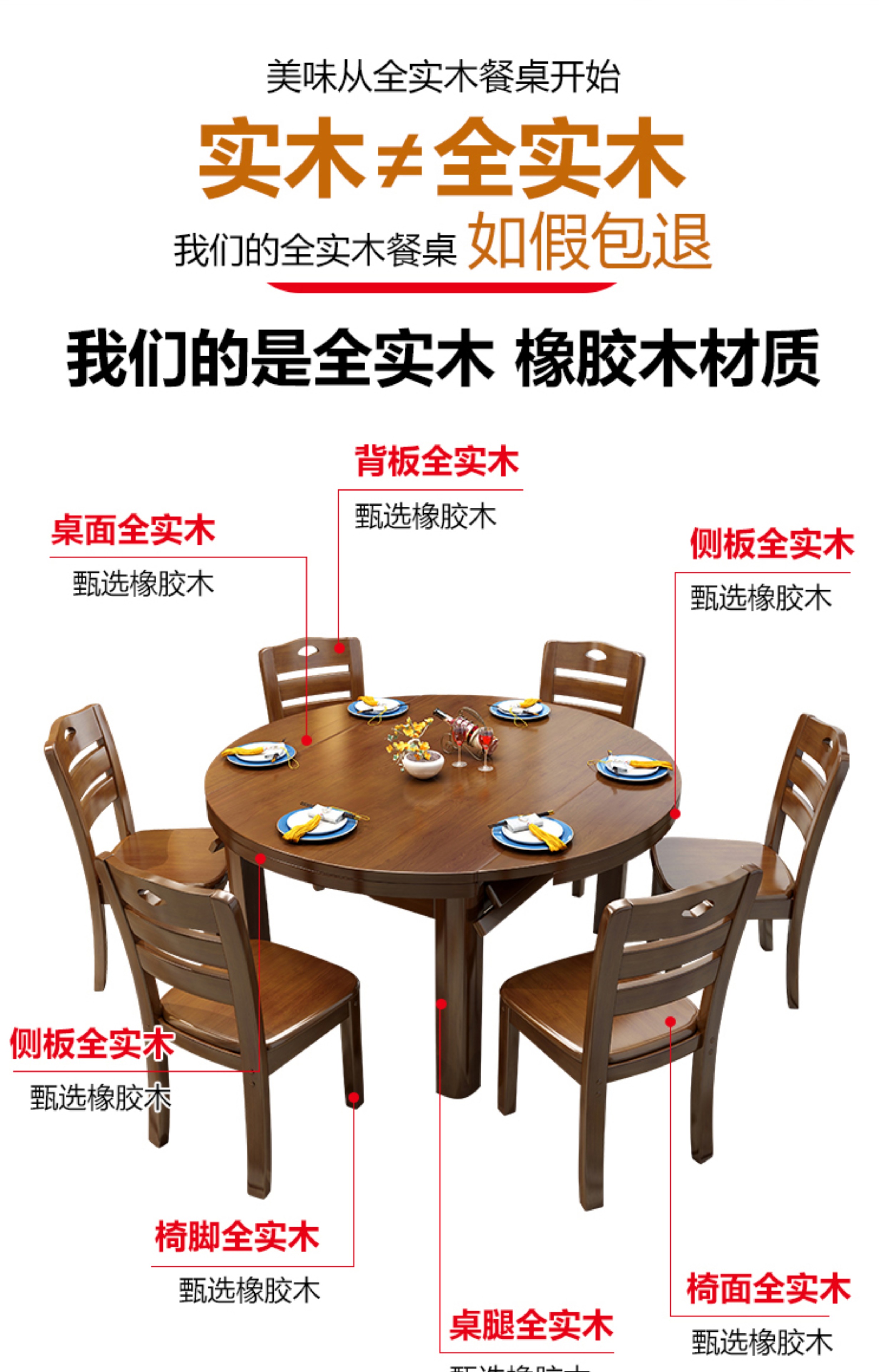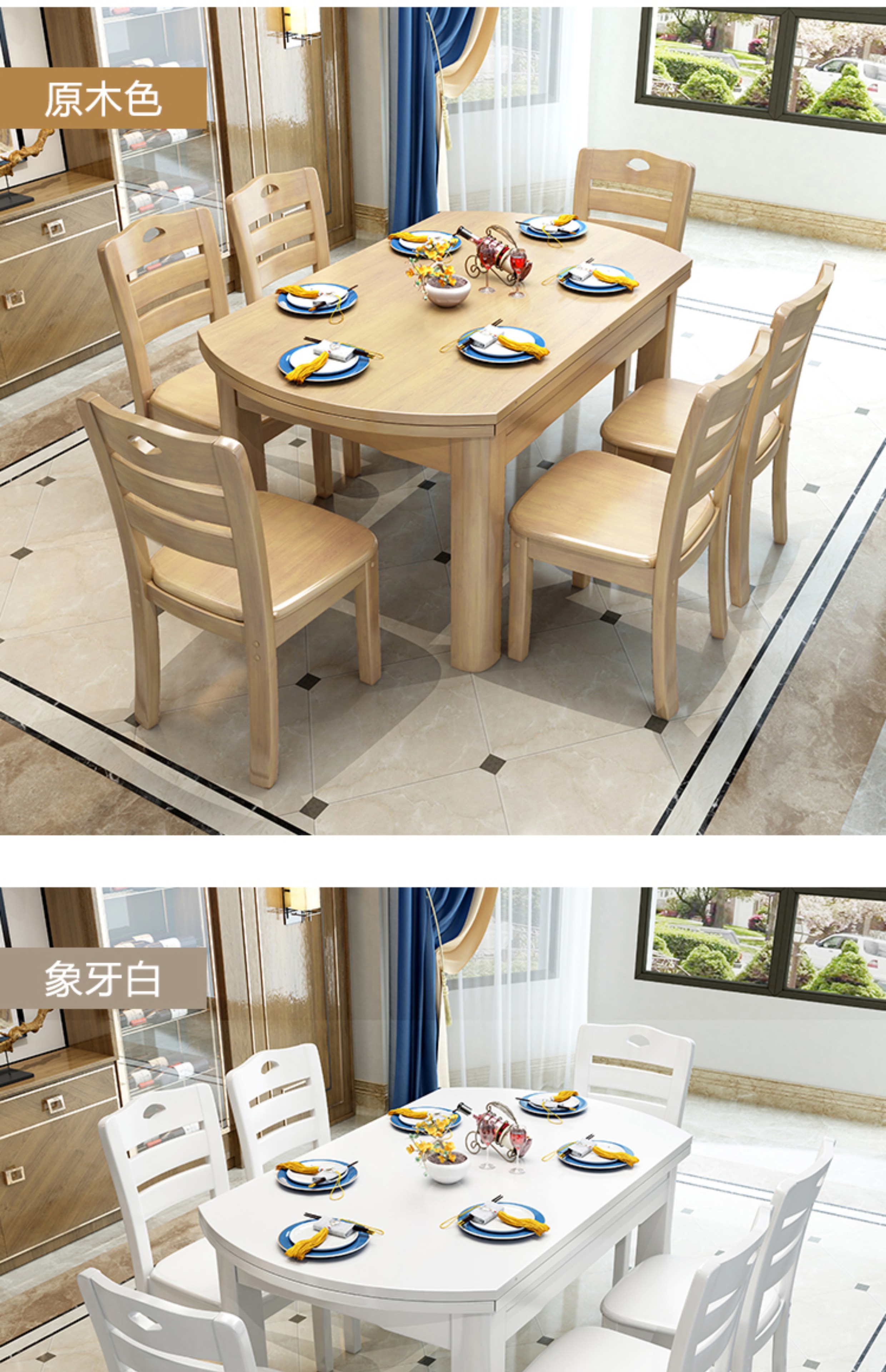 全实木餐桌椅组合伸缩折叠方圆两用客厅家用小户型饭桌可变圆桌子