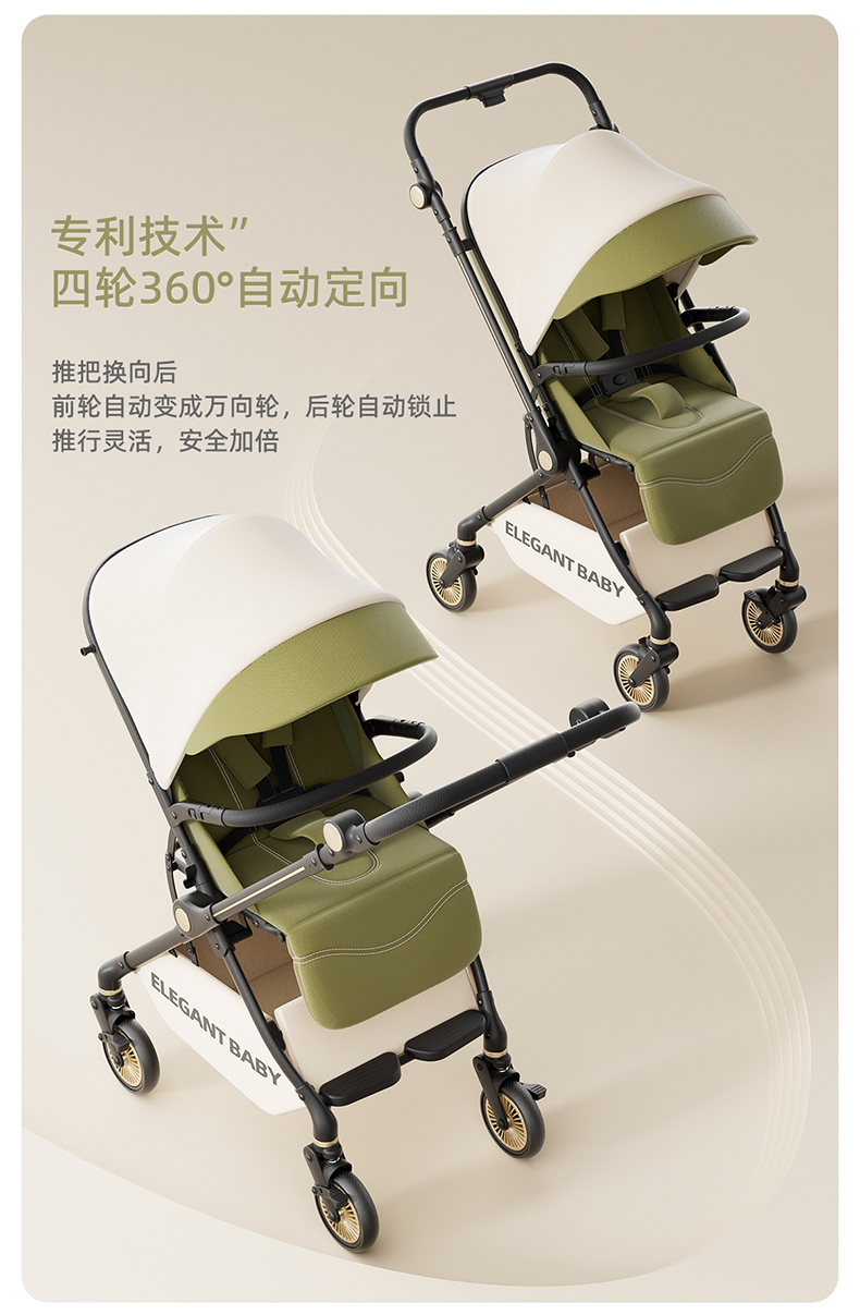 Elegant Baby双向高景观婴儿车减震轻便折叠儿童宝宝可坐躺手推车