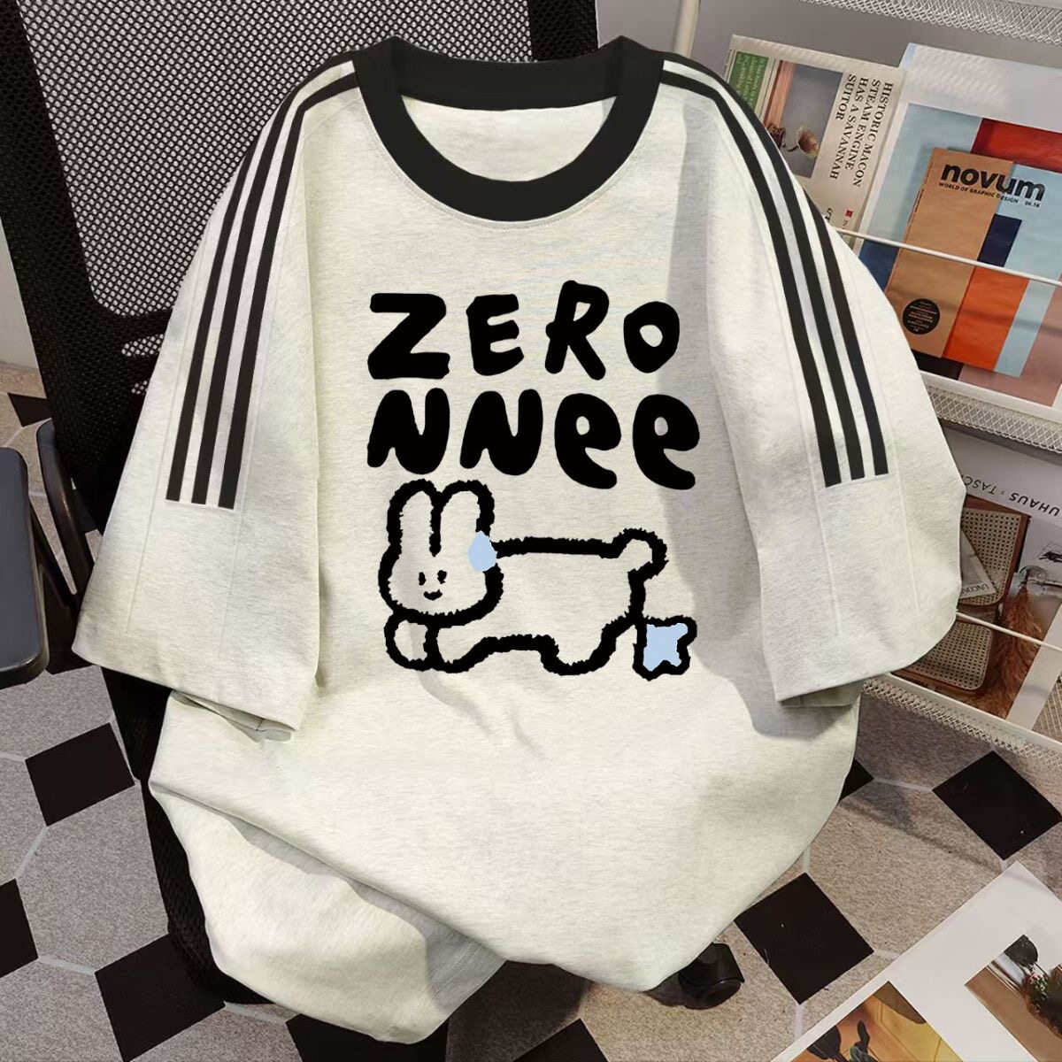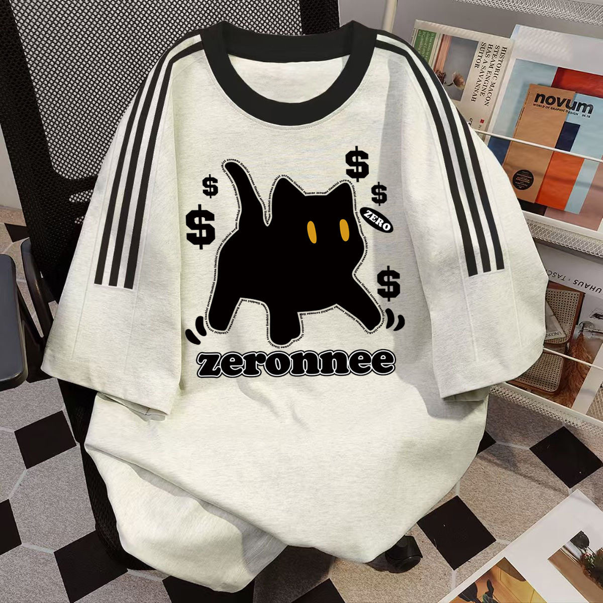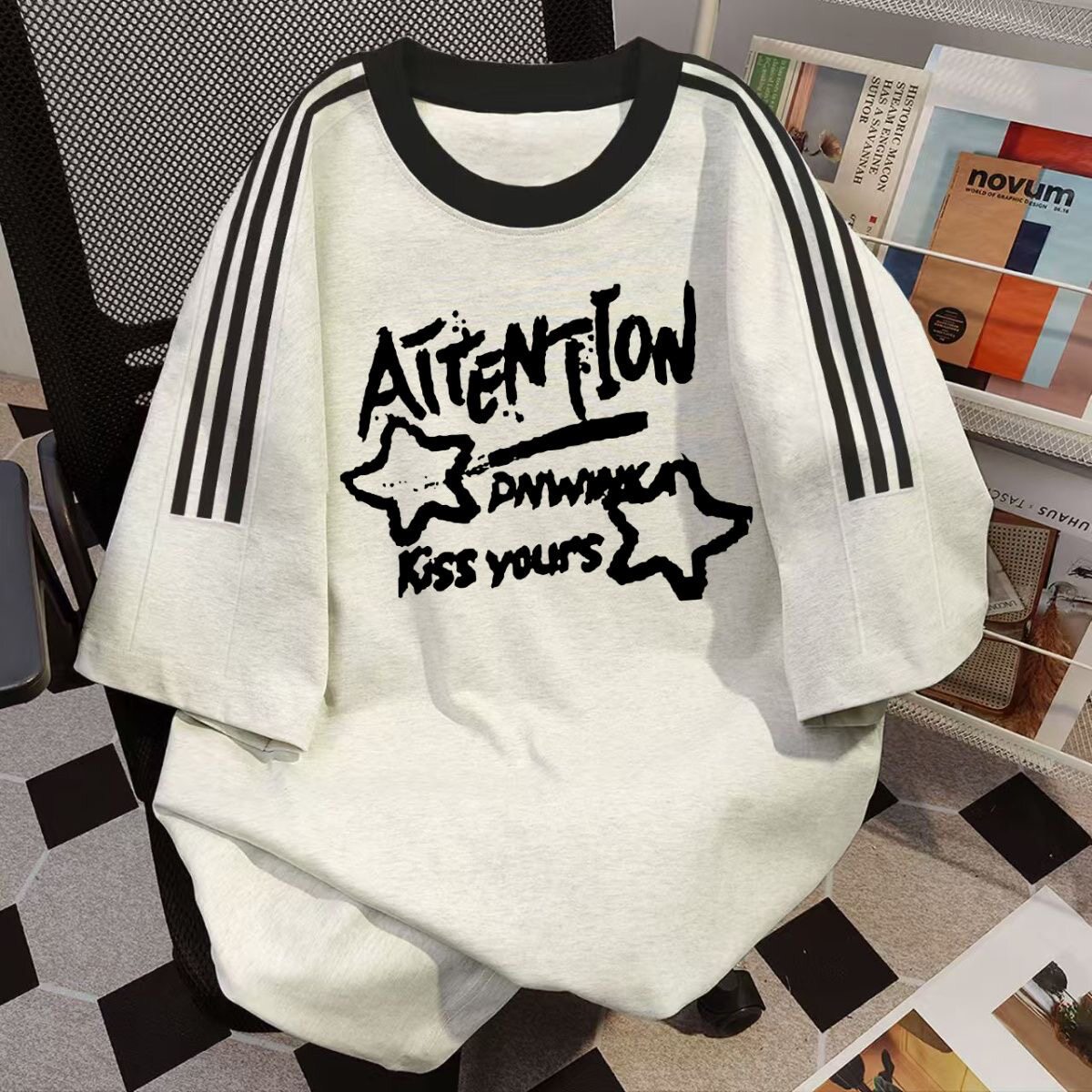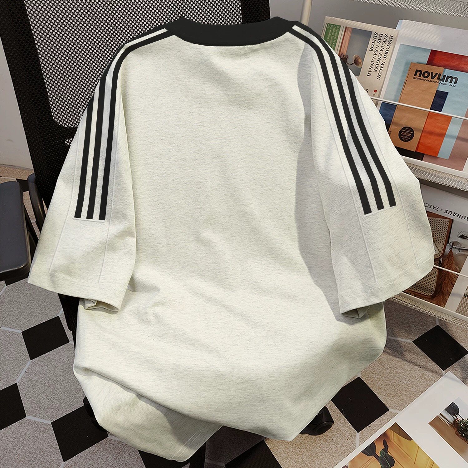 美式复古短袖t恤女夏季设计感小众宽松三条杠上衣国潮男女情侣装