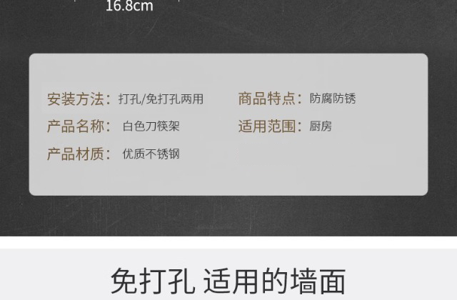 德国厨房刀架置物架免打孔筷子筒壁挂式白色一体菜刀多功能收纳架