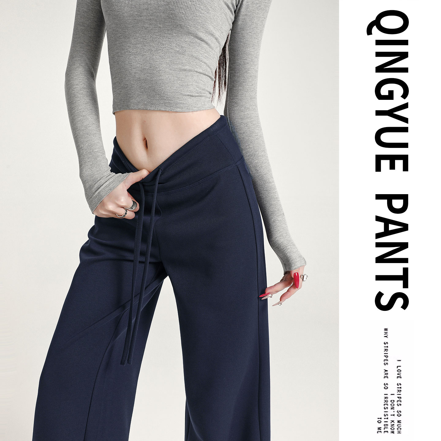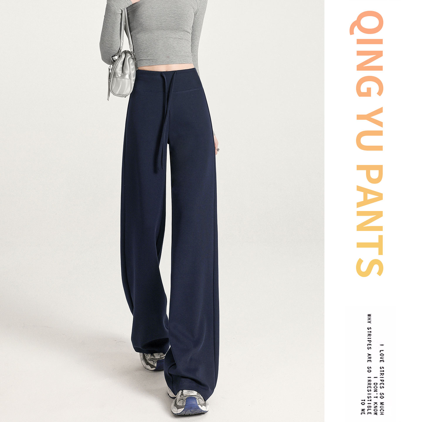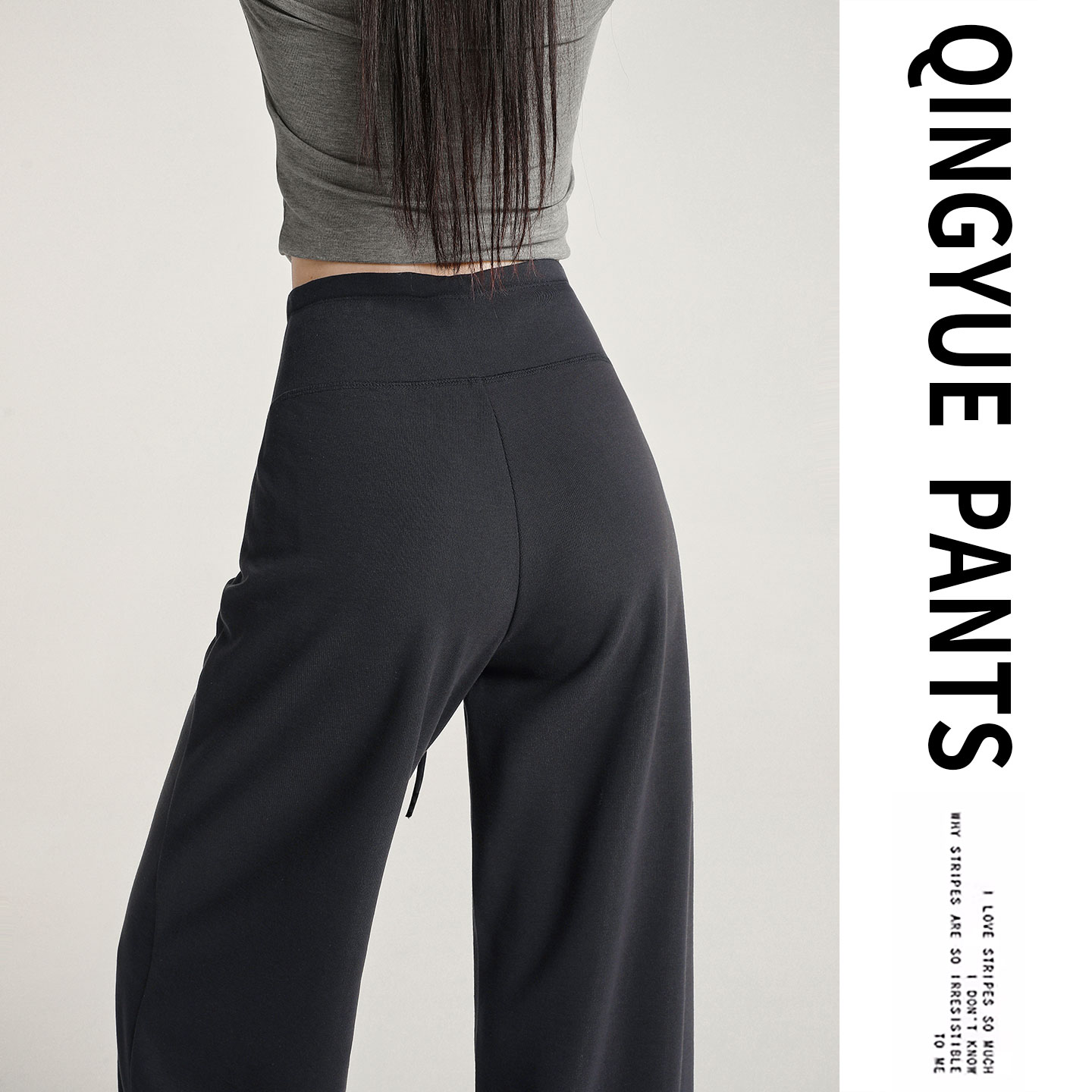 藏青色微喇瑜伽裤女2025夏季休闲运动卫裤直筒秋冬季显瘦阔腿裤子