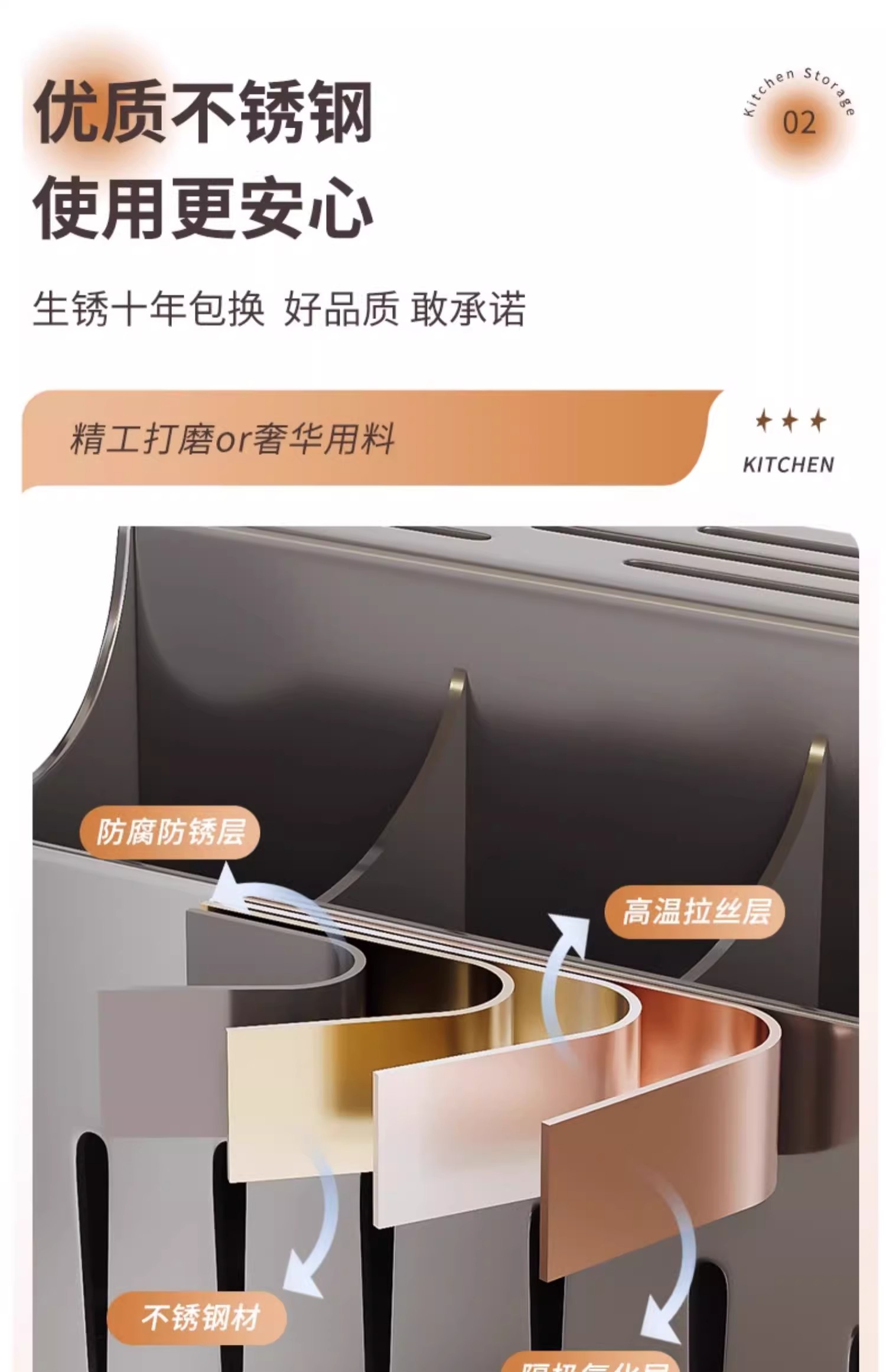 德国新款不锈钢厨房刀架置物架多功能壁挂菜刀具筷子筒一体收纳盒