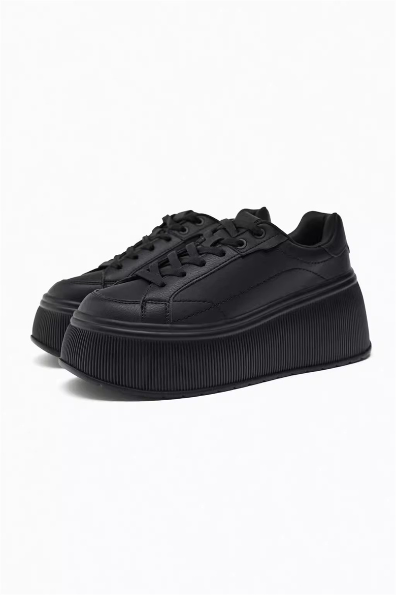 ZA女鞋2025年新款厚底增高休闲运动鞋时尚百搭系带小白鞋旅游鞋女