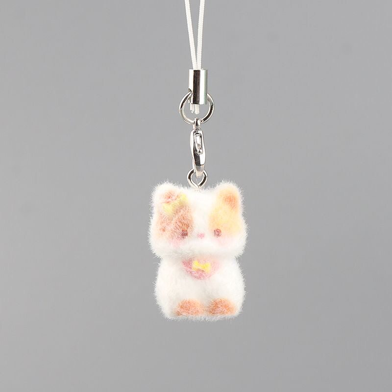 无聊了!摆个超可爱小猫立体植绒钥匙链包包挂件手机挂绳送对象