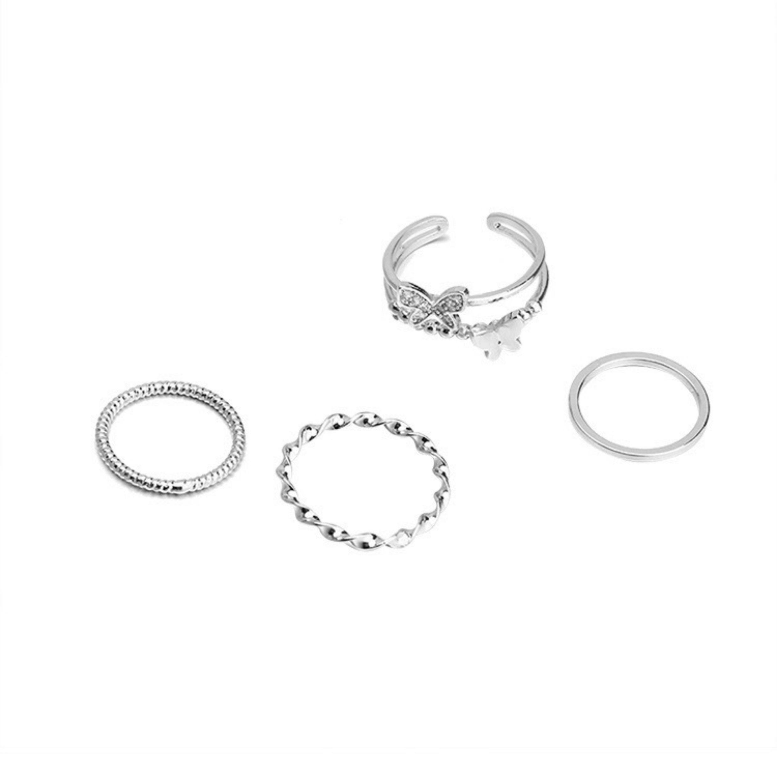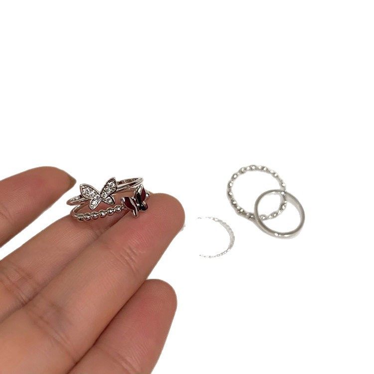 5件套蝴蝶戒指套装组合女简约冷淡风开口可调节食指时尚个性指环