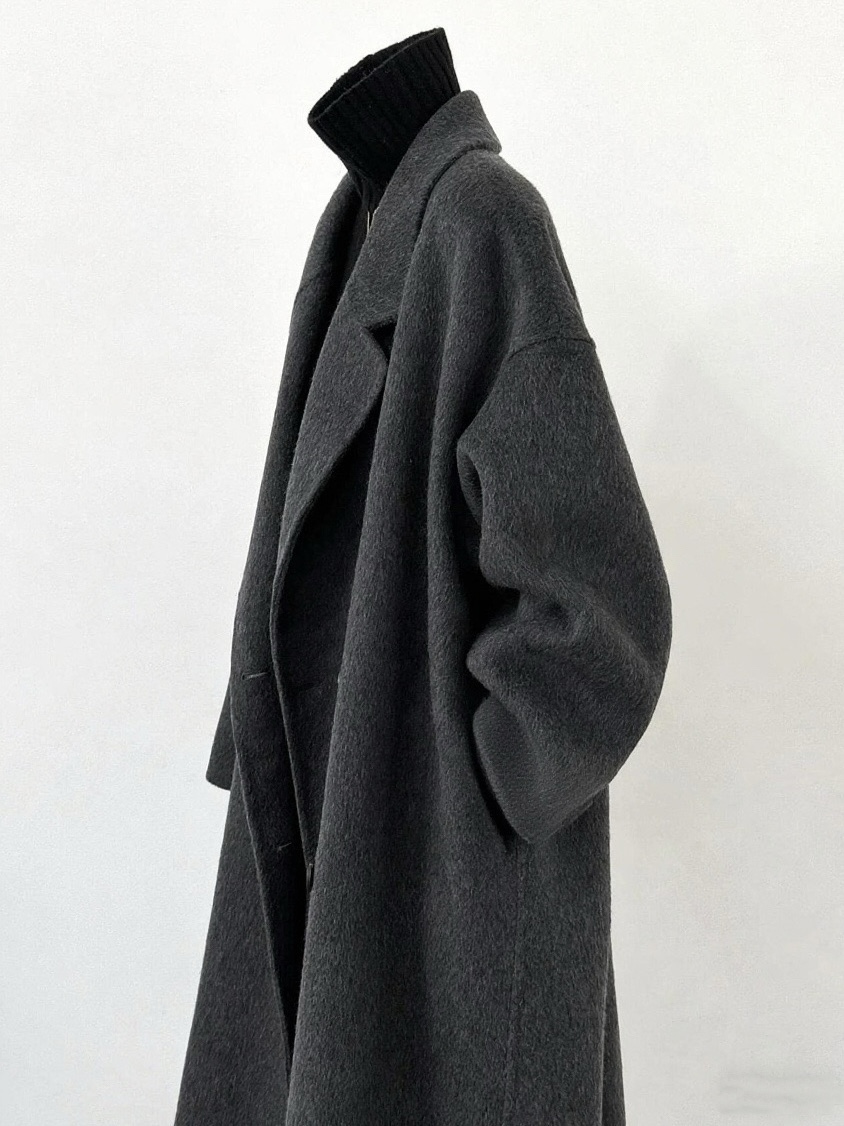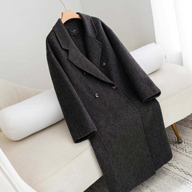 黑灰色双面羊绒大衣女2025秋冬新款中长款韩系宽松高端羊毛呢外套