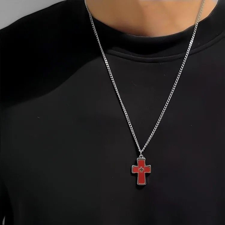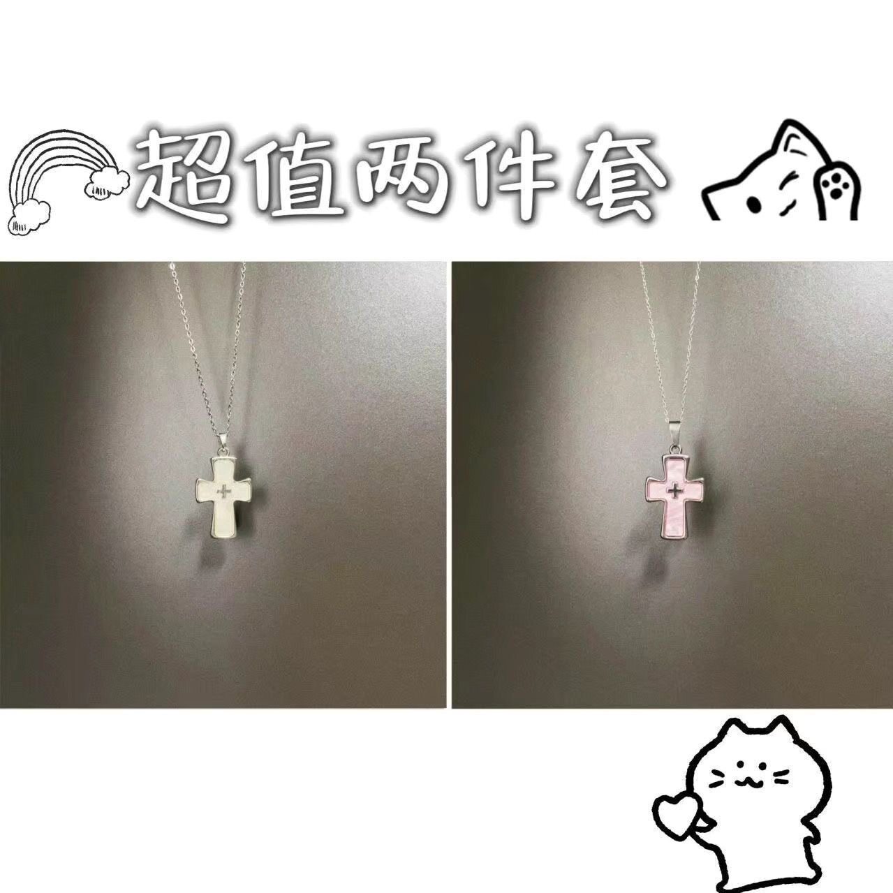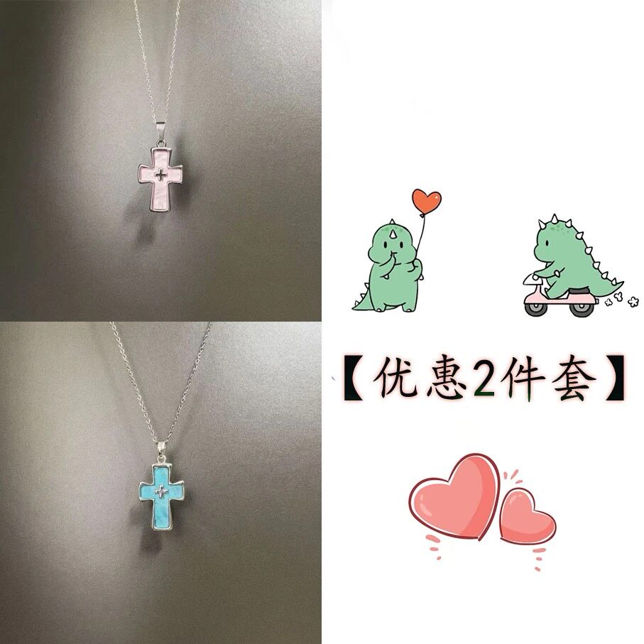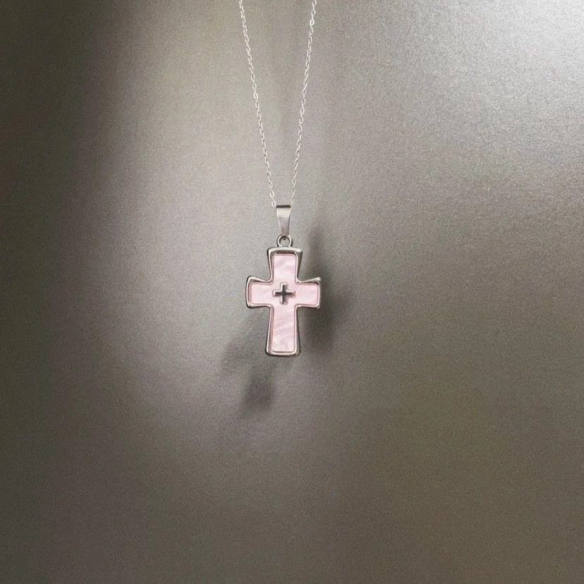 Vintage 古著 Maiden's Prayer项链粉色甜酷十字架吊坠项链锁骨链
