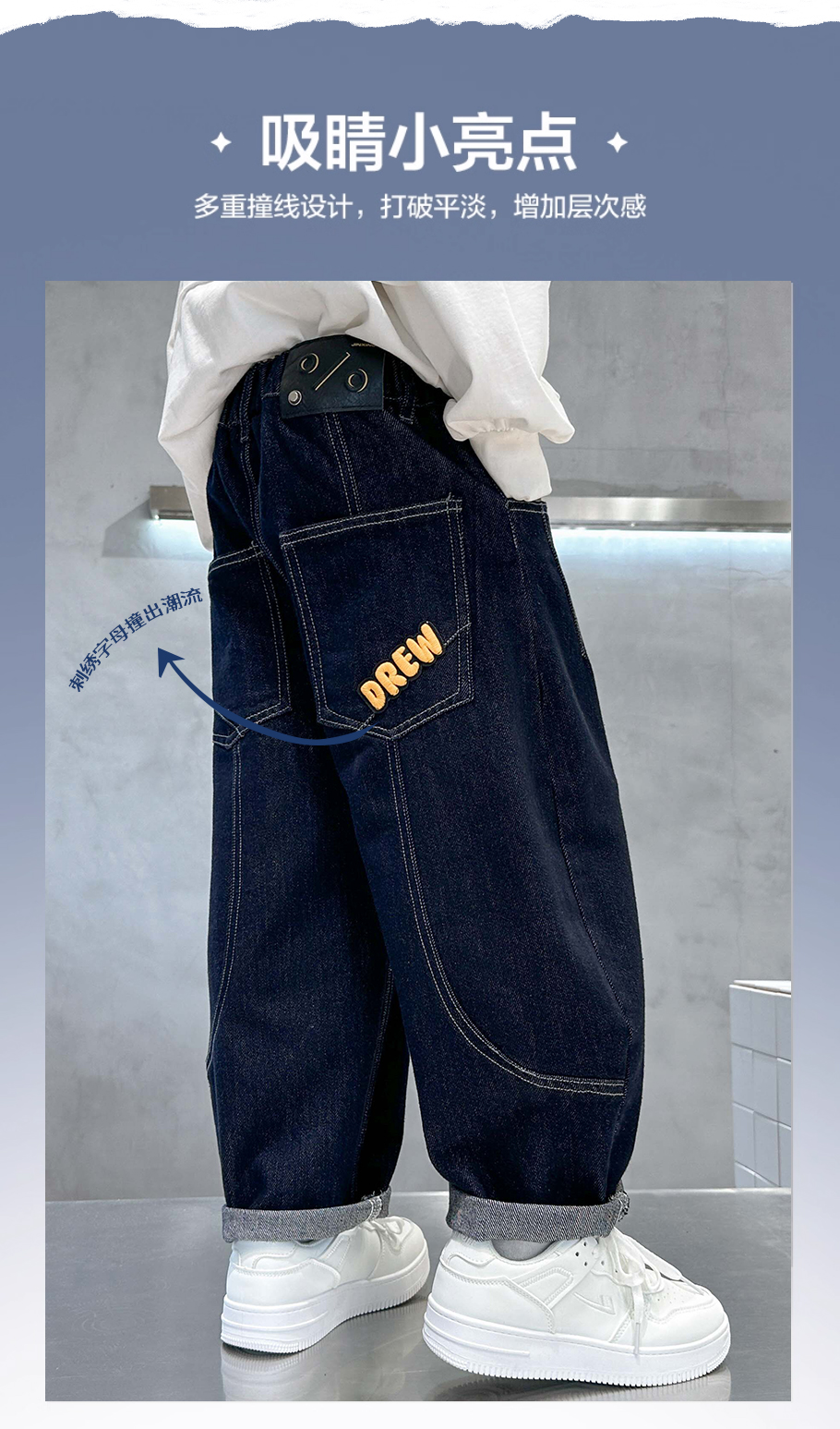 童装男童裤子秋季2025新款儿童秋装牛仔裤中大童男孩冬加绒弯刀裤