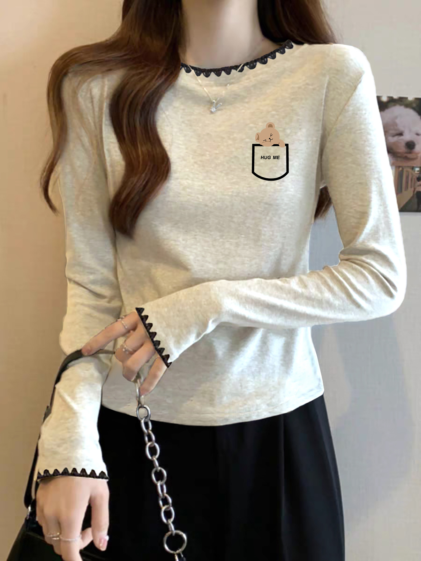 2025早秋新款上衣轻熟小众不撞款小衫纯棉长袖t恤女新款打底衫女