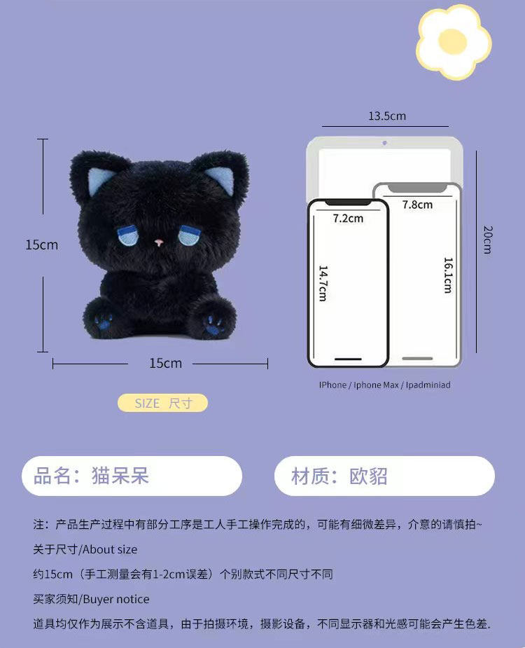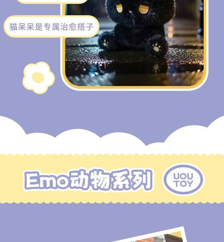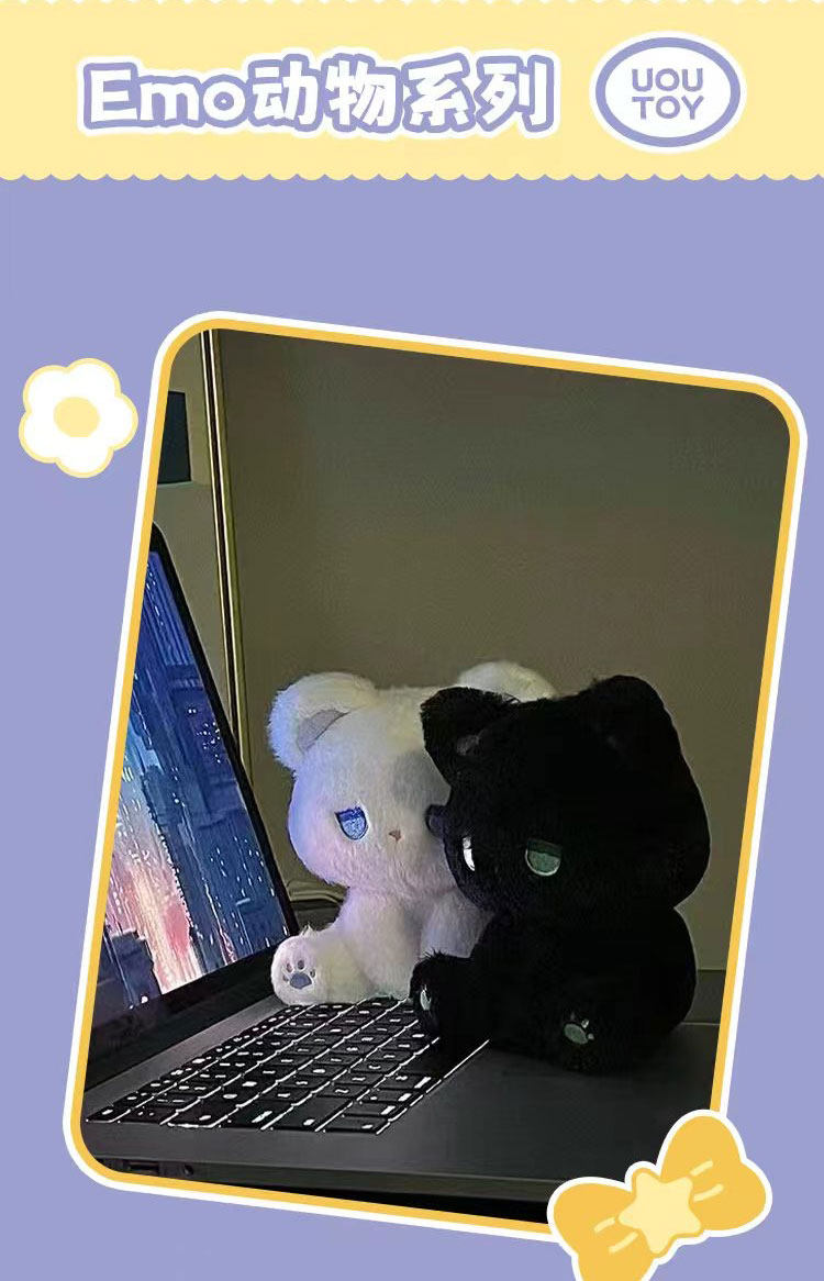 优偶出品正版emo熊呆呆坐姿毛绒玩具小猫咪公仔玩偶女生生日礼物