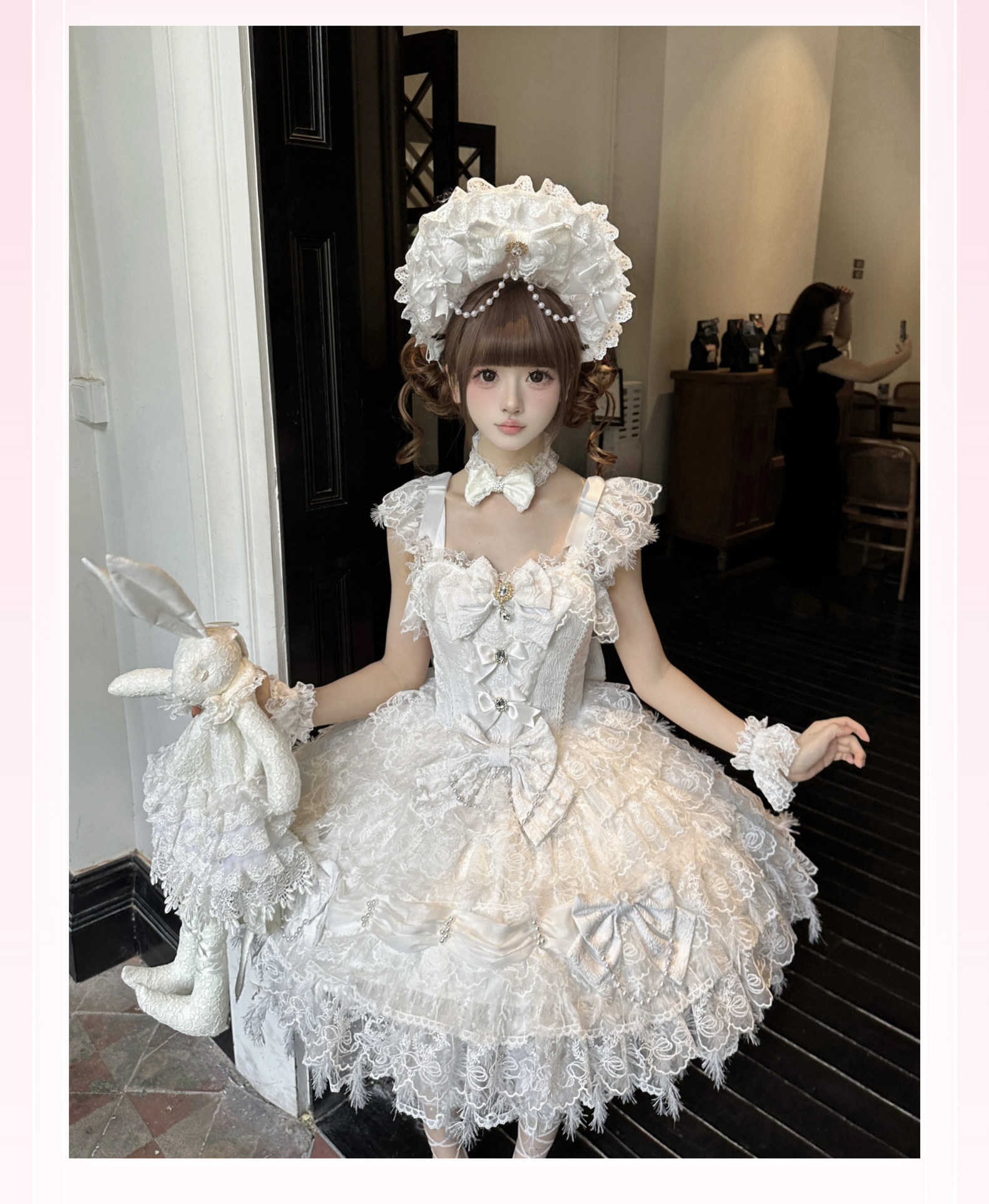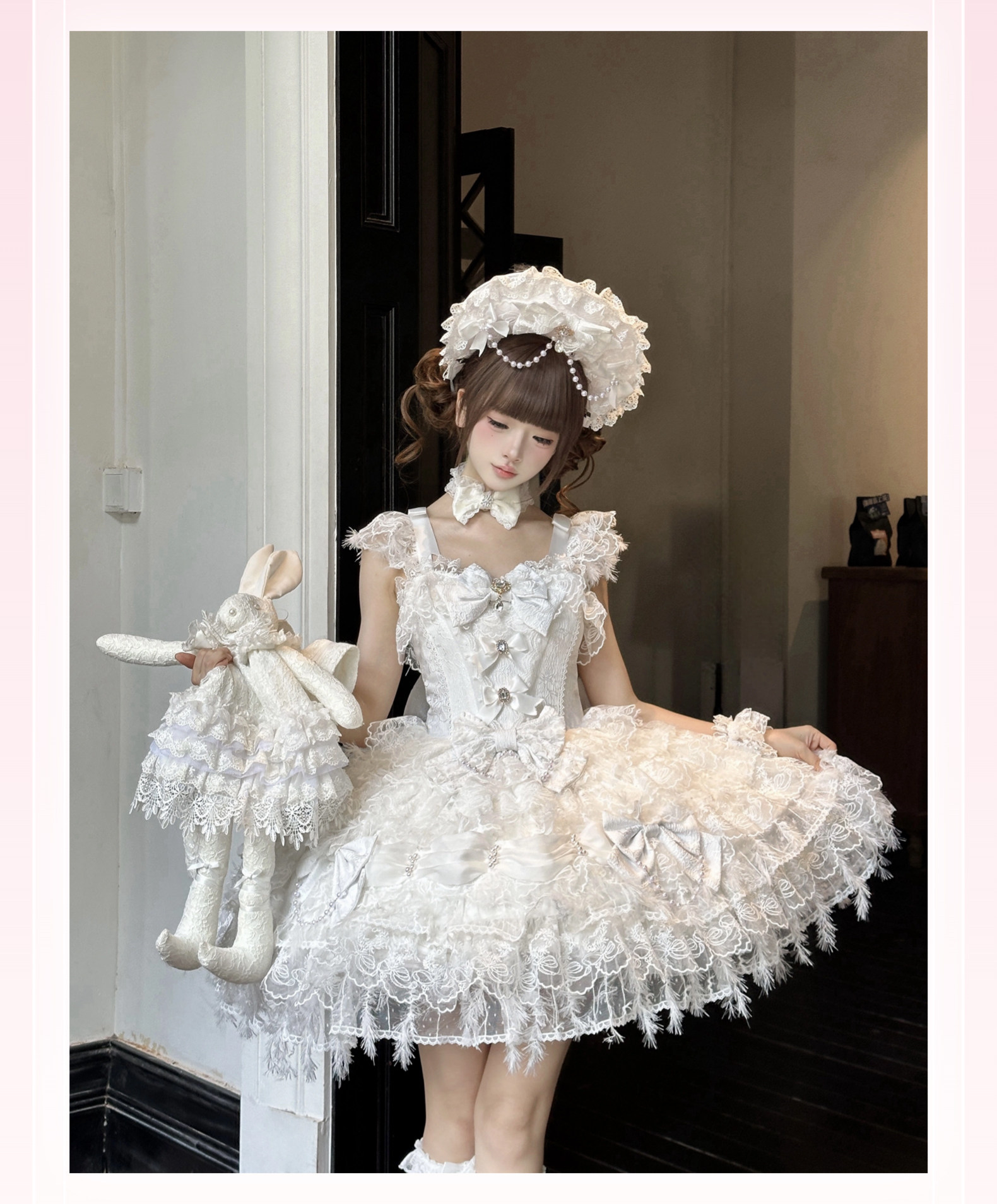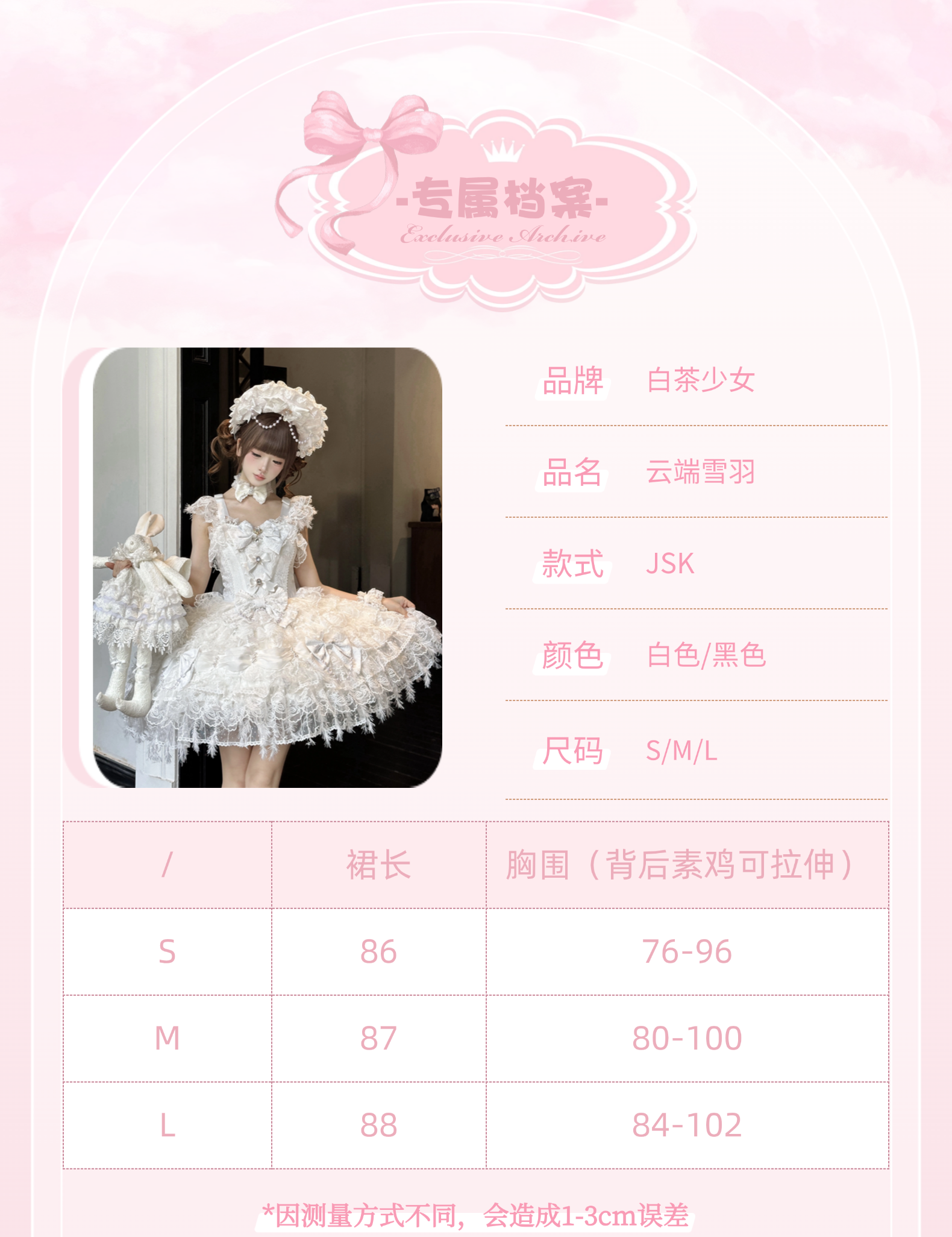 【云端雪羽】白茶少女~原创设计Lolita洋装甜美花嫁jsk吊带连衣裙
