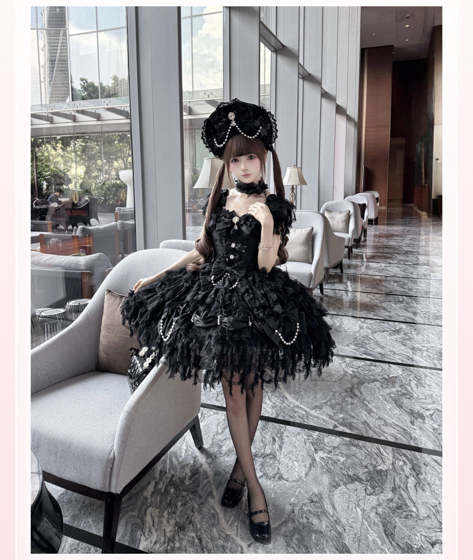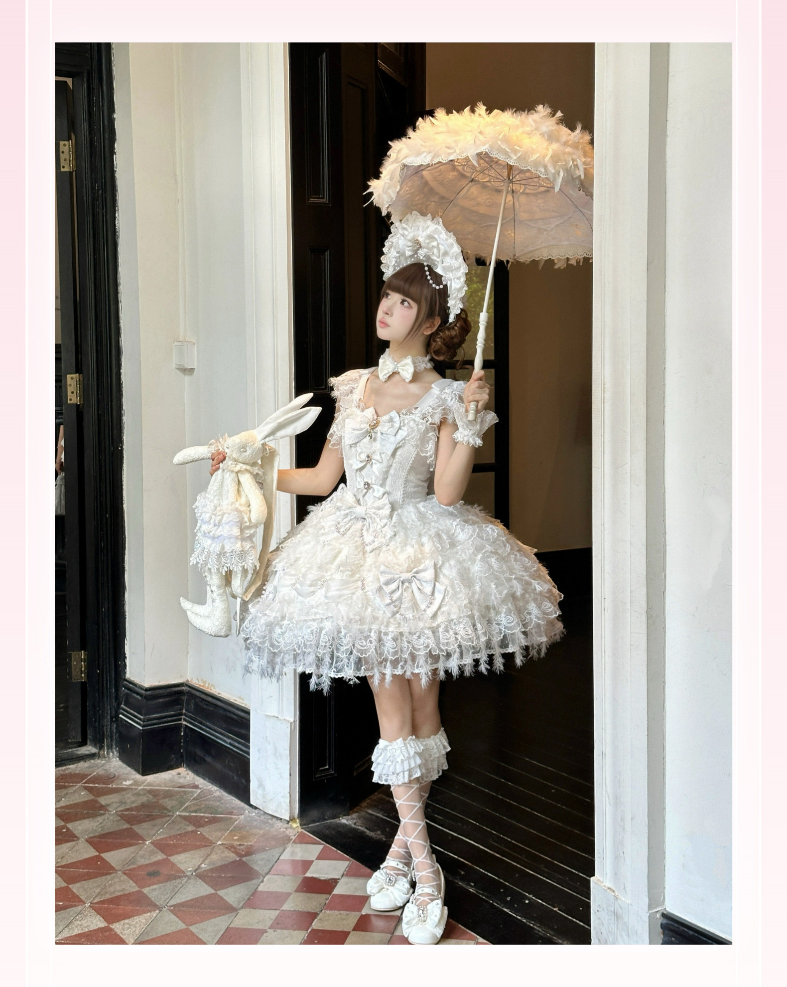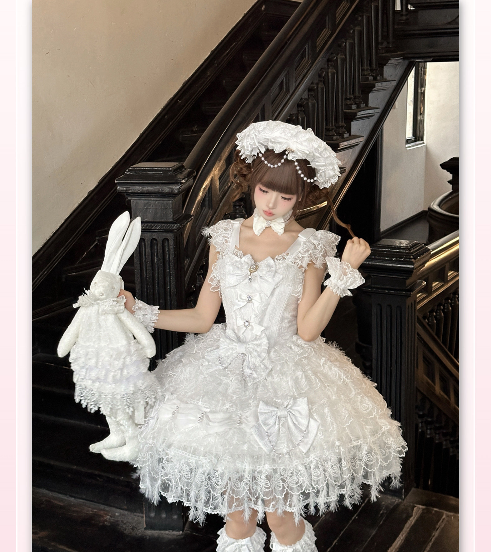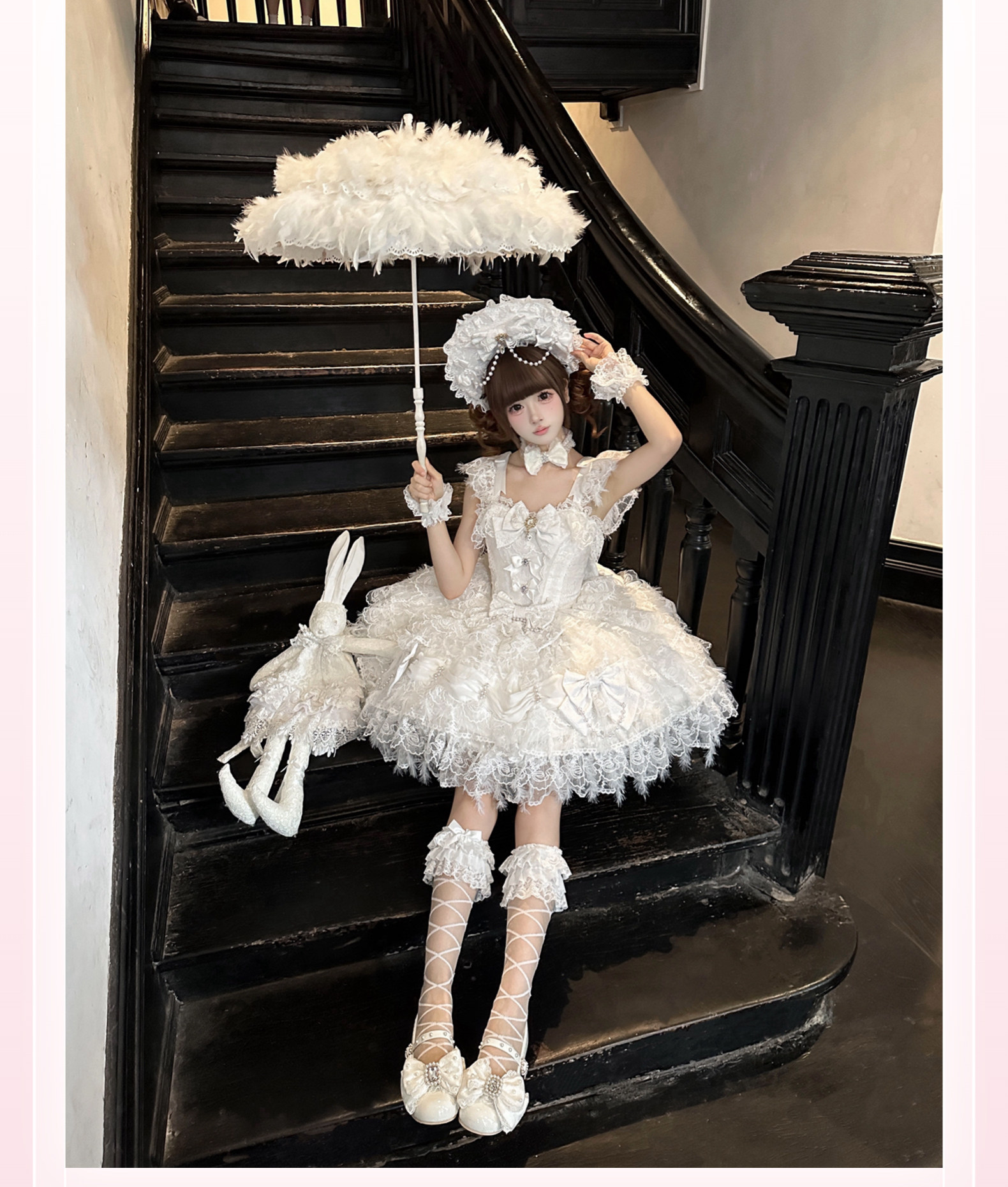 【云端雪羽】白茶少女~原创设计Lolita洋装甜美花嫁jsk吊带连衣裙
