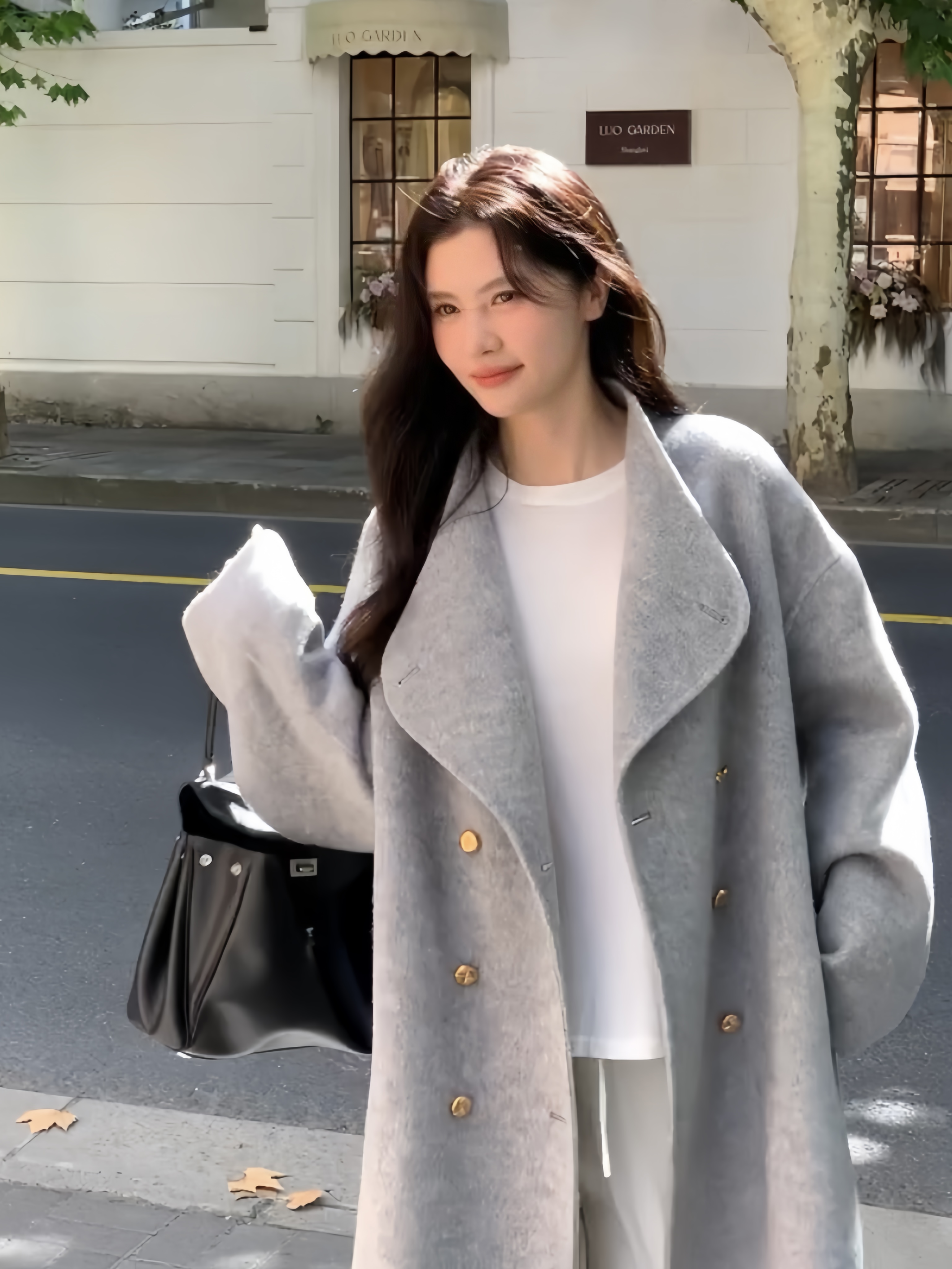 灰色双面羊绒大衣女中长款2025秋冬新款立领宽松高级感羊毛呢外套