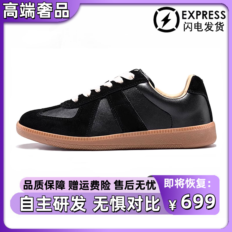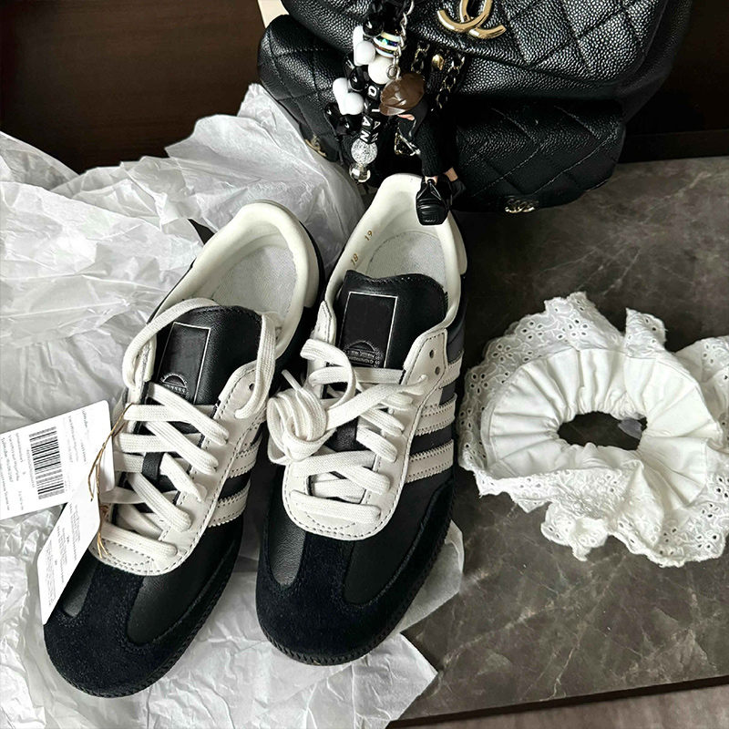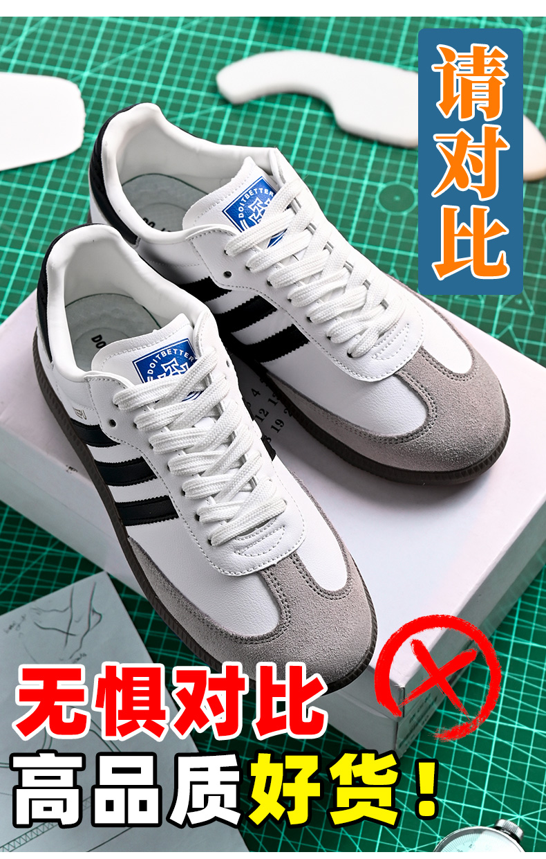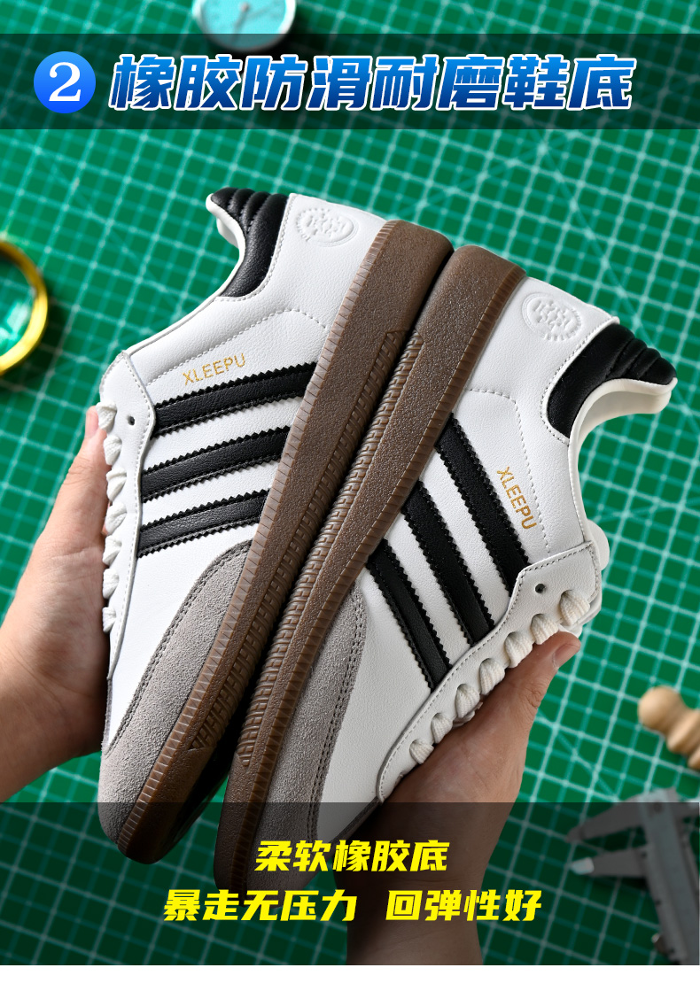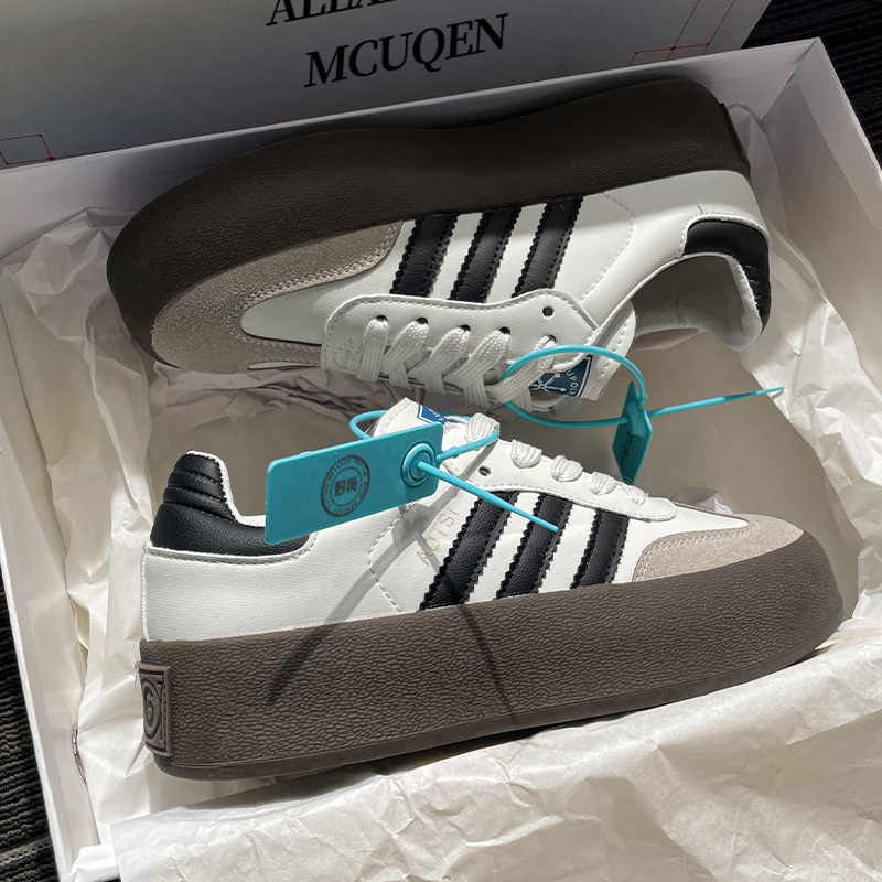 经典三杠黑白德训鞋男女款2025新款秋季厚底复古运动百搭休闲板鞋