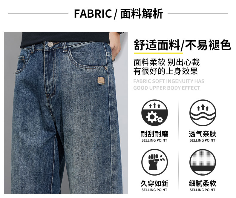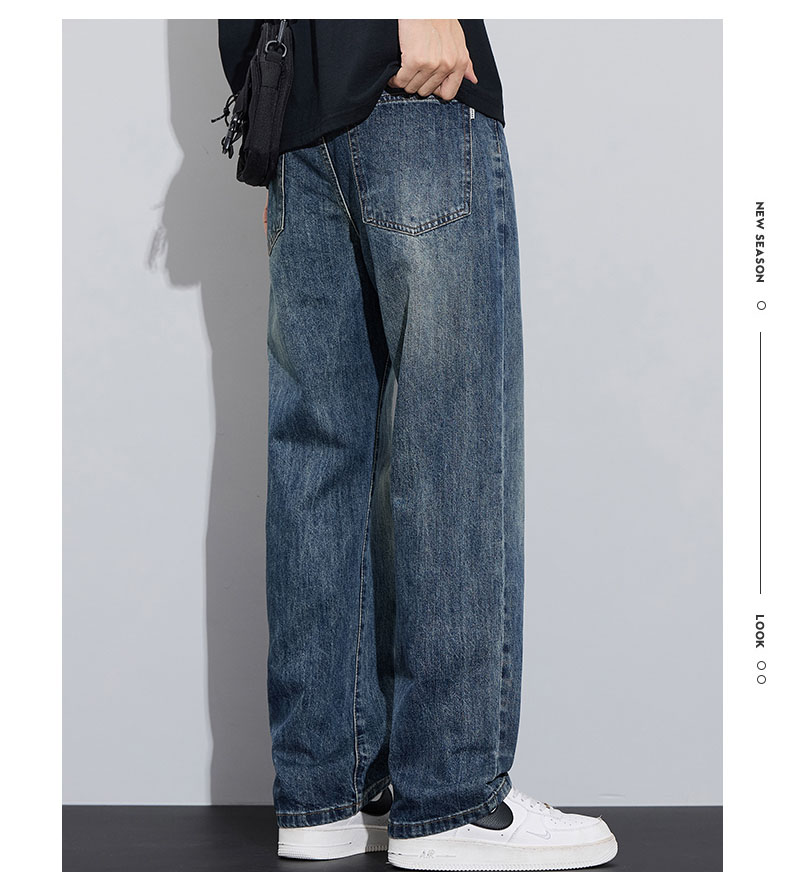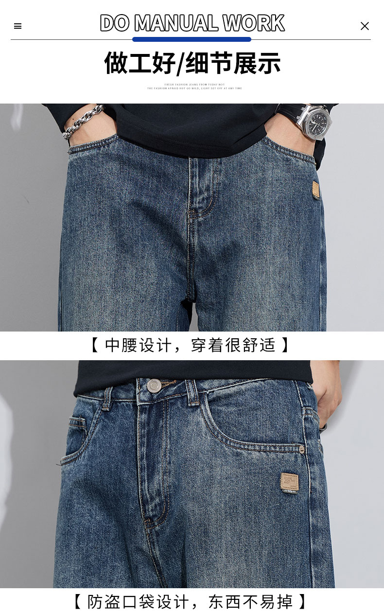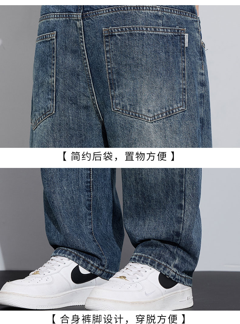 罗蒙加绒牛仔裤男秋冬季2025新款男生休闲长裤宽松直筒阔腿裤子男