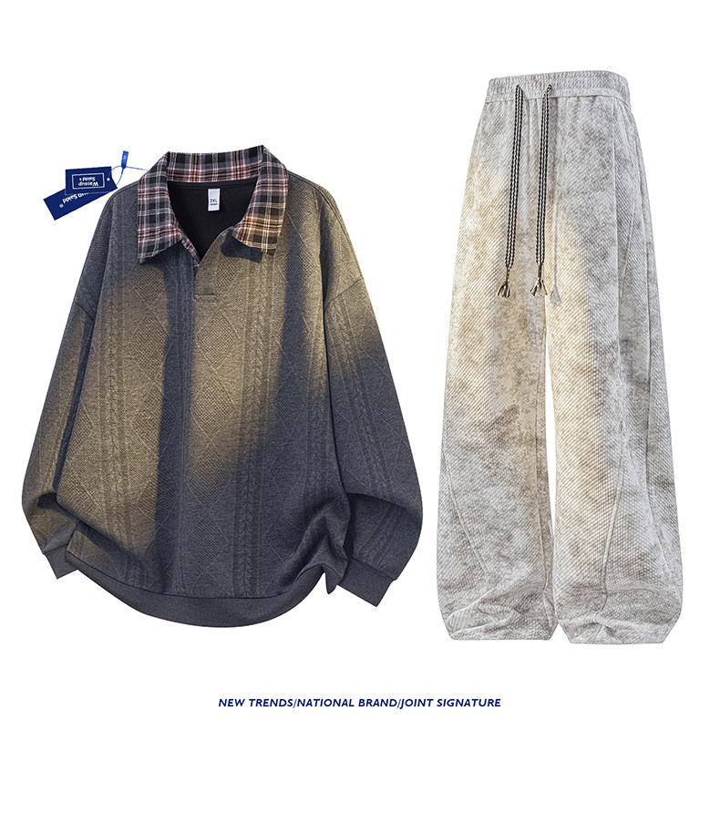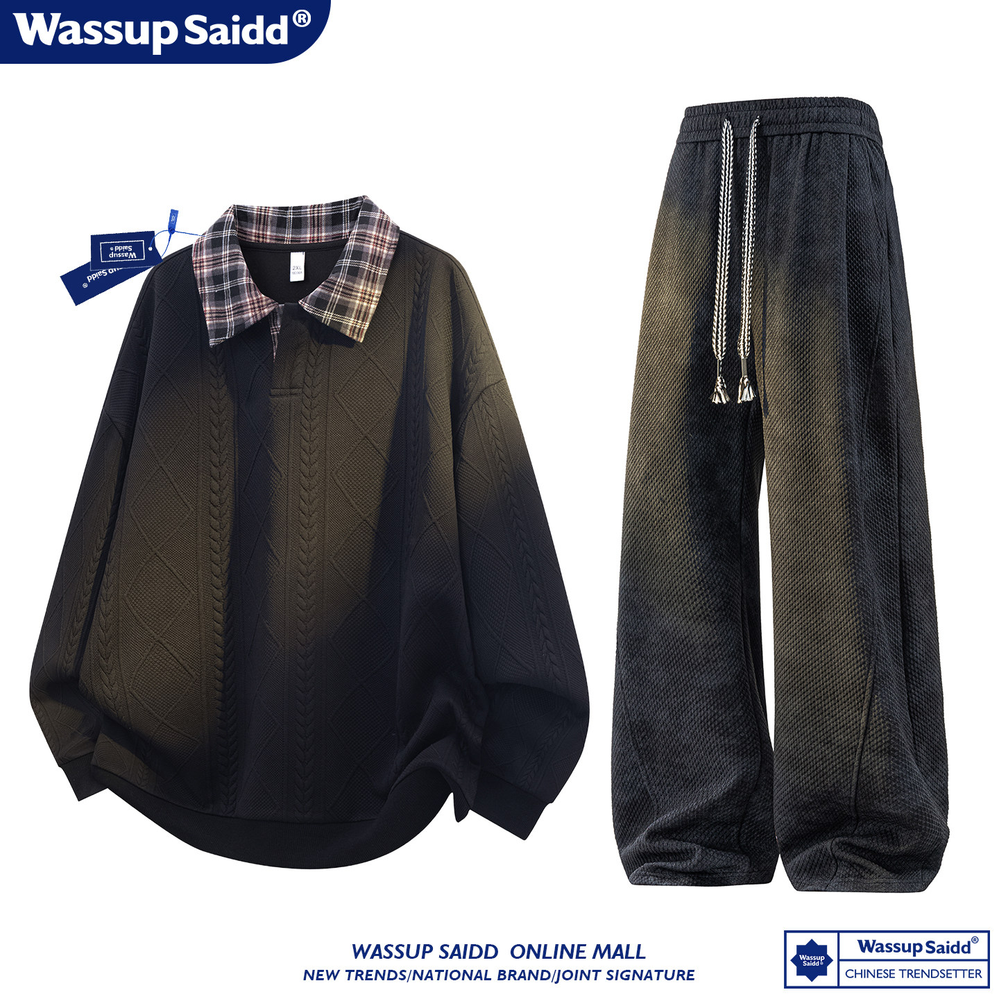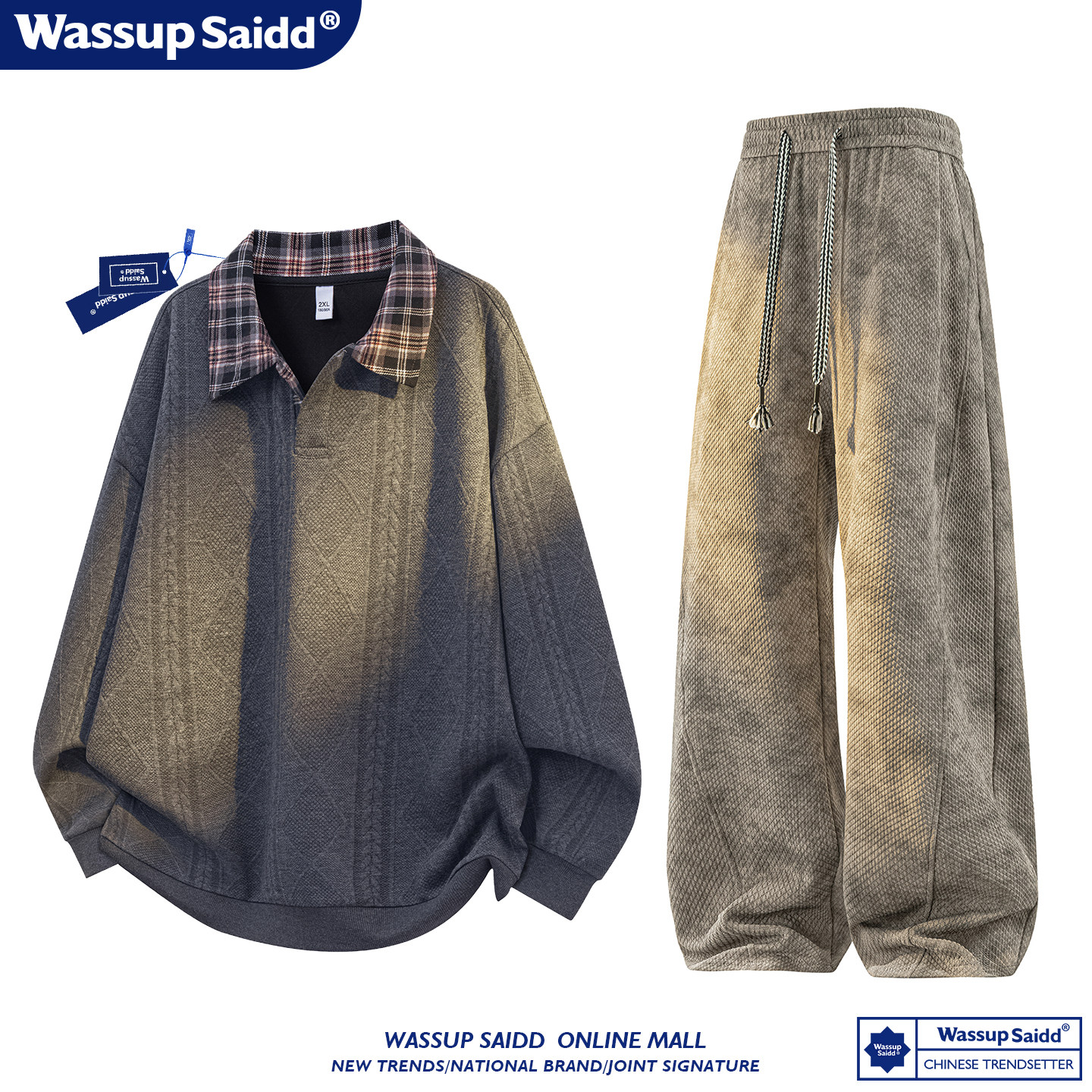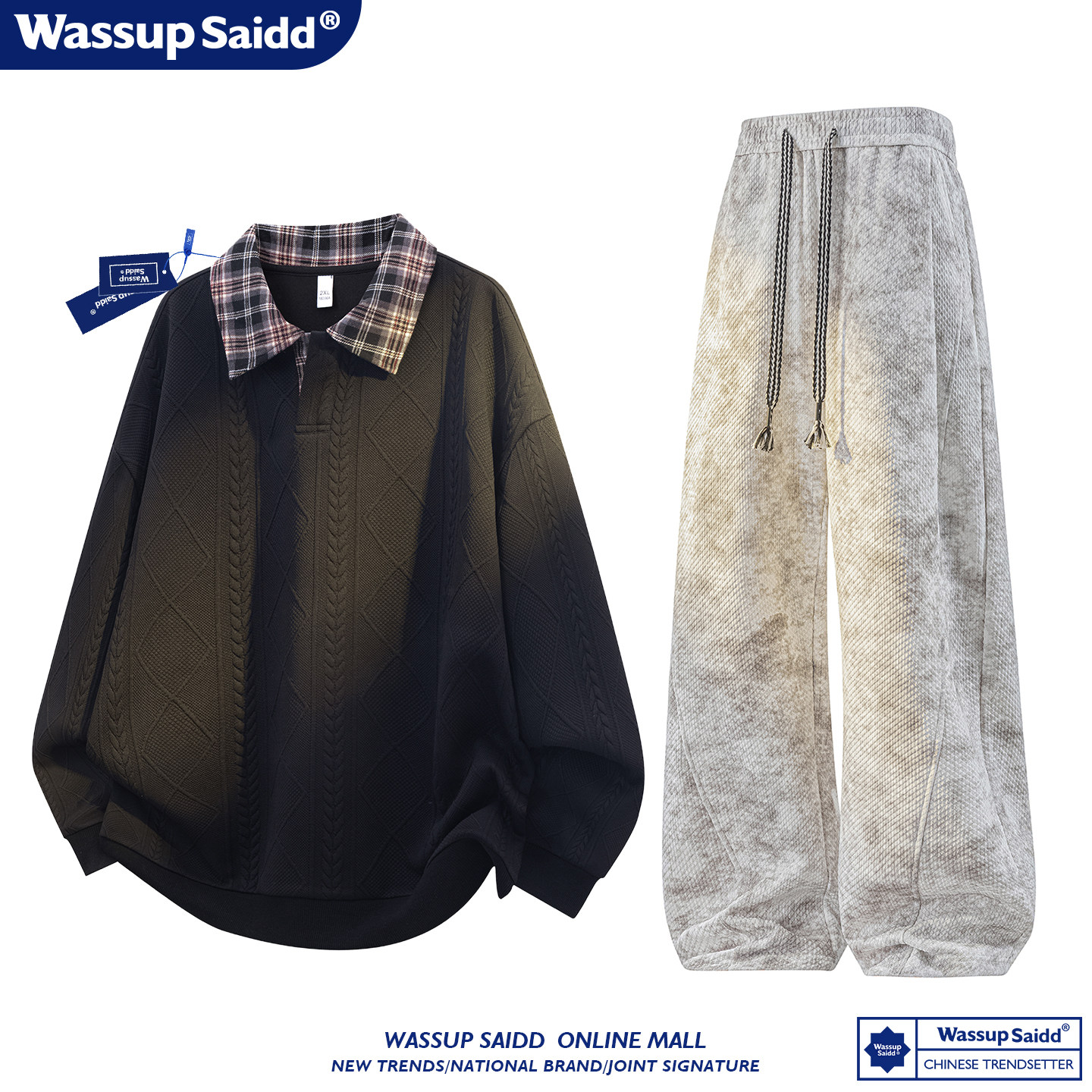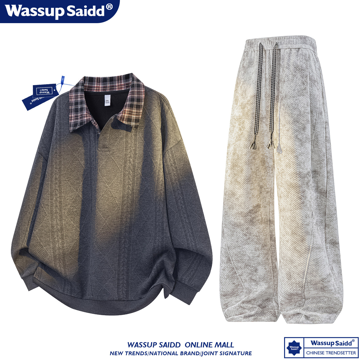 WASSUP SAIDD新款春秋扎染潮牌套装假两件卫衣长裤男女款休闲美式