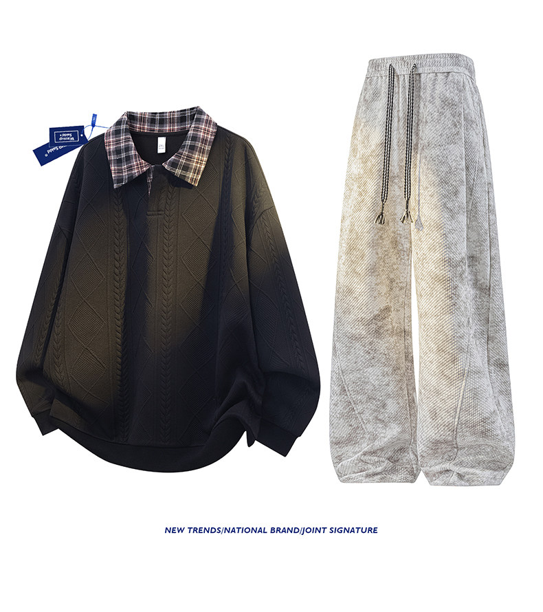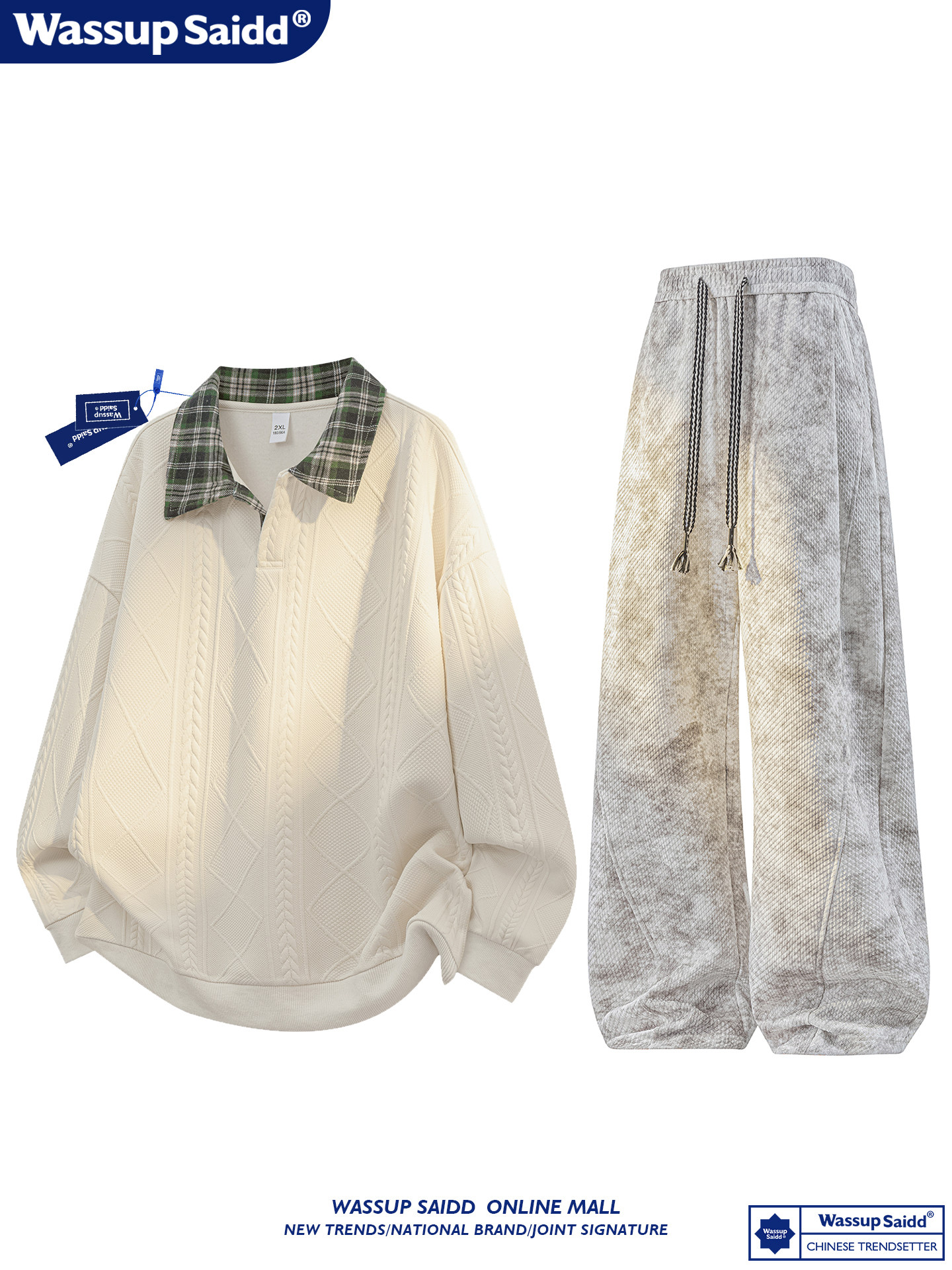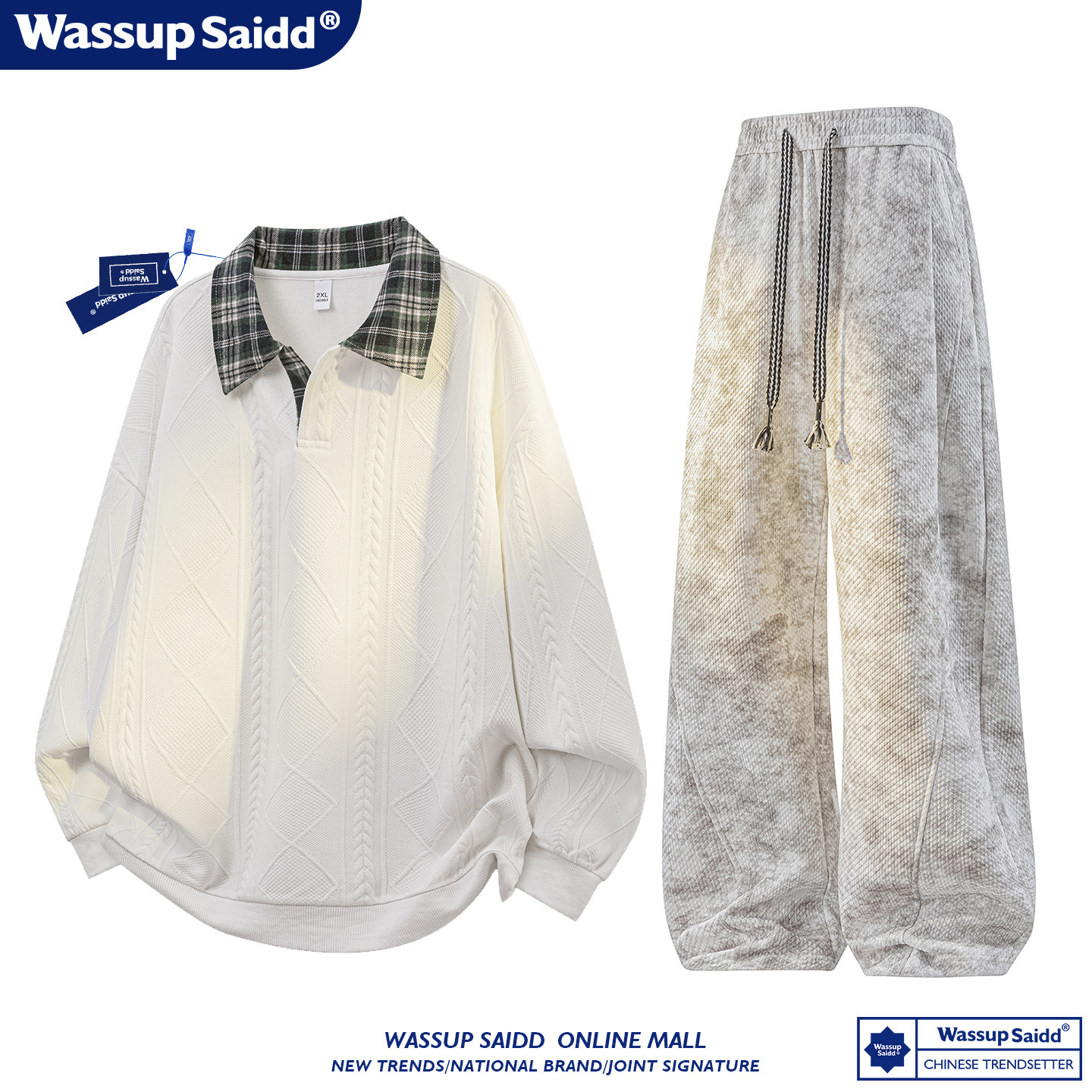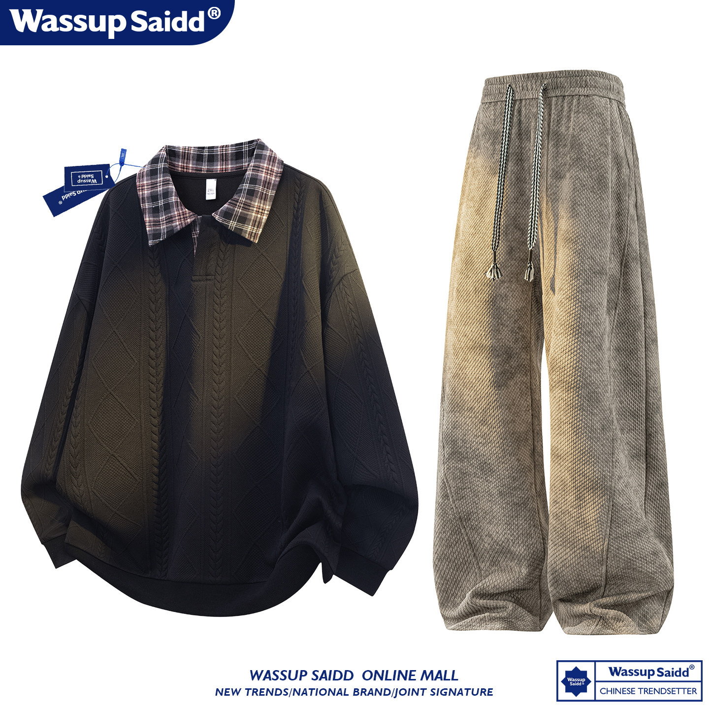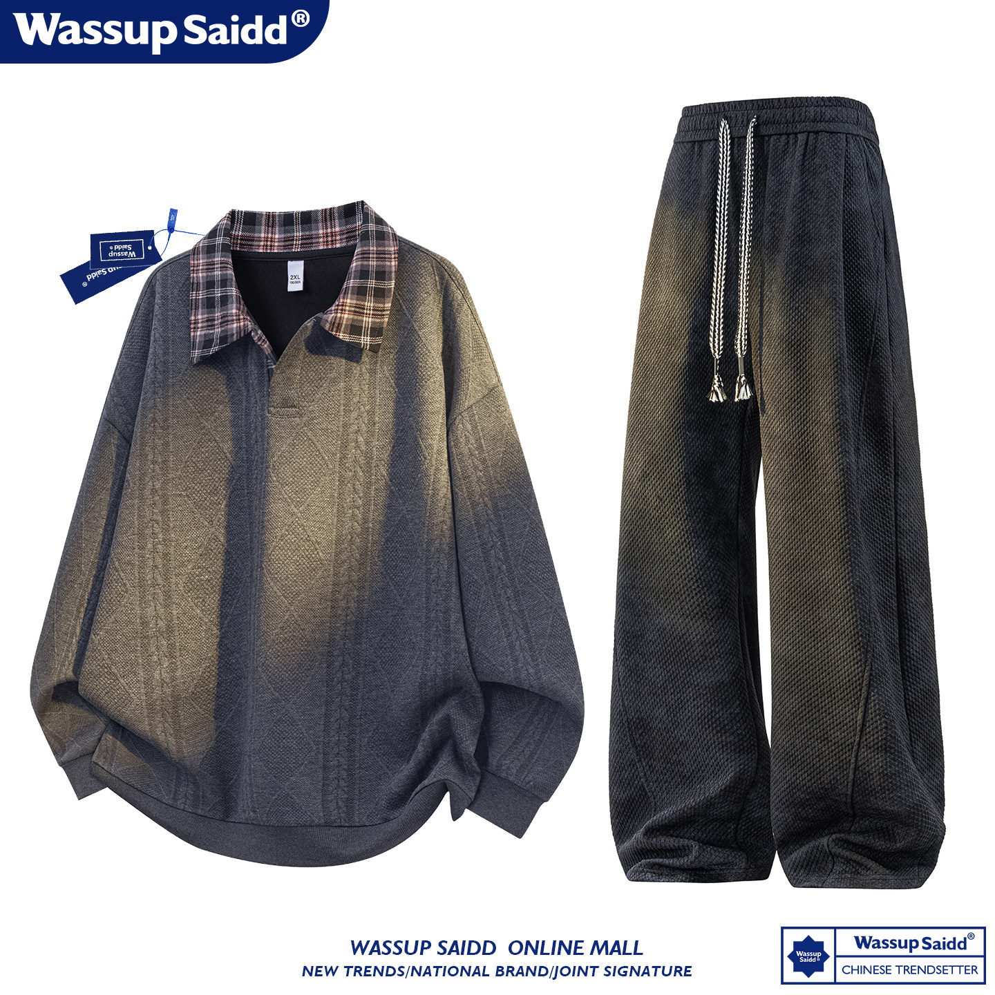 WASSUP SAIDD新款春秋扎染潮牌套装假两件卫衣长裤男女款休闲美式