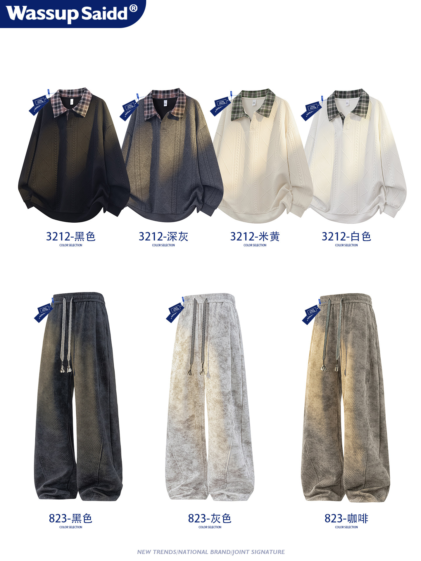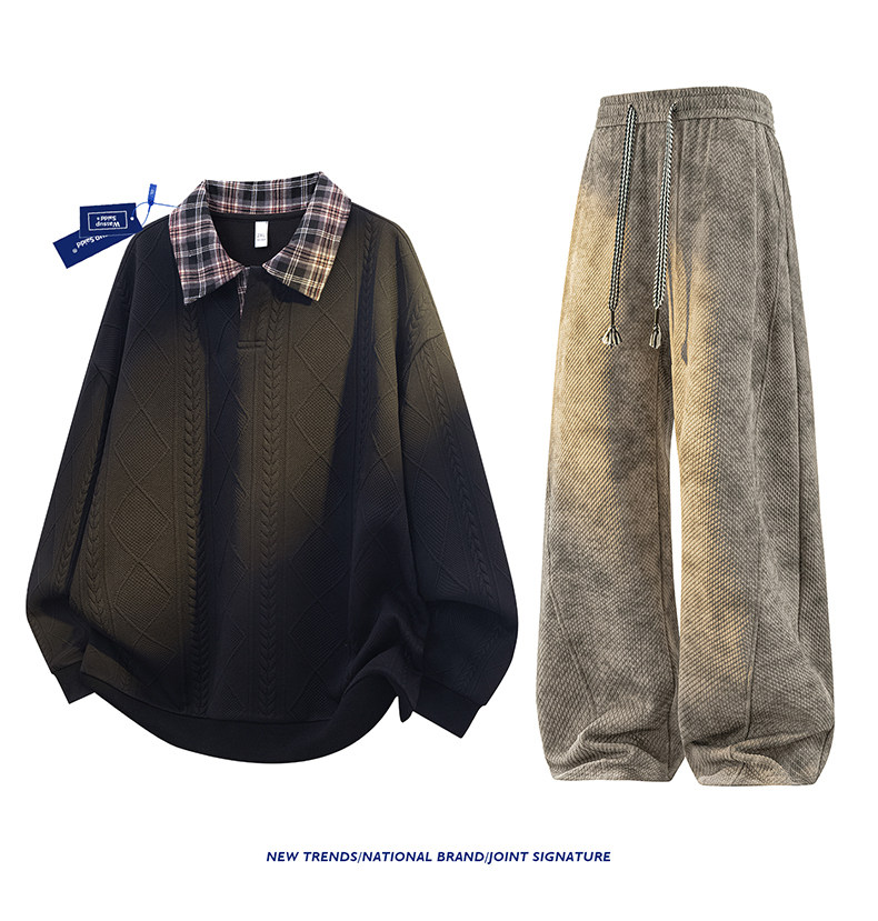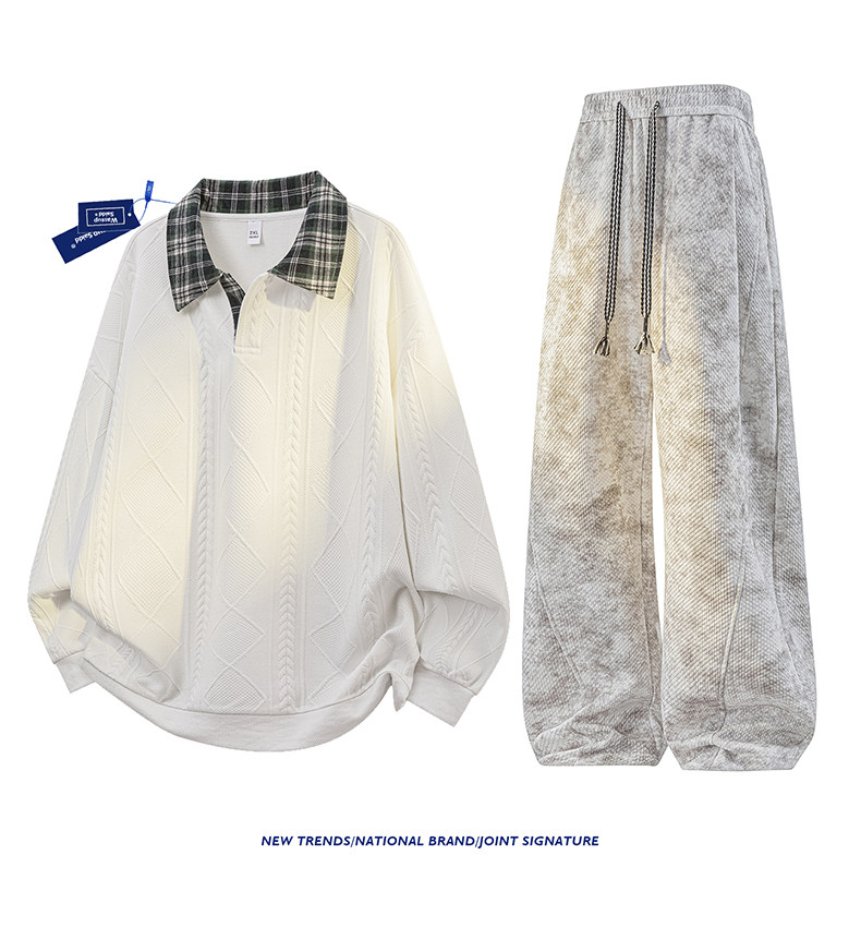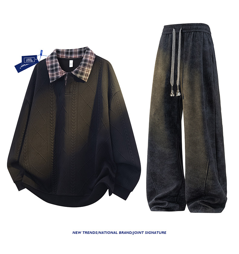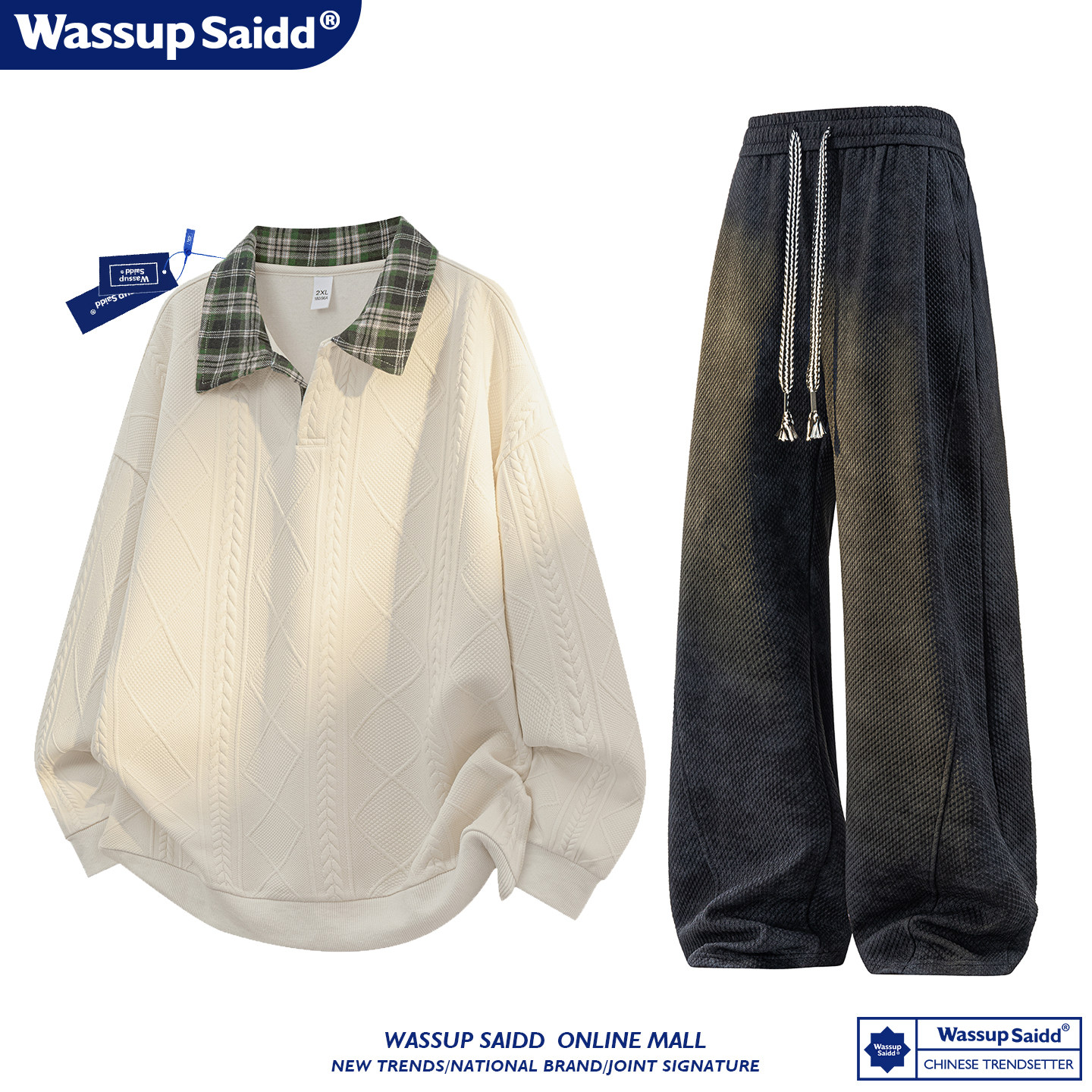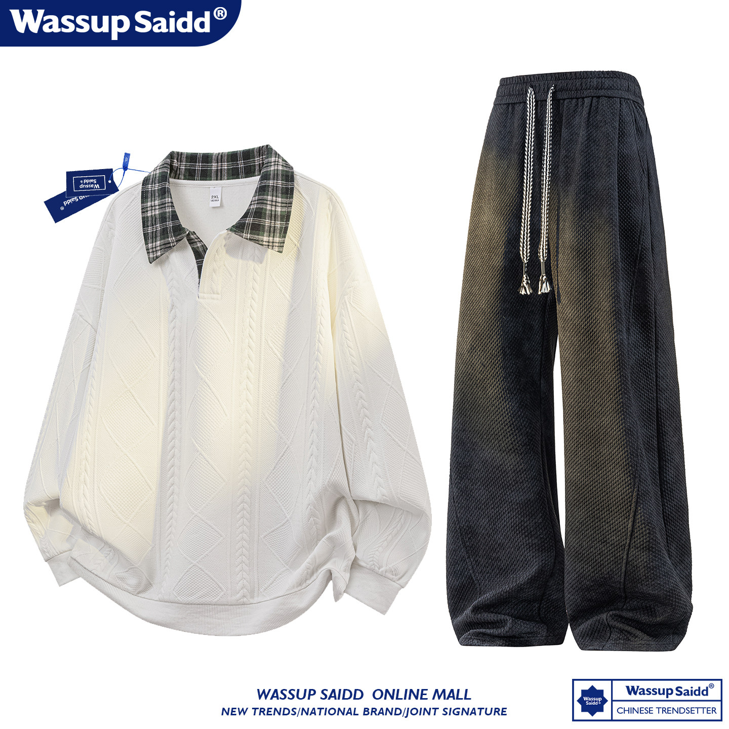 WASSUP SAIDD新款春秋扎染潮牌套装假两件卫衣长裤男女款休闲美式