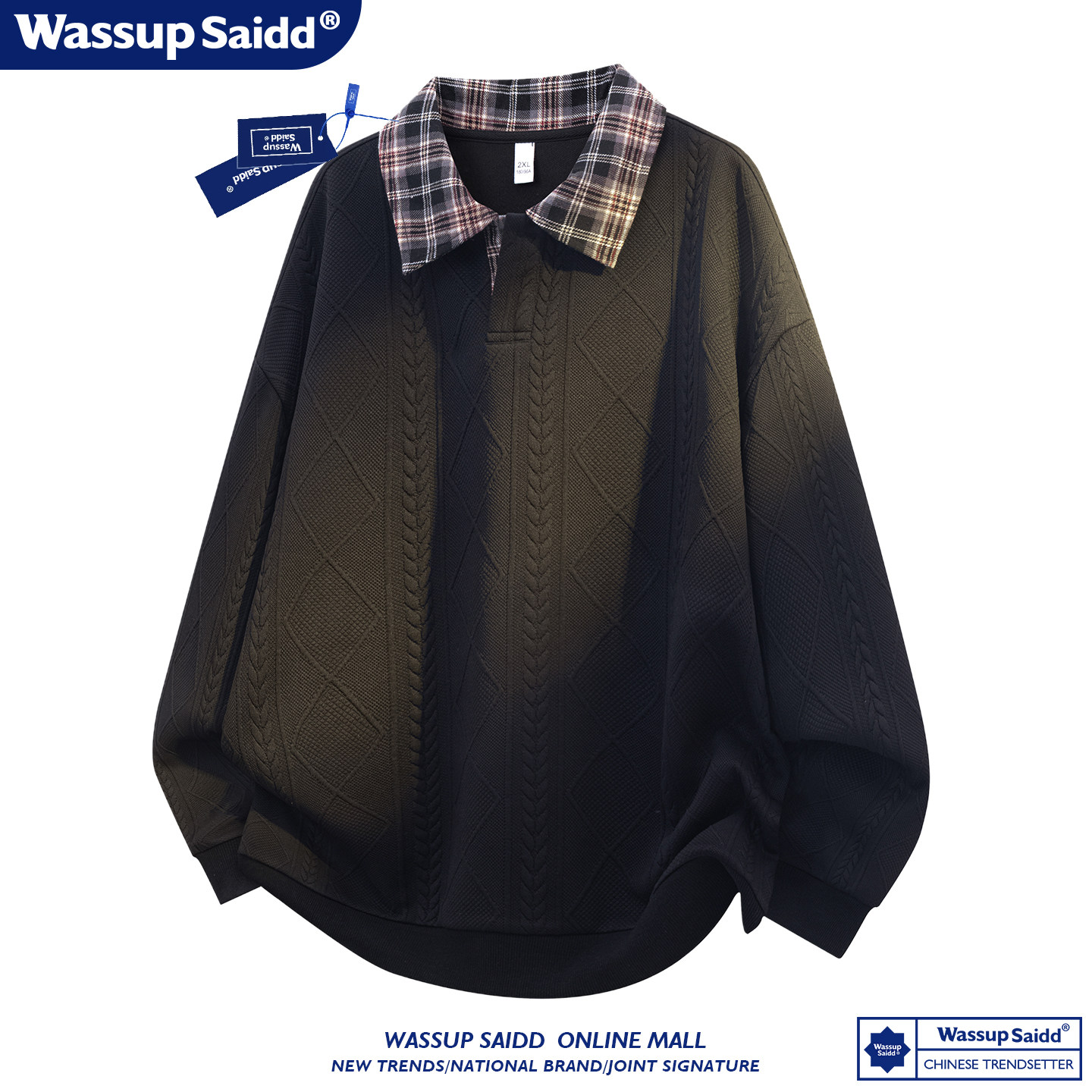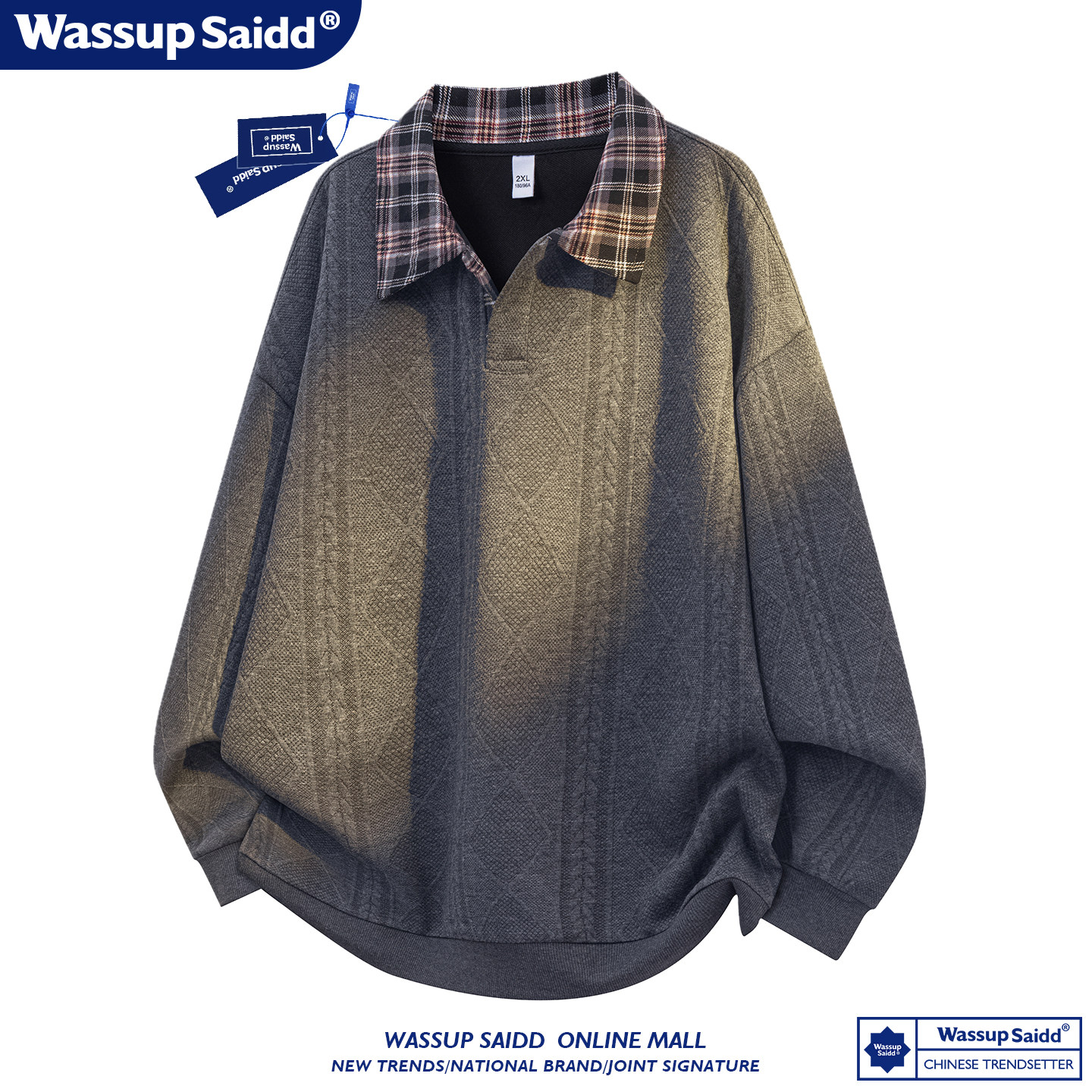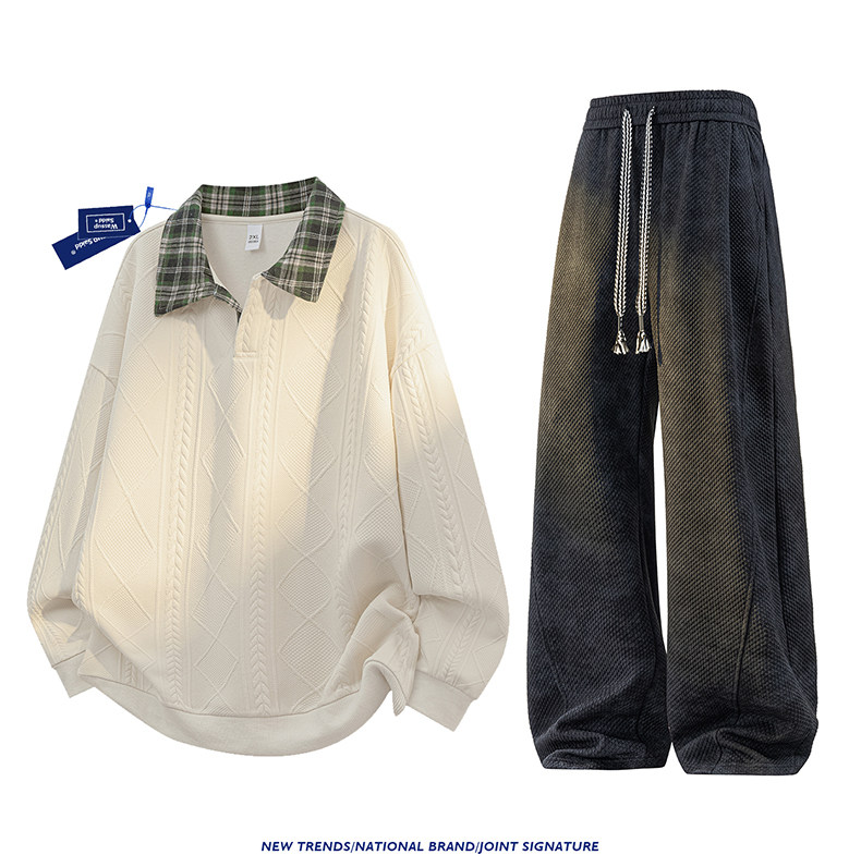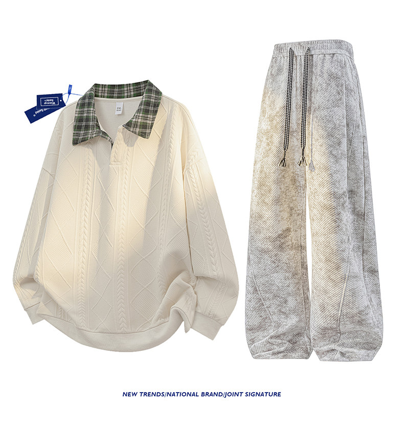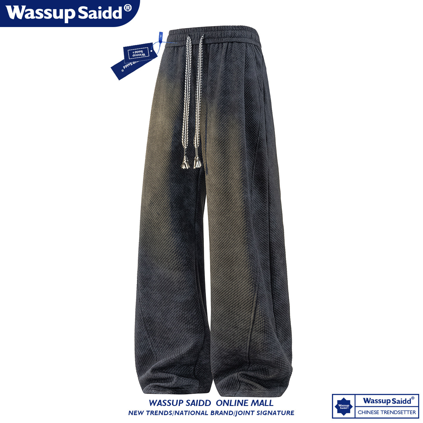 WASSUP SAIDD新款春秋扎染潮牌套装假两件卫衣长裤男女款休闲美式