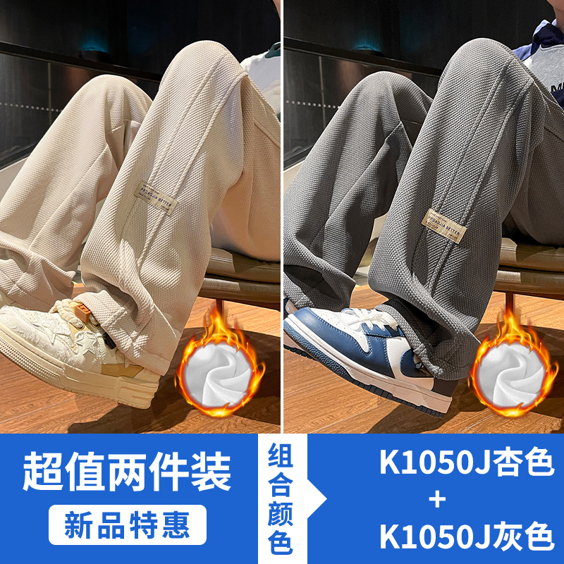 啄木鸟秋冬季新款卫裤男士运动宽松直筒加绒加厚阔腿休闲长裤子男