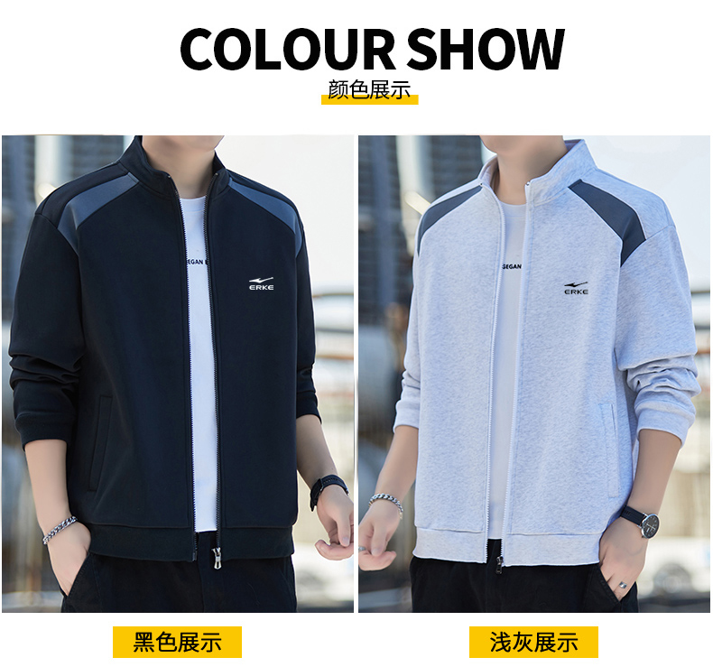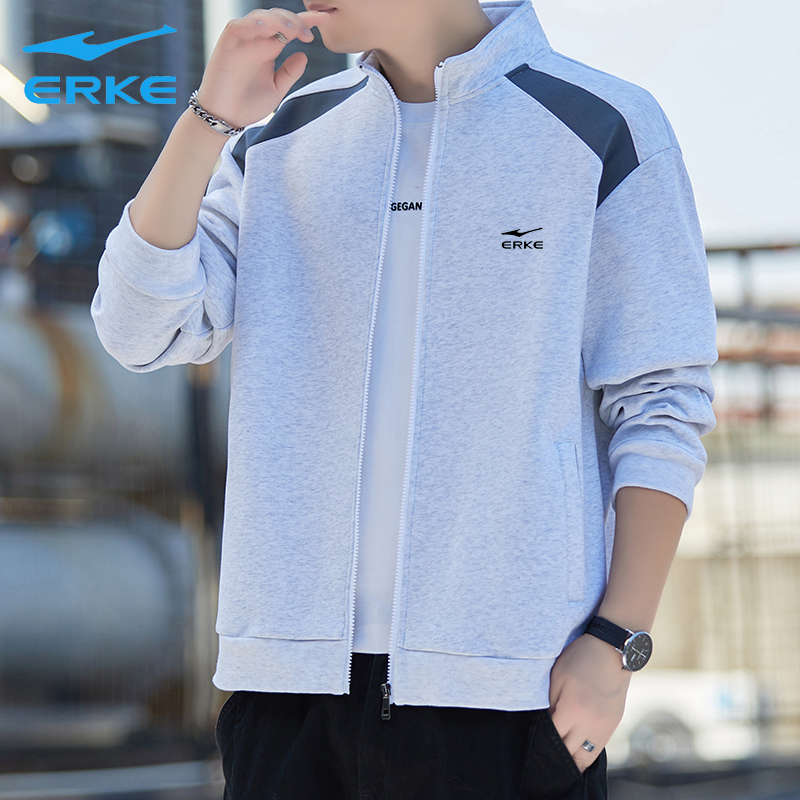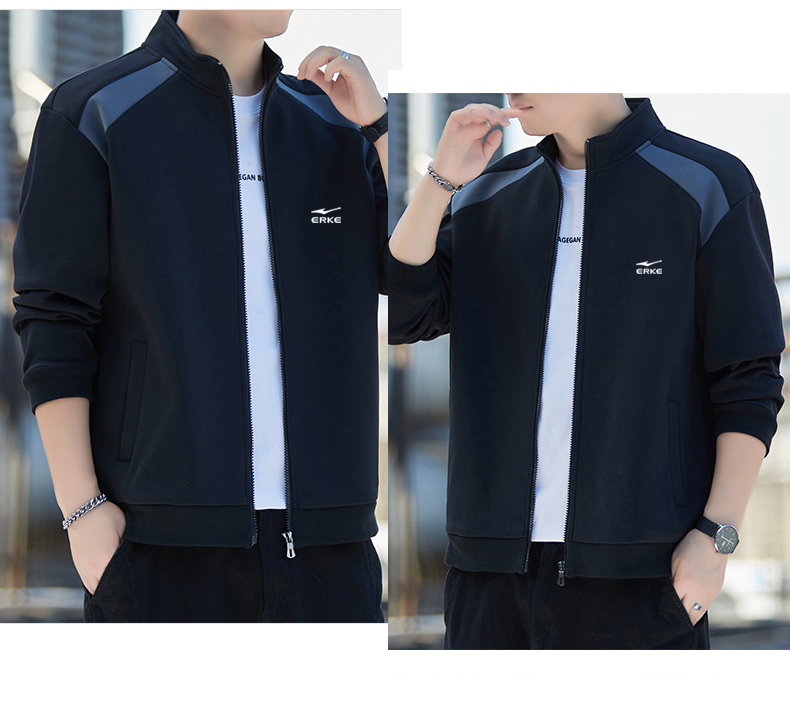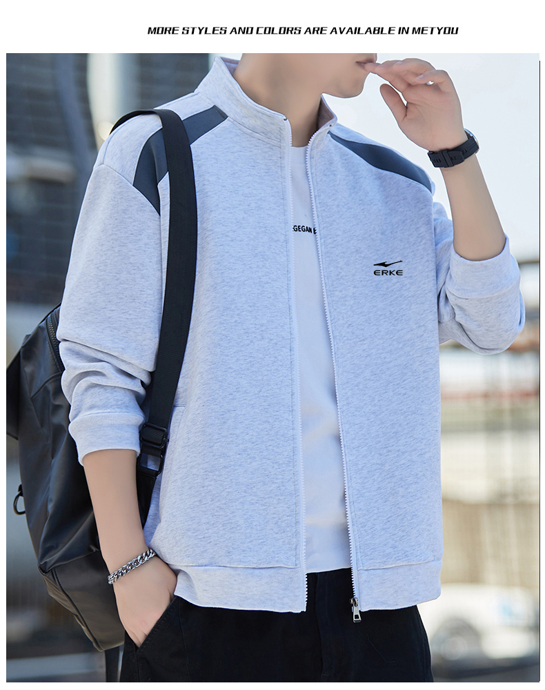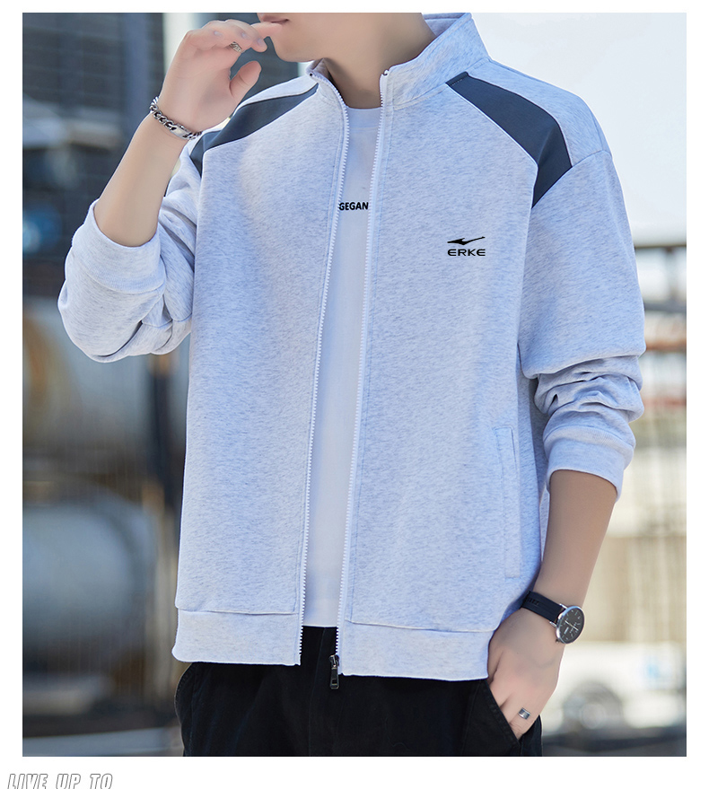 鸿星尔克男士运动立领外套秋季休闲宽松开衫卫衣男装新款防风夹克