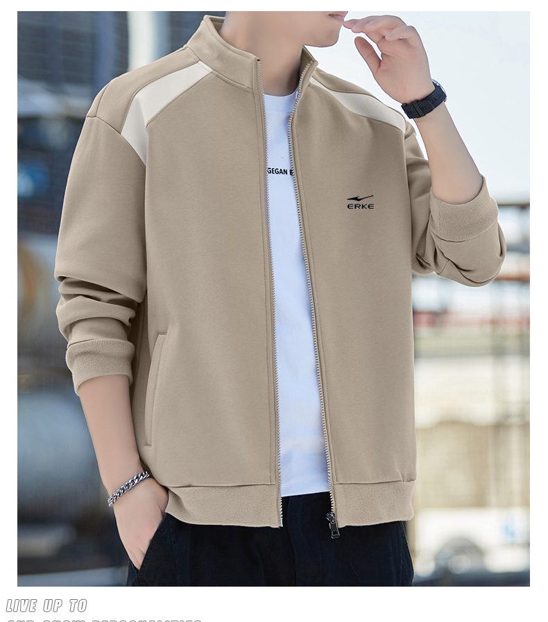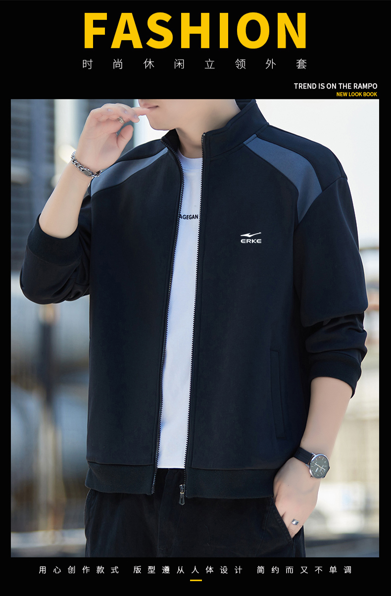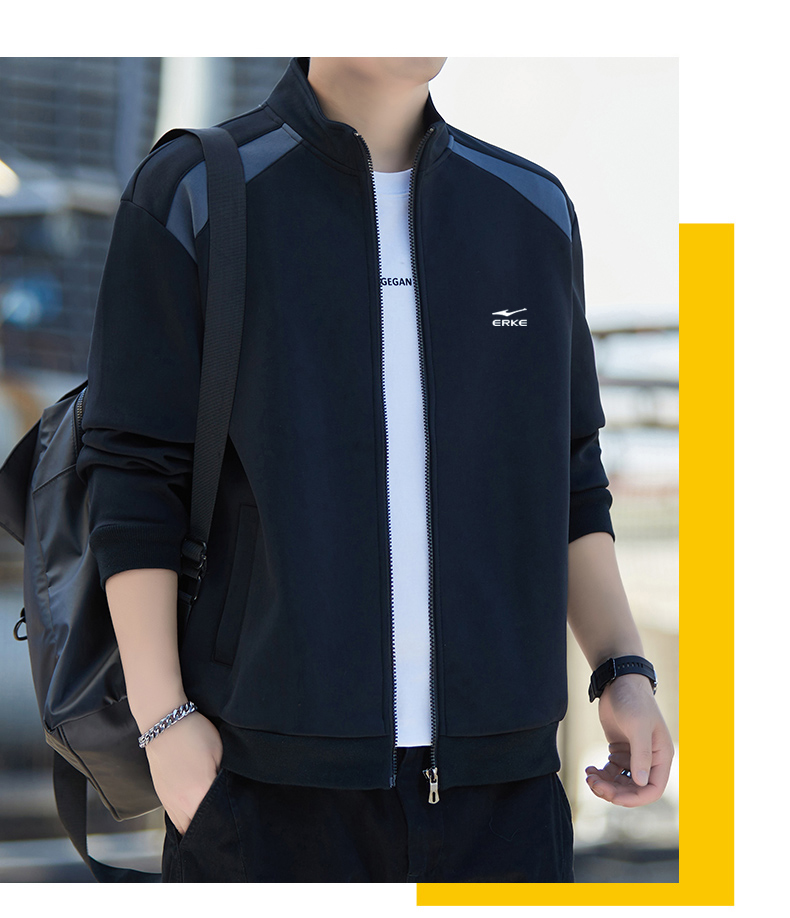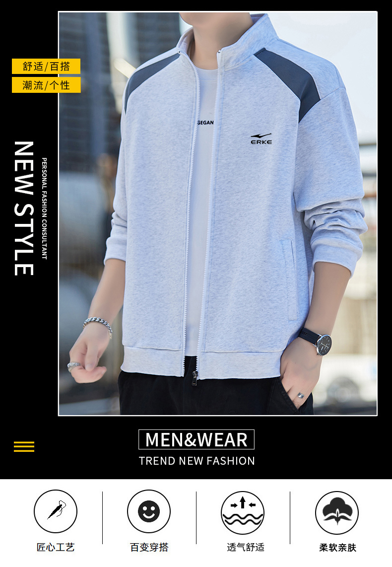 鸿星尔克男士运动立领外套秋季休闲宽松开衫卫衣男装新款防风夹克