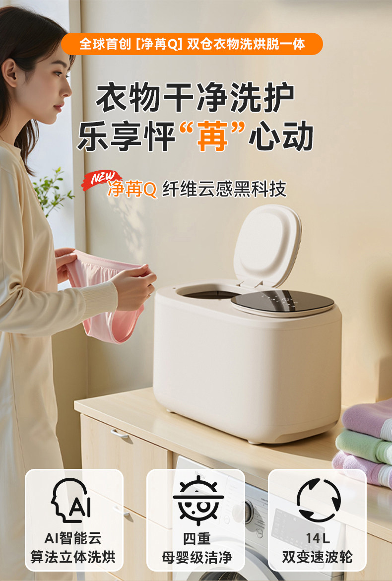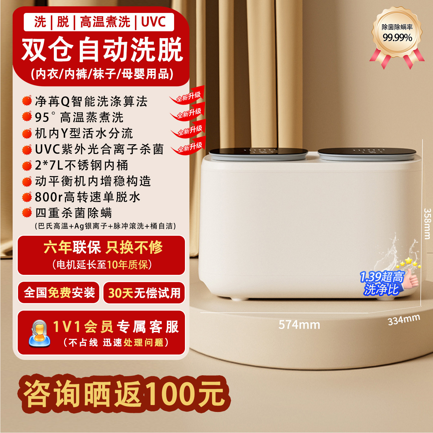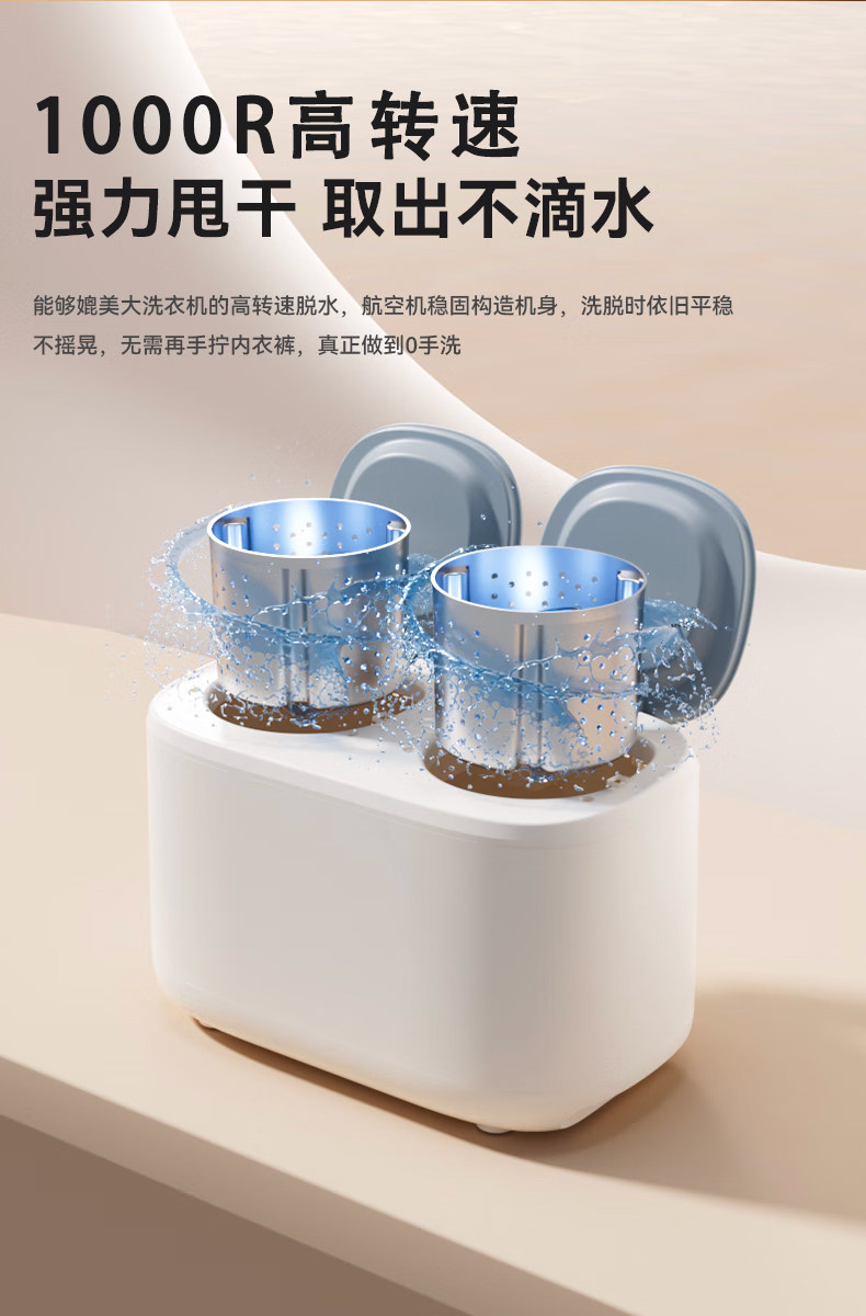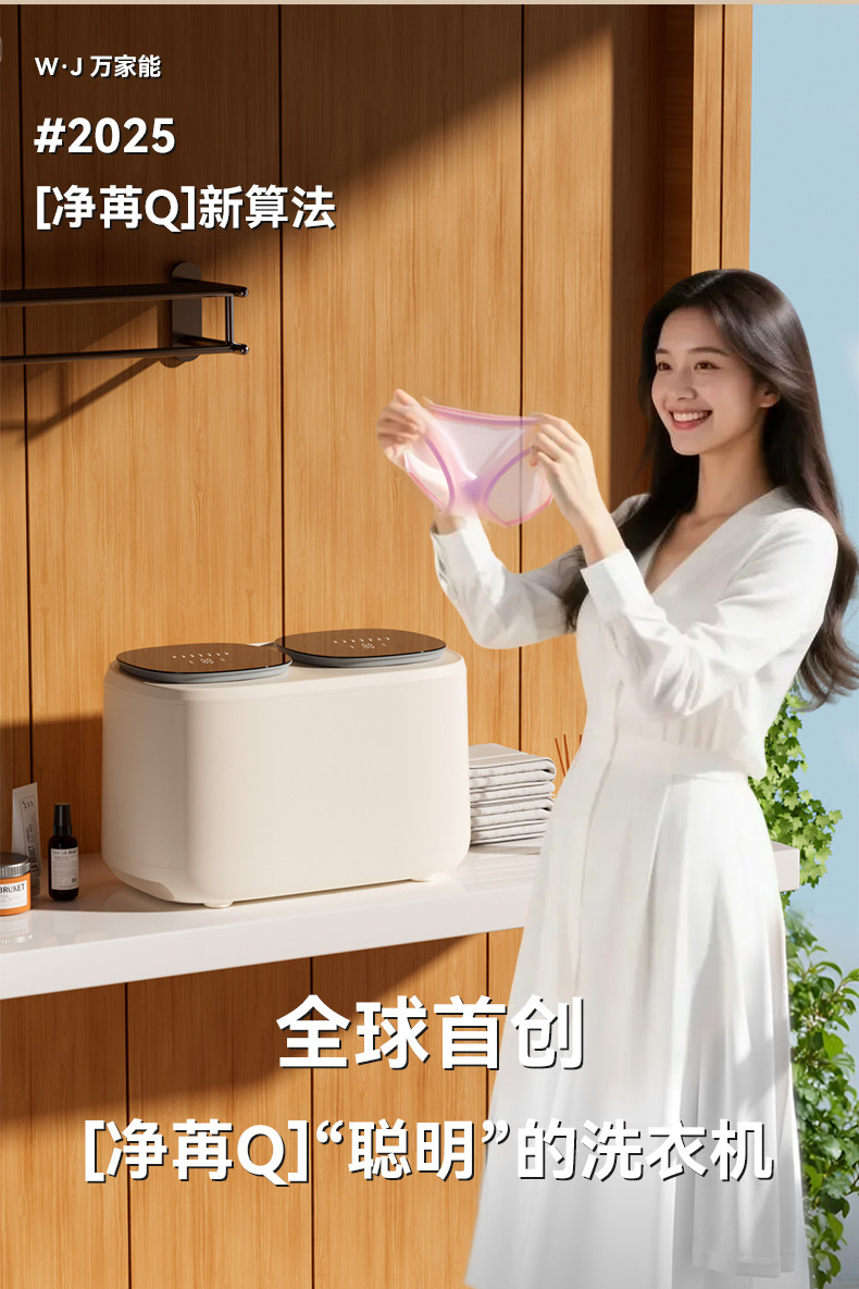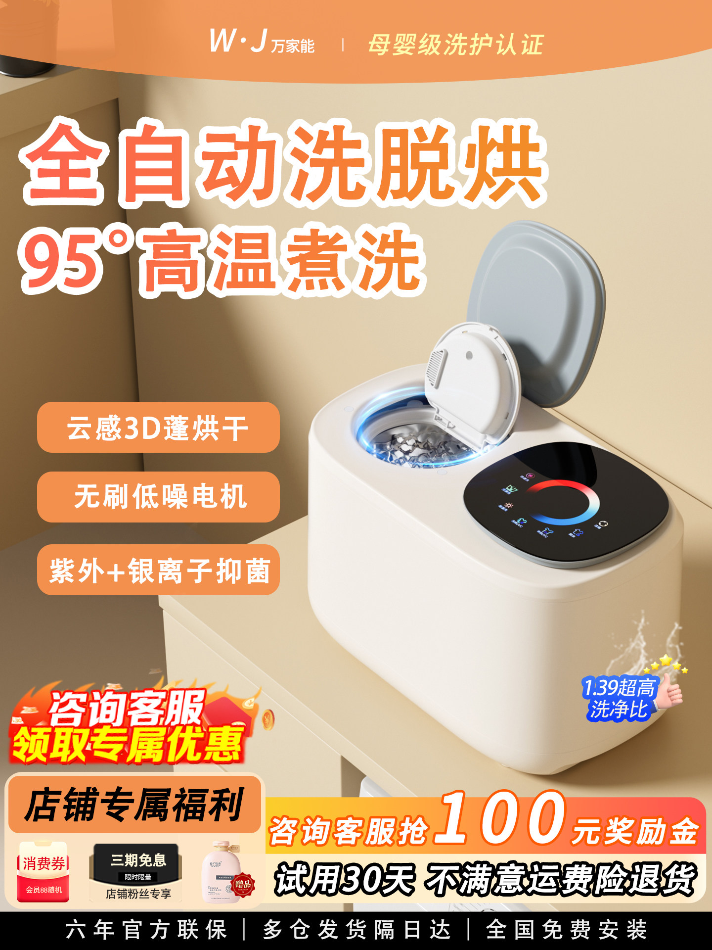 万家能双舱全自动内衣裤专用迷你洗衣机小型洗袜子洗烘一体清洗机