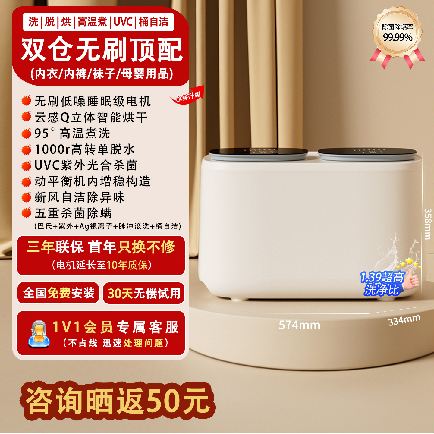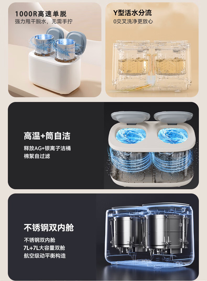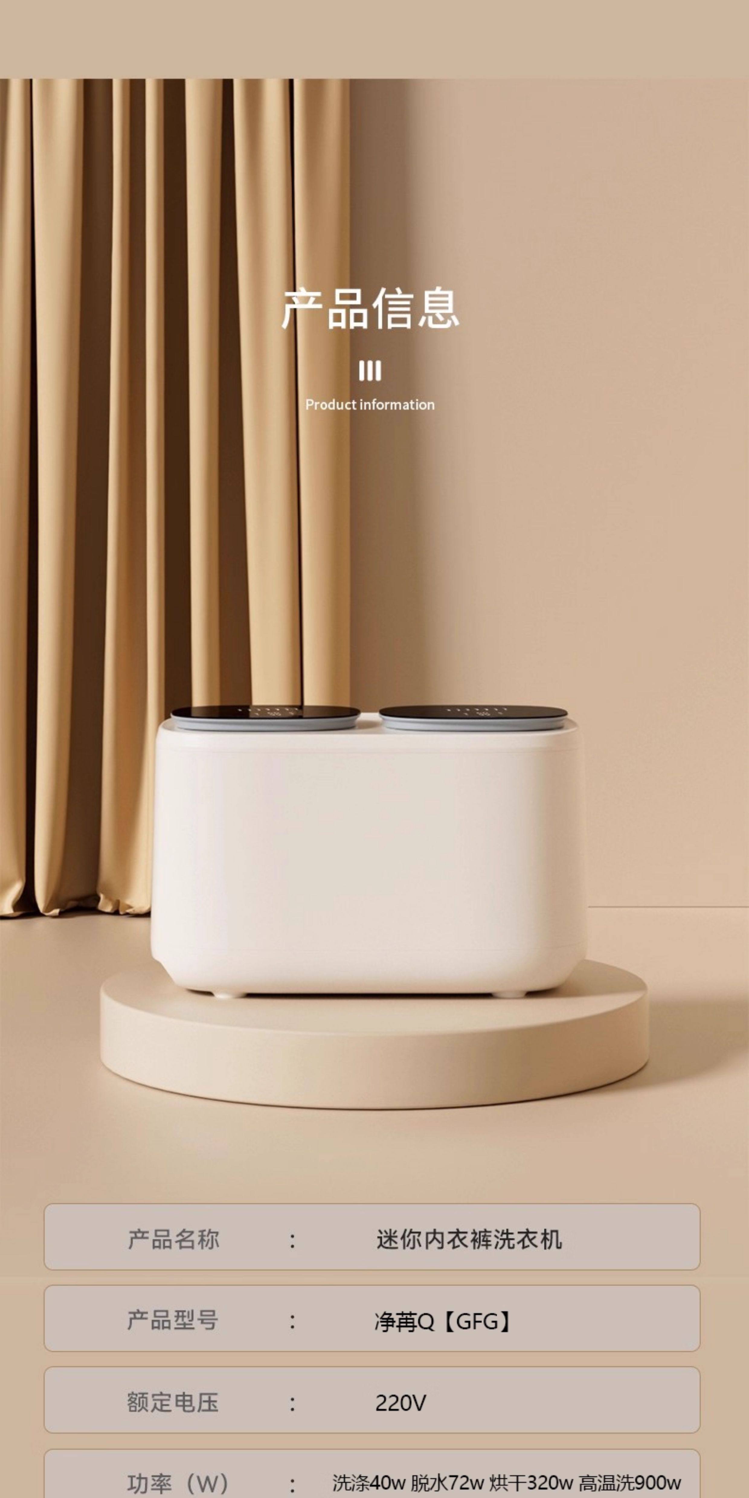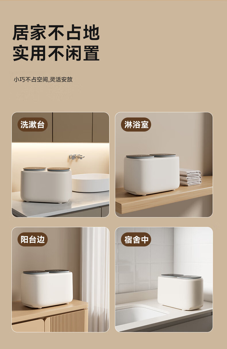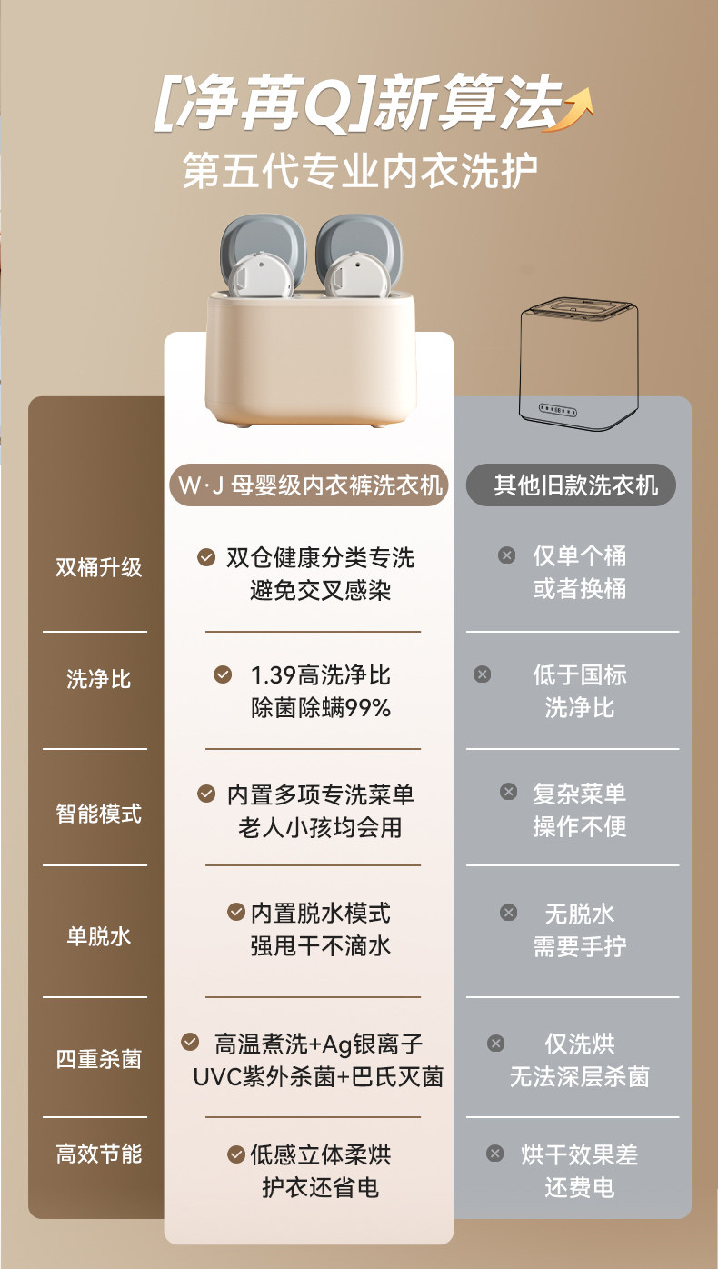 万家能双舱全自动内衣裤专用迷你洗衣机小型洗袜子洗烘一体清洗机