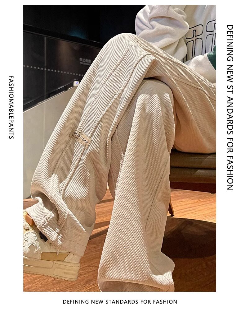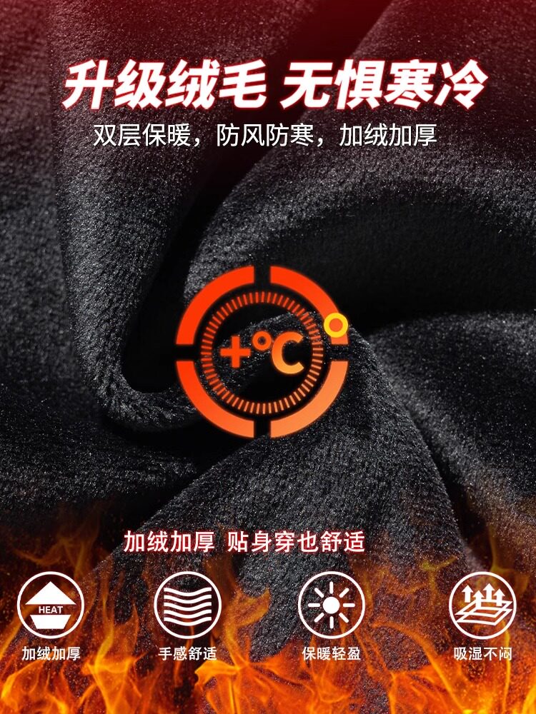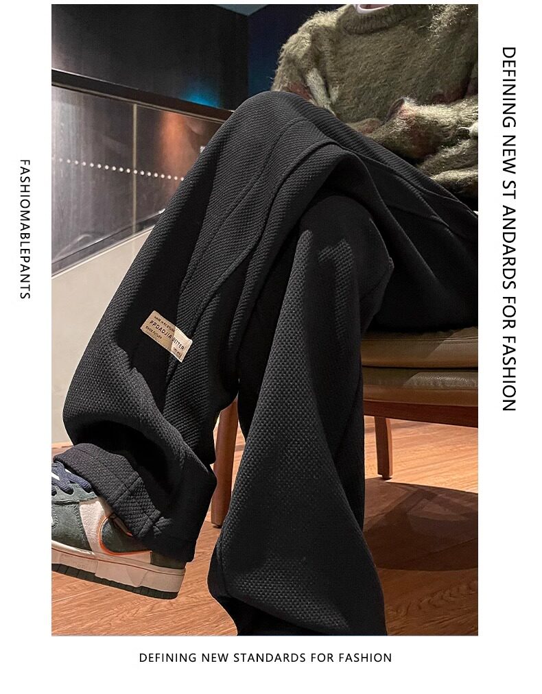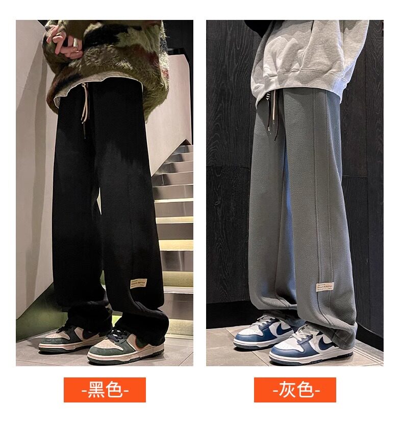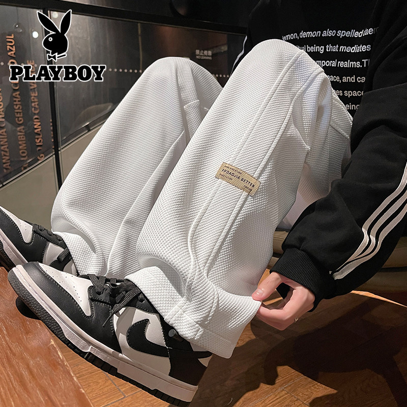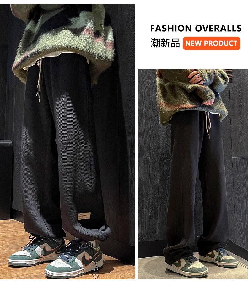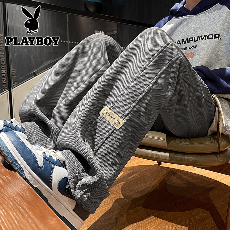 花花公子秋冬季新款卫裤男士运动宽松直筒加绒加厚阔腿休闲长裤子