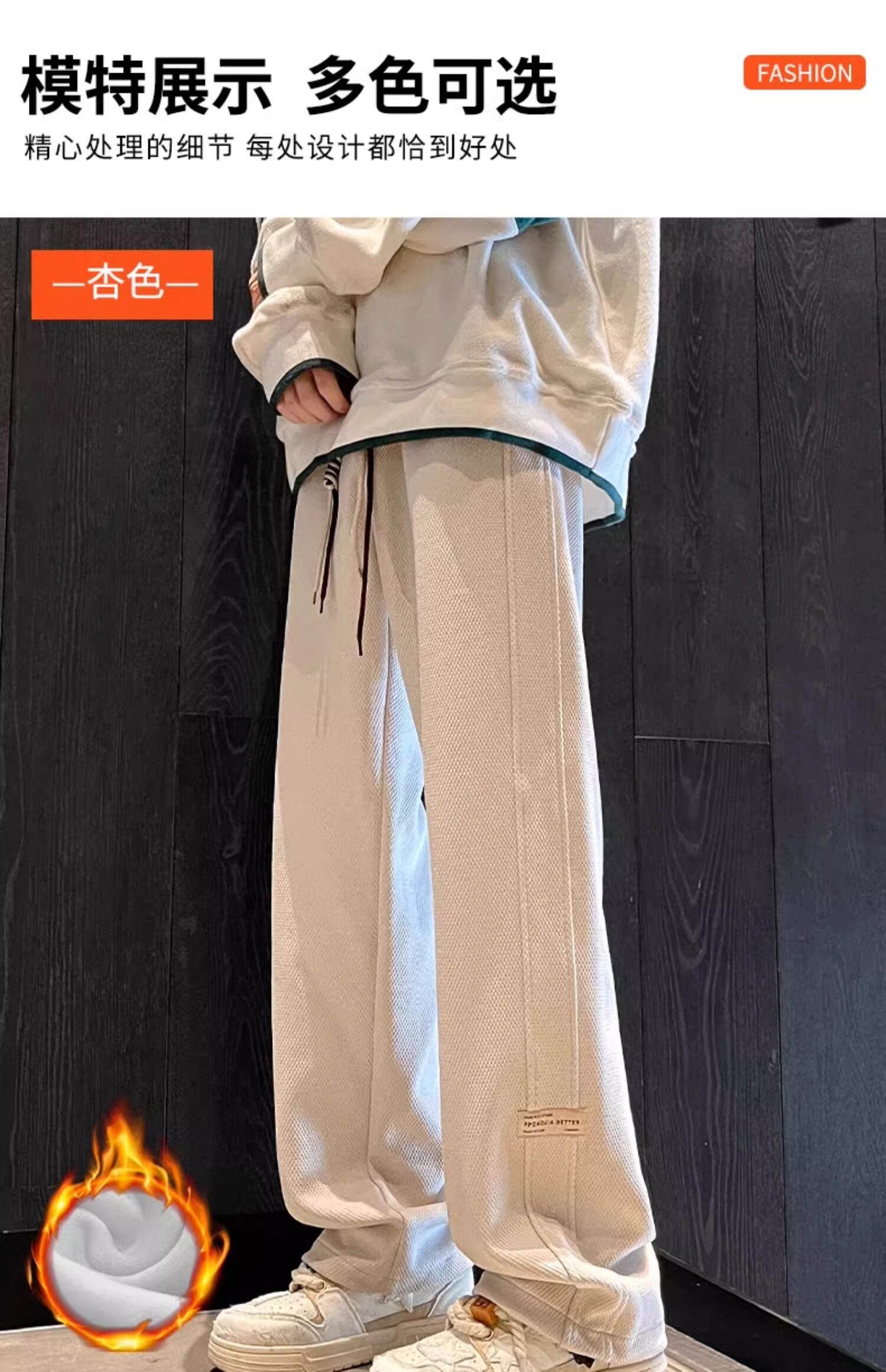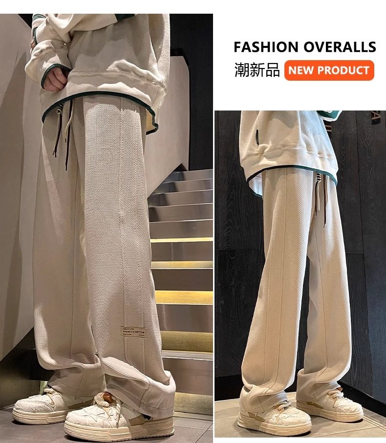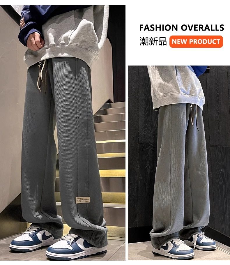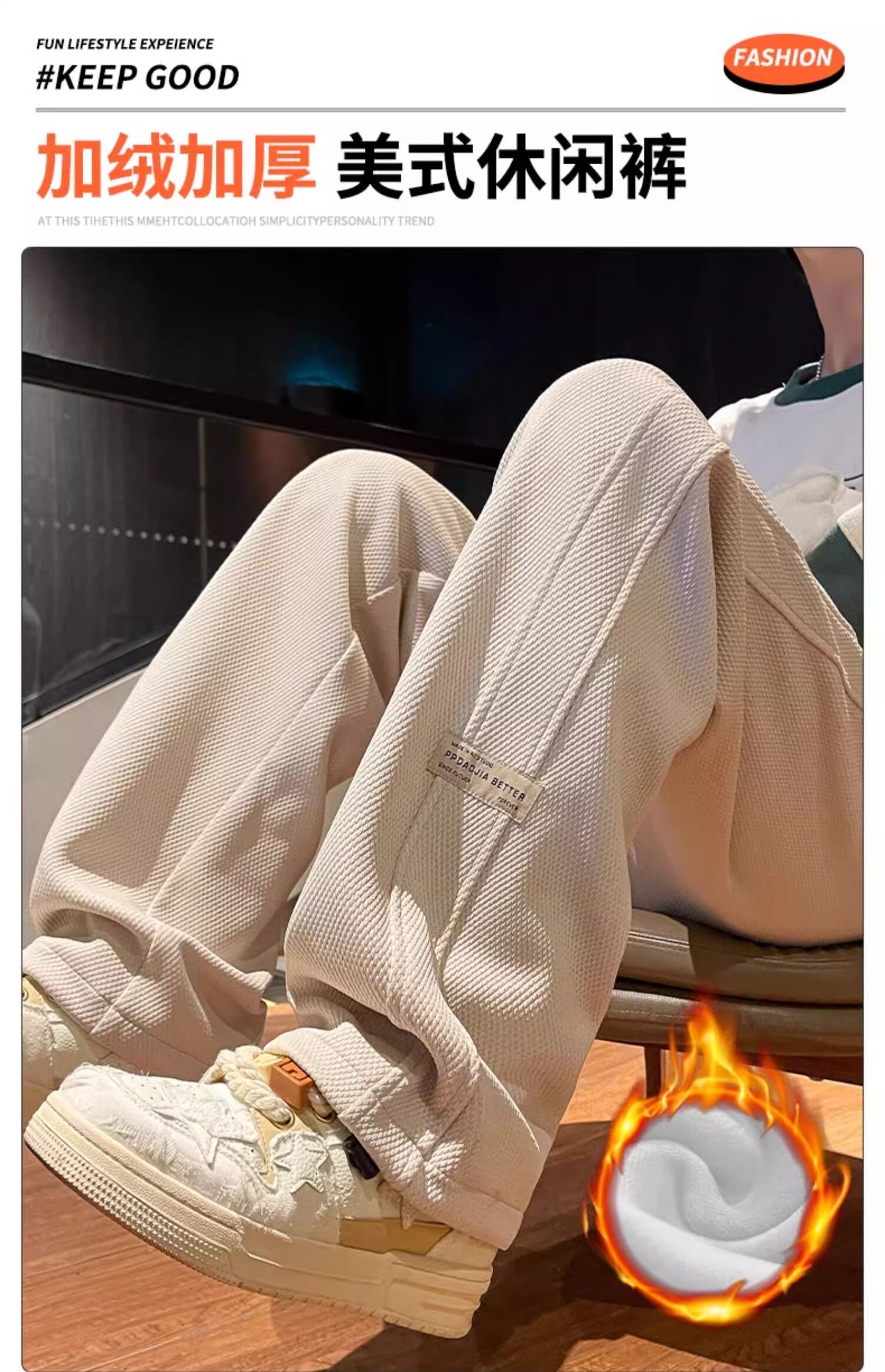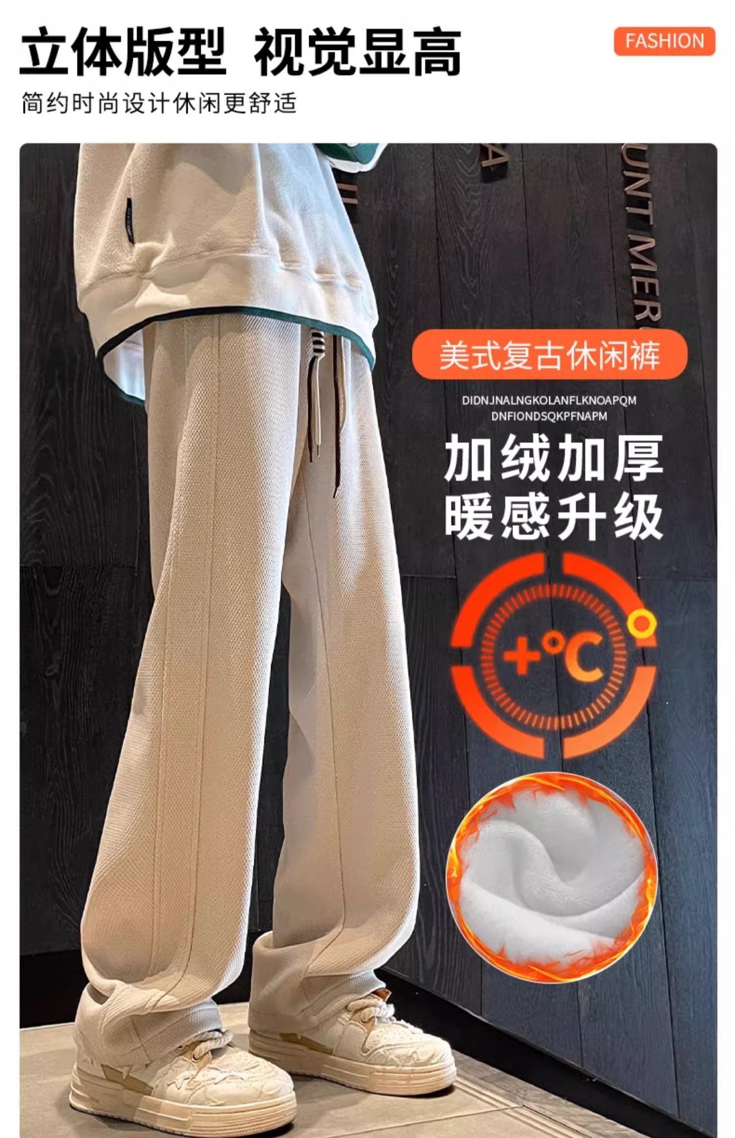 花花公子秋冬季新款卫裤男士运动宽松直筒加绒加厚阔腿休闲长裤子