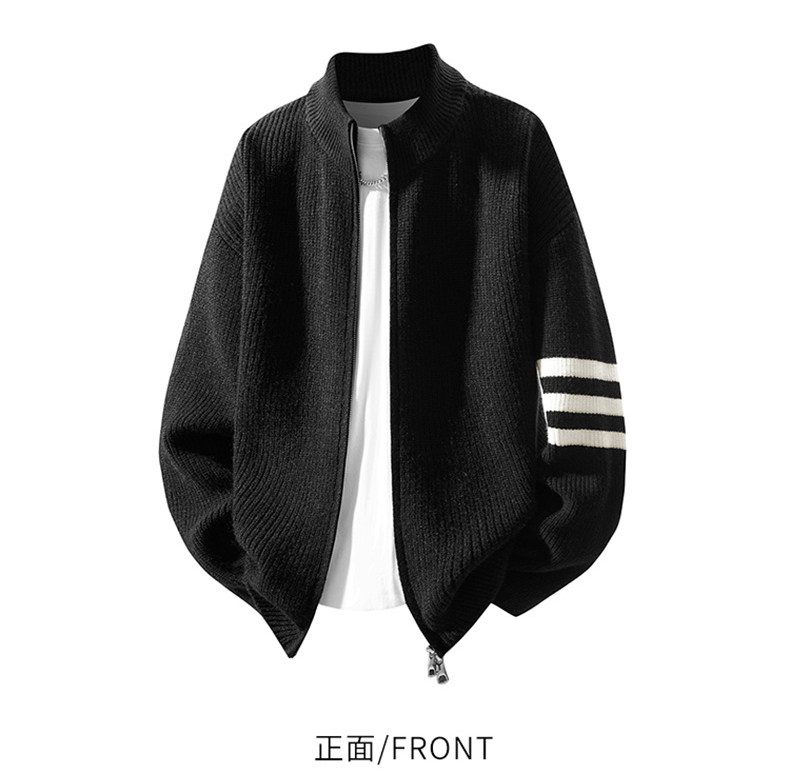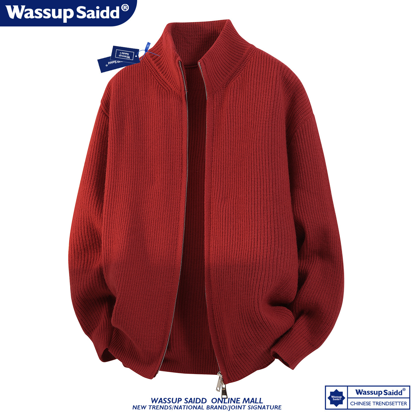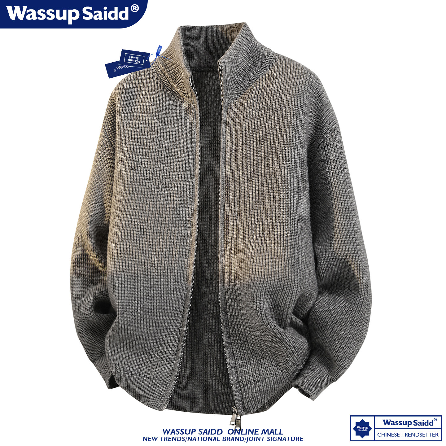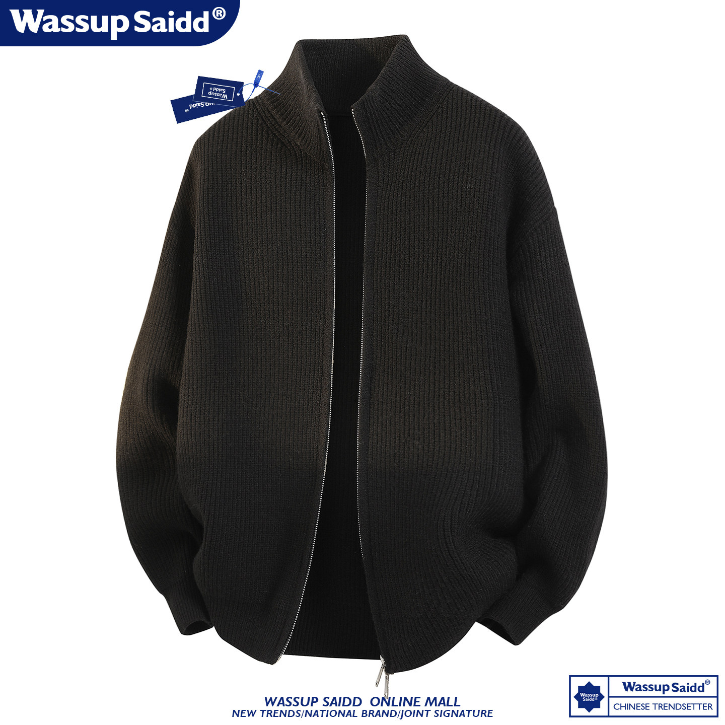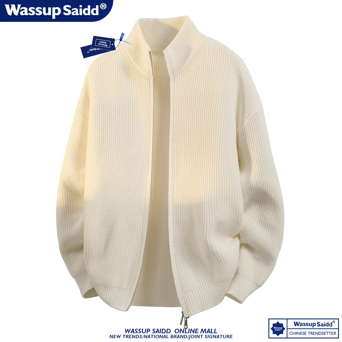 WASSUP SAIDD立领开衫毛衣男款秋季美式风条纹针织衫宽松休闲外套