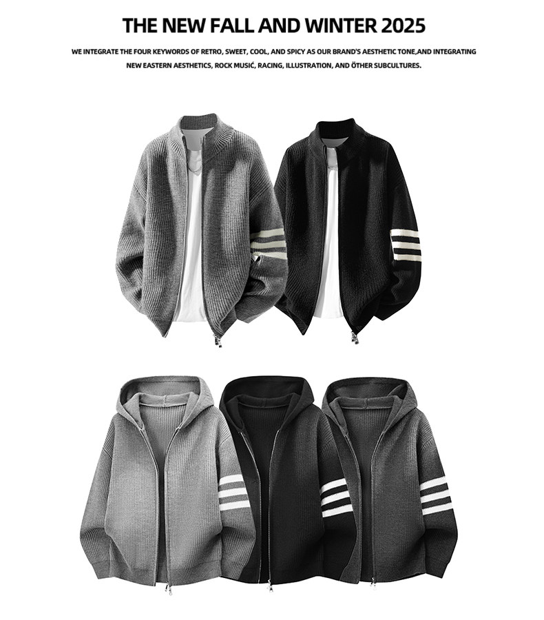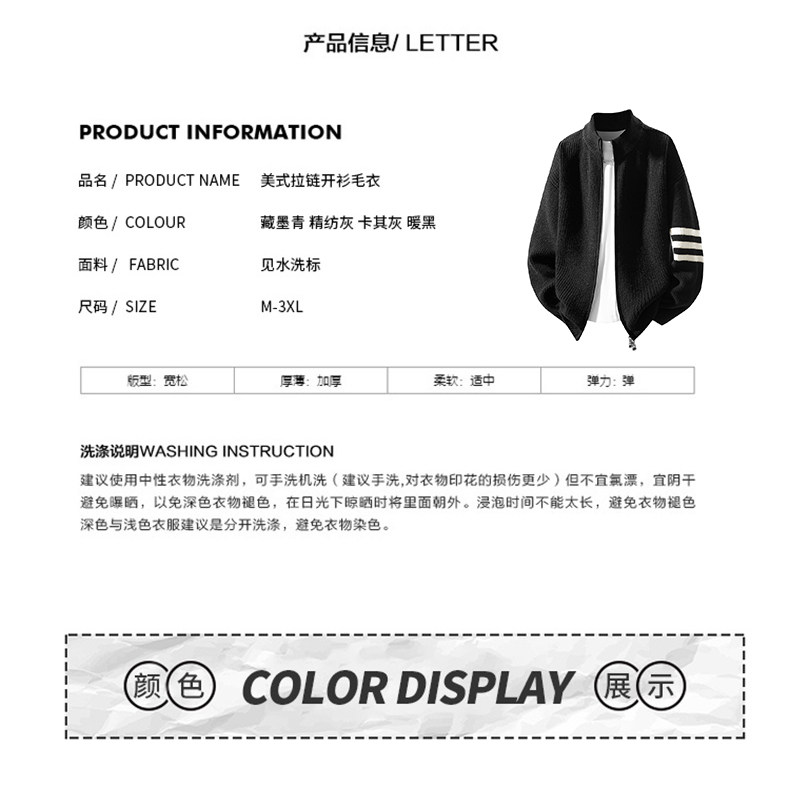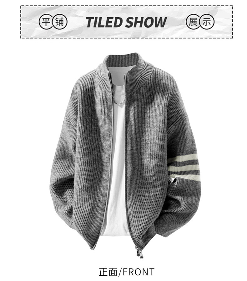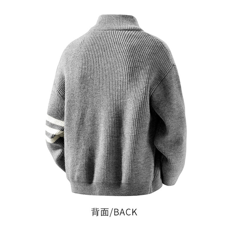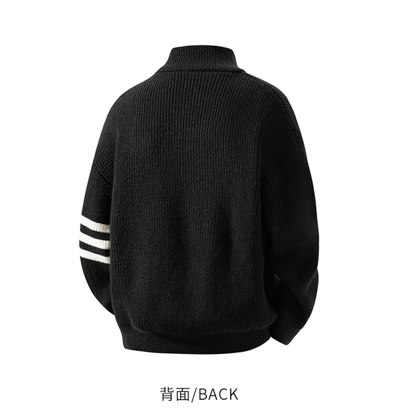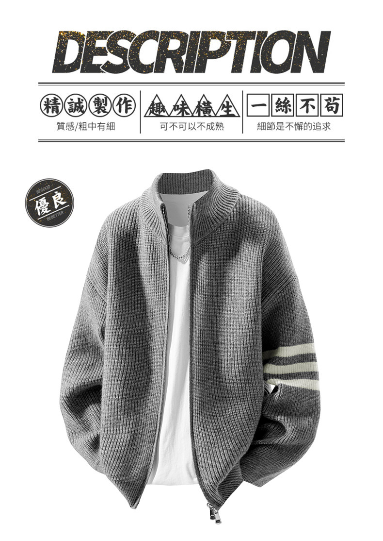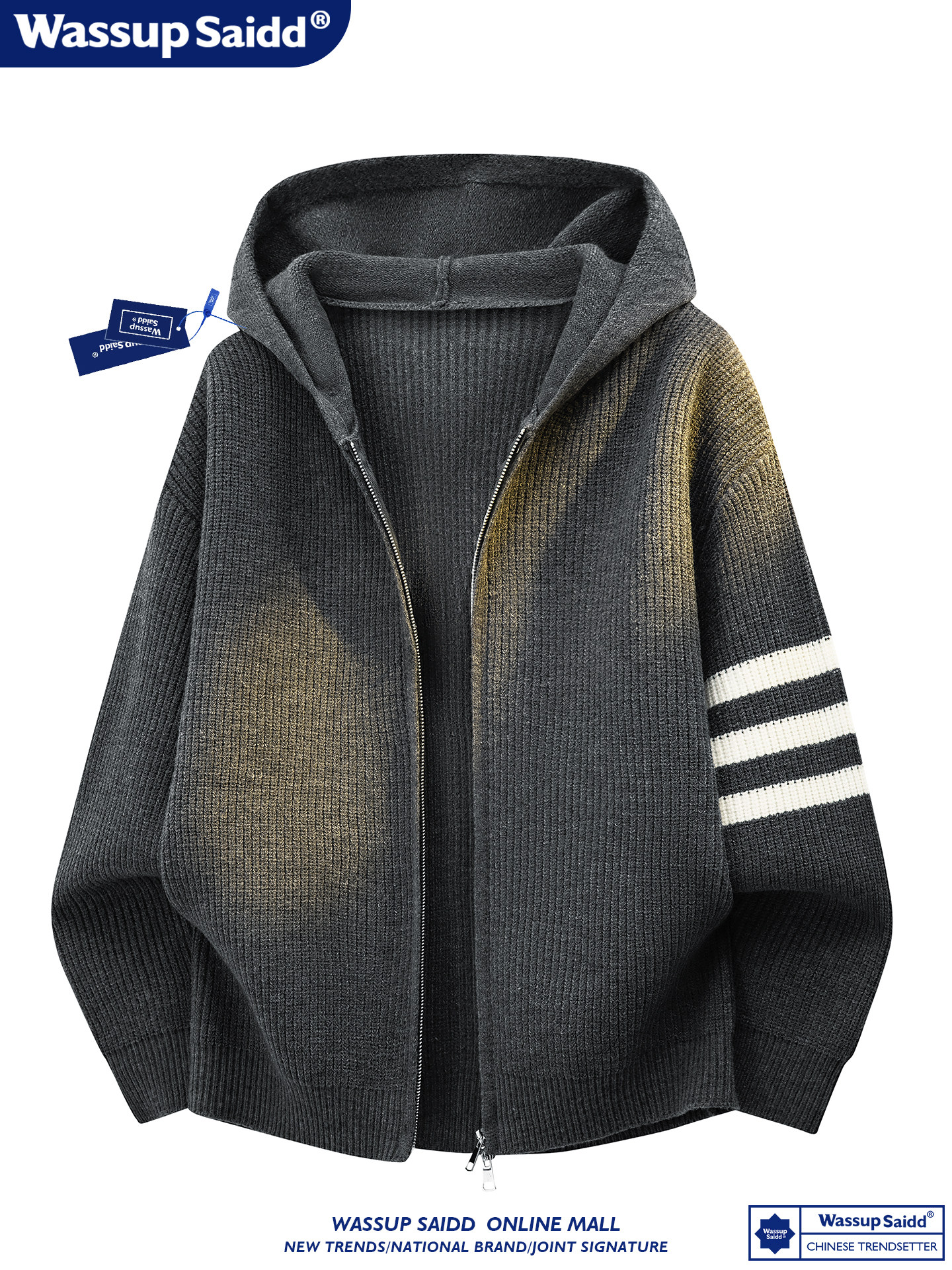 WASSUP SAIDD立领开衫毛衣男款秋季美式风条纹针织衫宽松休闲外套