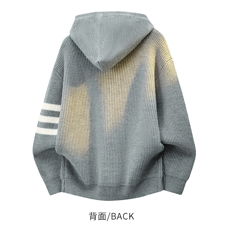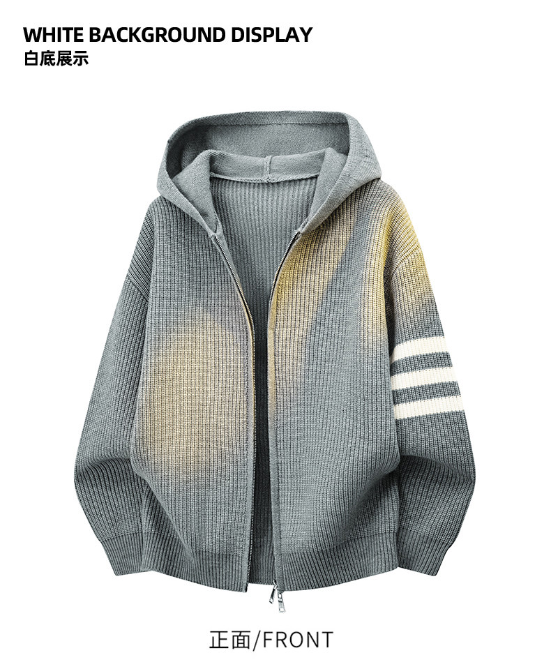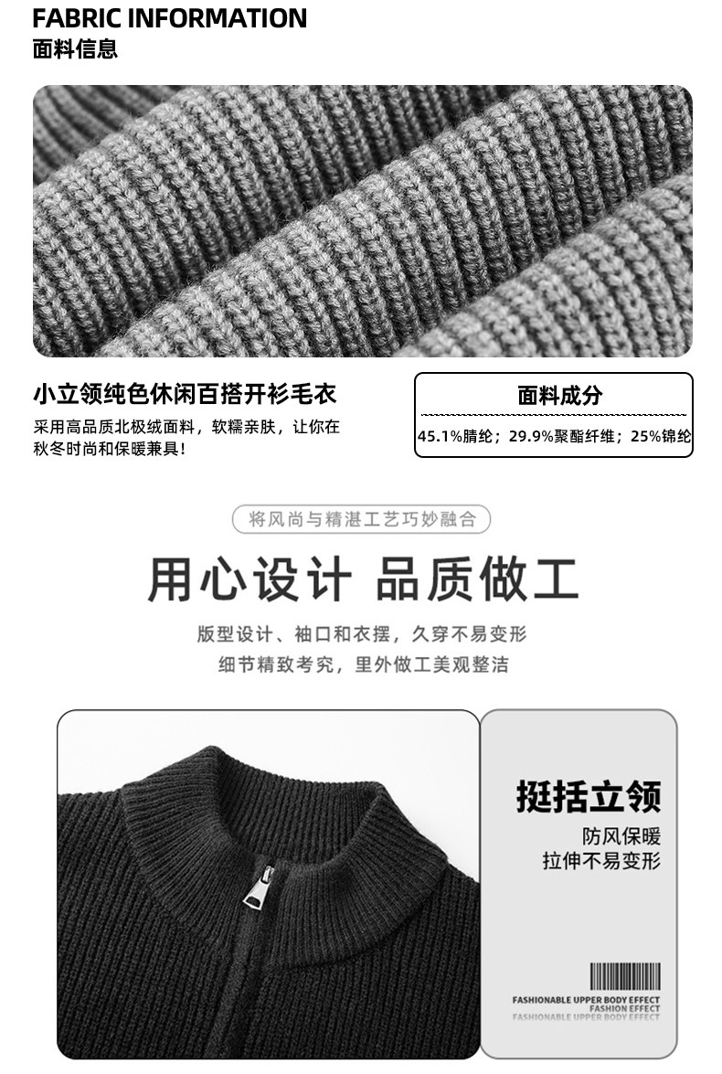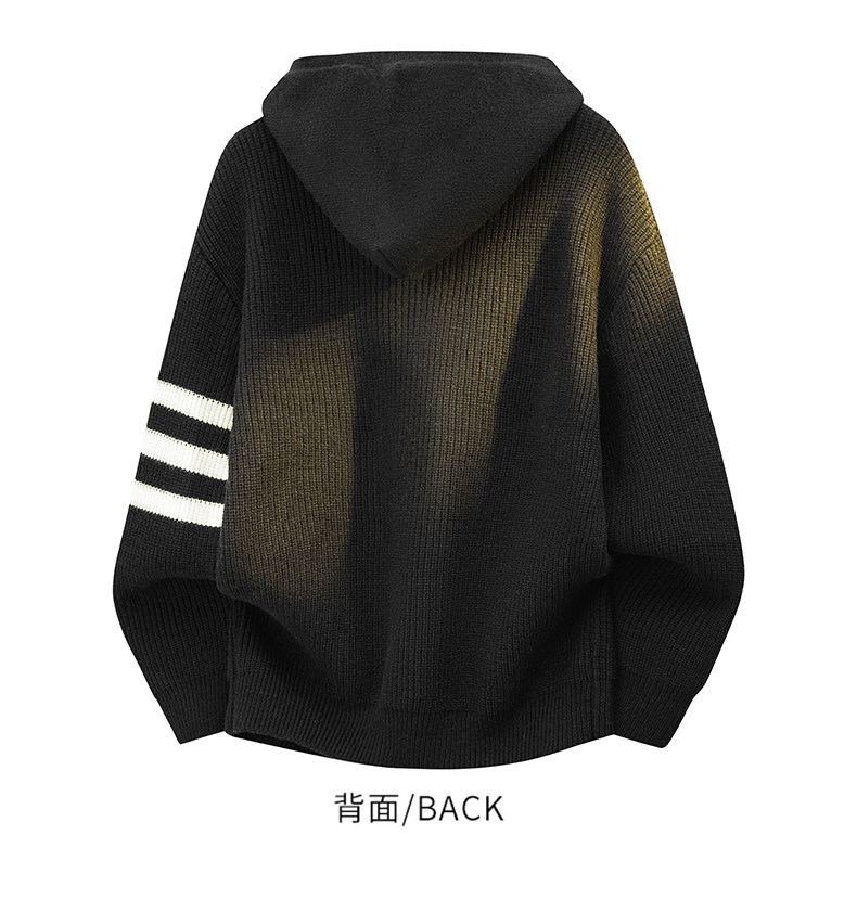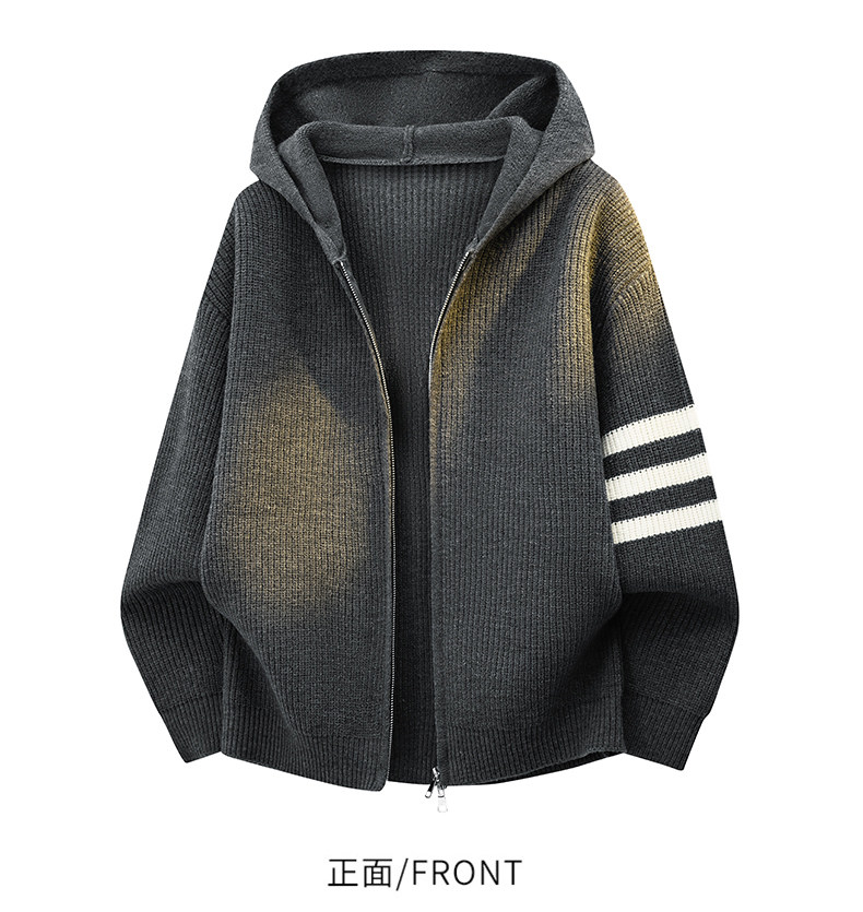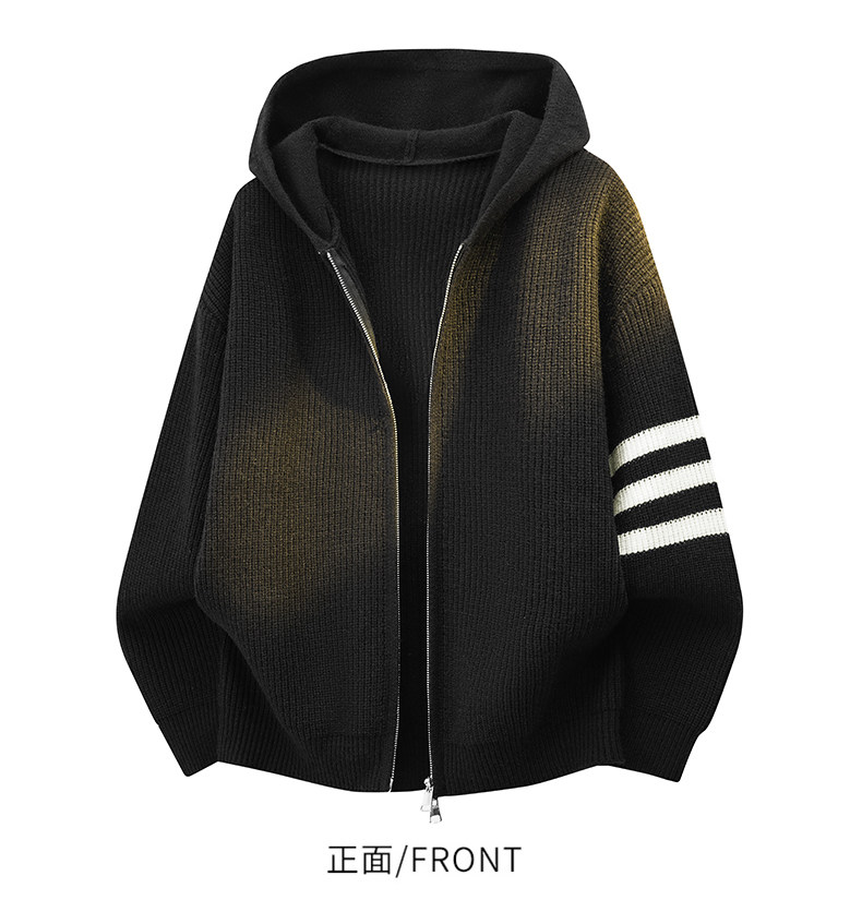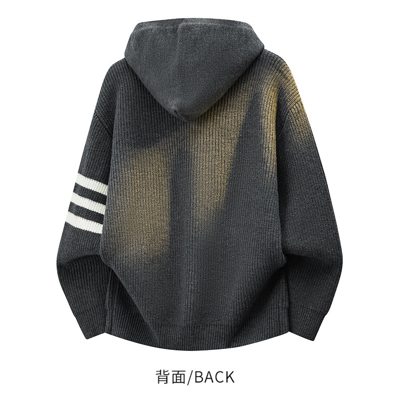 WASSUP SAIDD立领开衫毛衣男款秋季美式风条纹针织衫宽松休闲外套