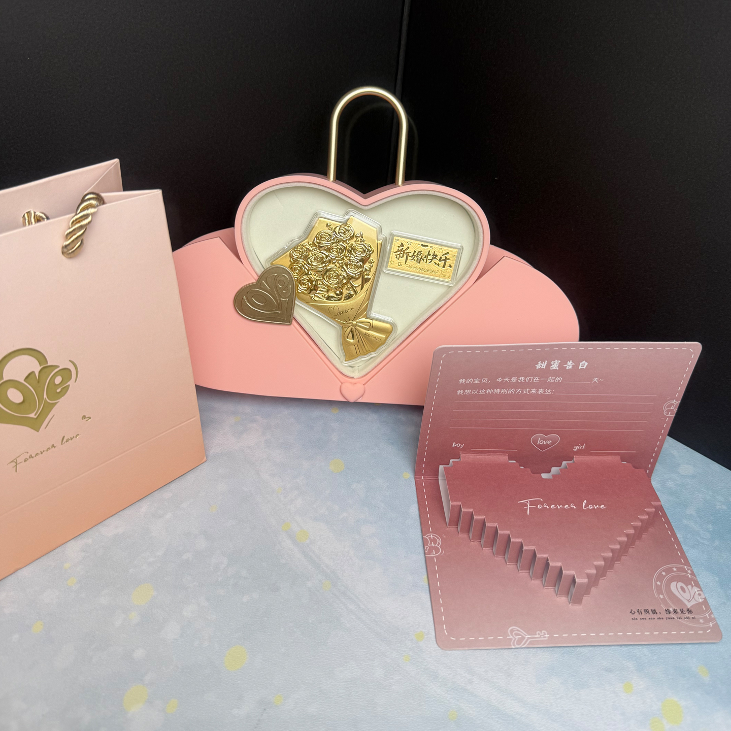 水贝黄金生日快乐蛋糕金片礼盒装玫瑰花永生手捧花送女友老婆礼物