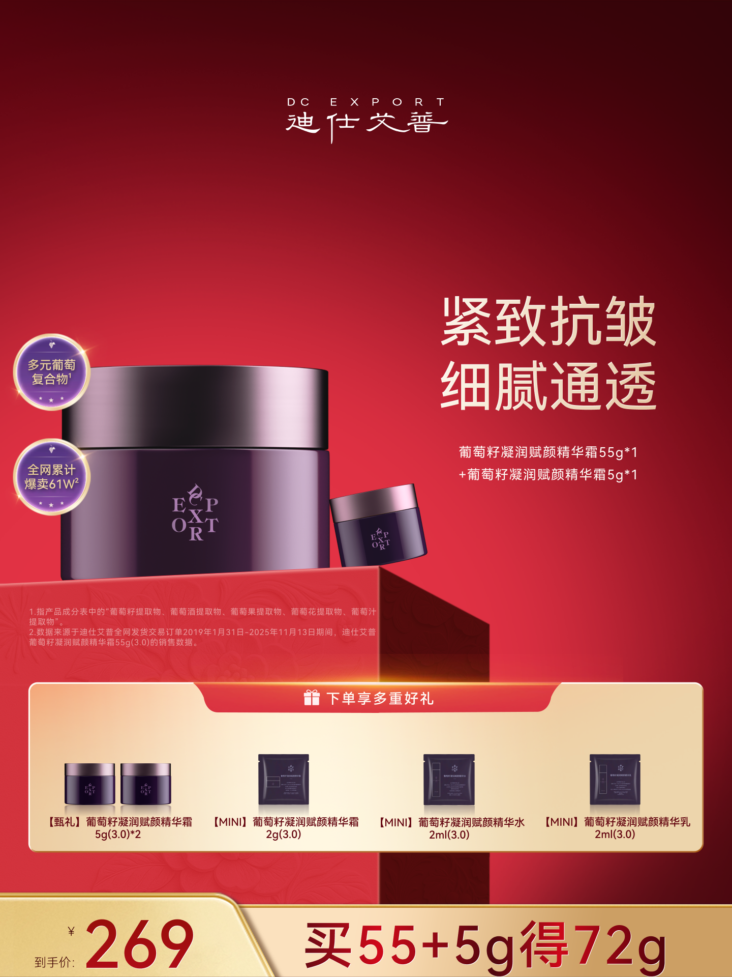 迪仕艾普叶海洋葡萄籽面霜面部精华护肤品抗皱紧致舒缓肌肤保湿女