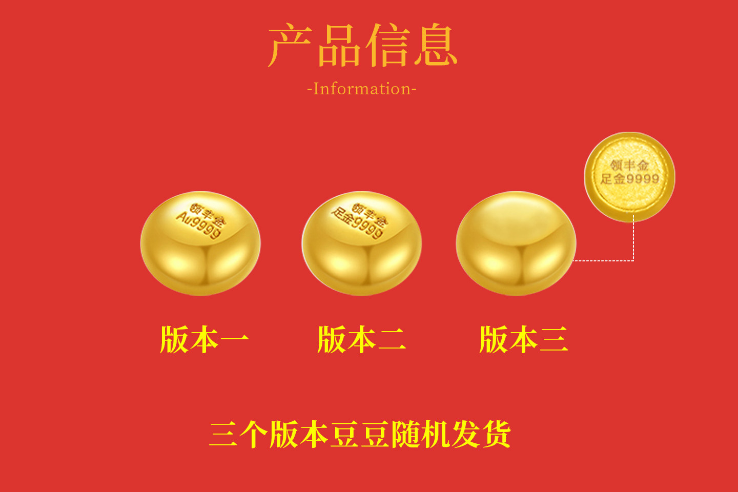 【品牌爆卖500000+】领丰金 金豆足金9999黄金豆子1g纯金豆金条