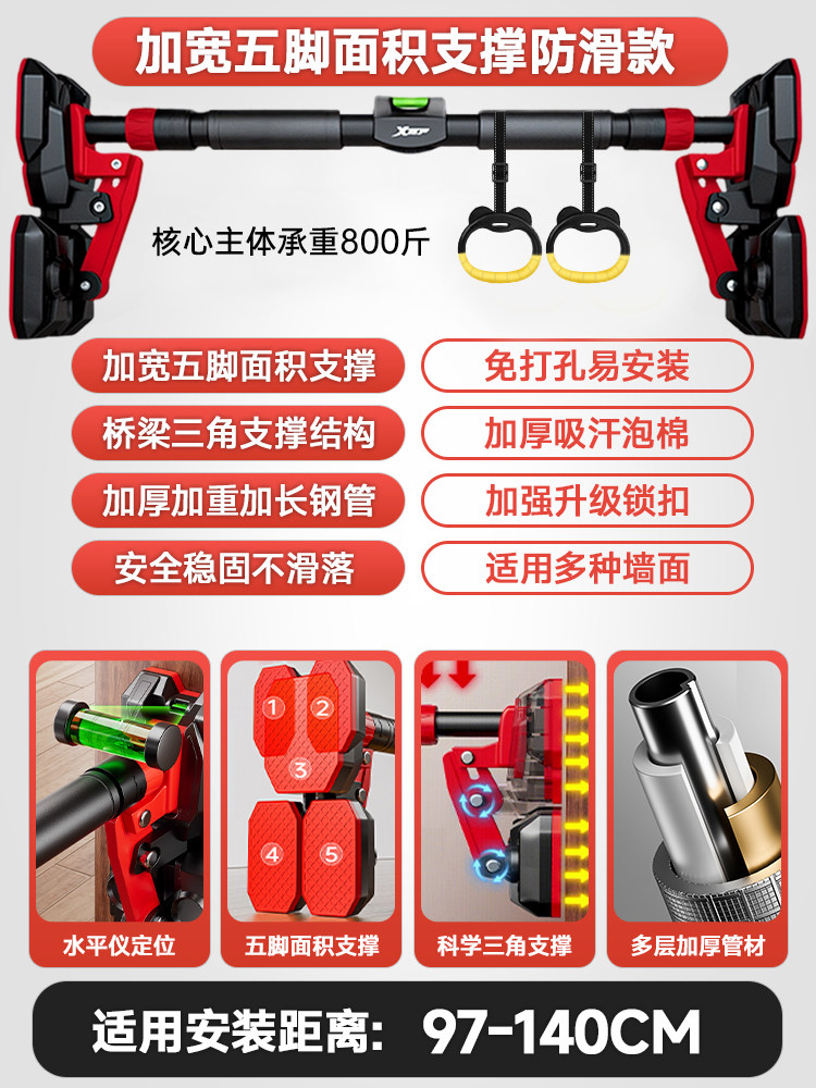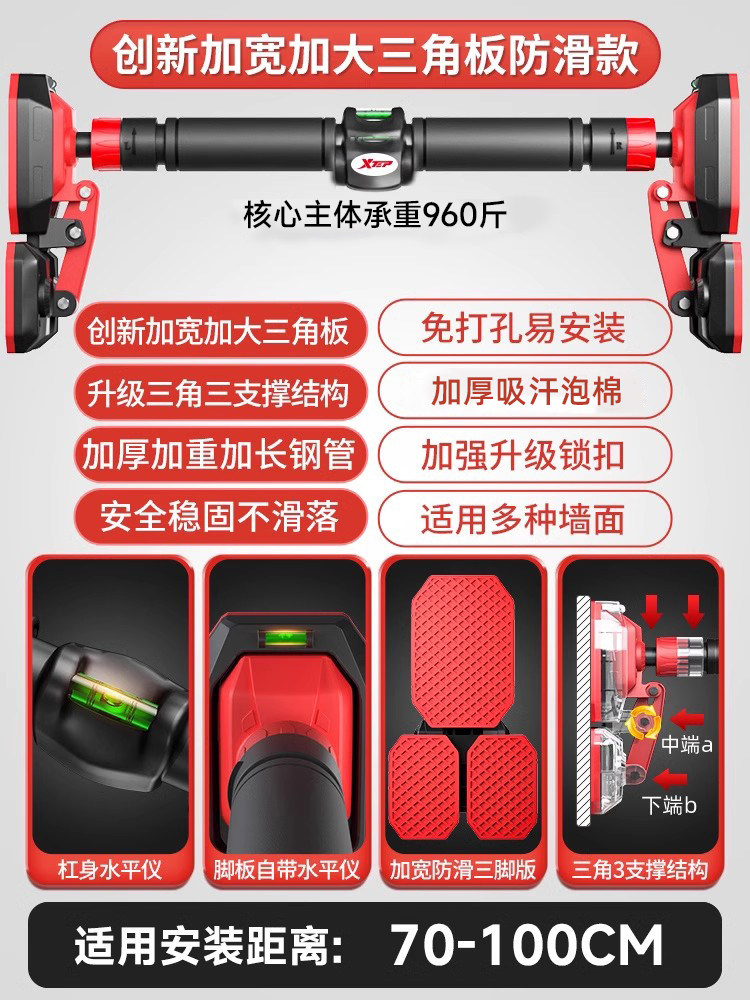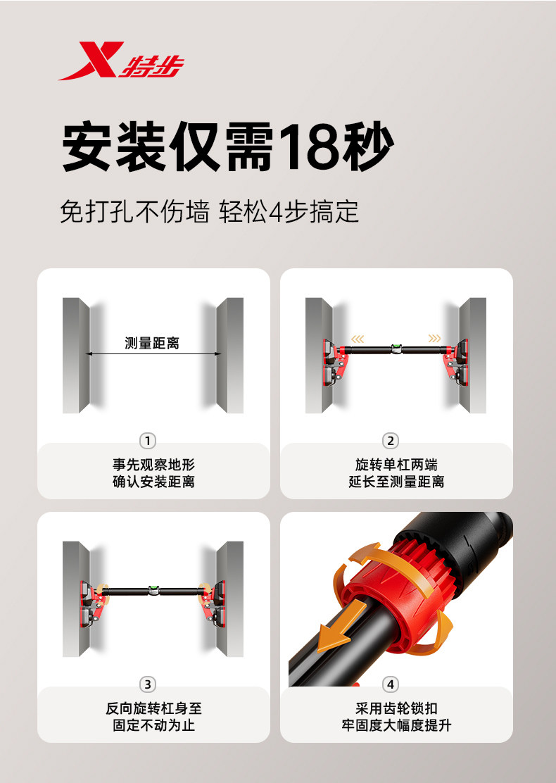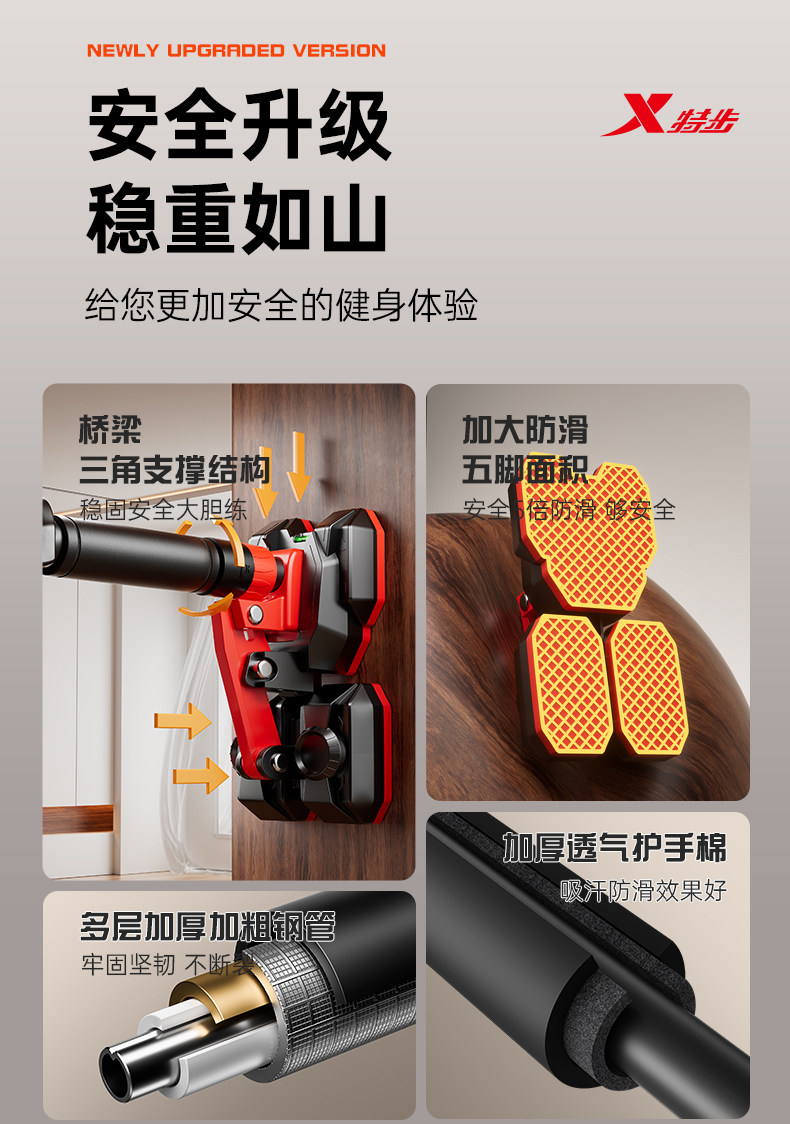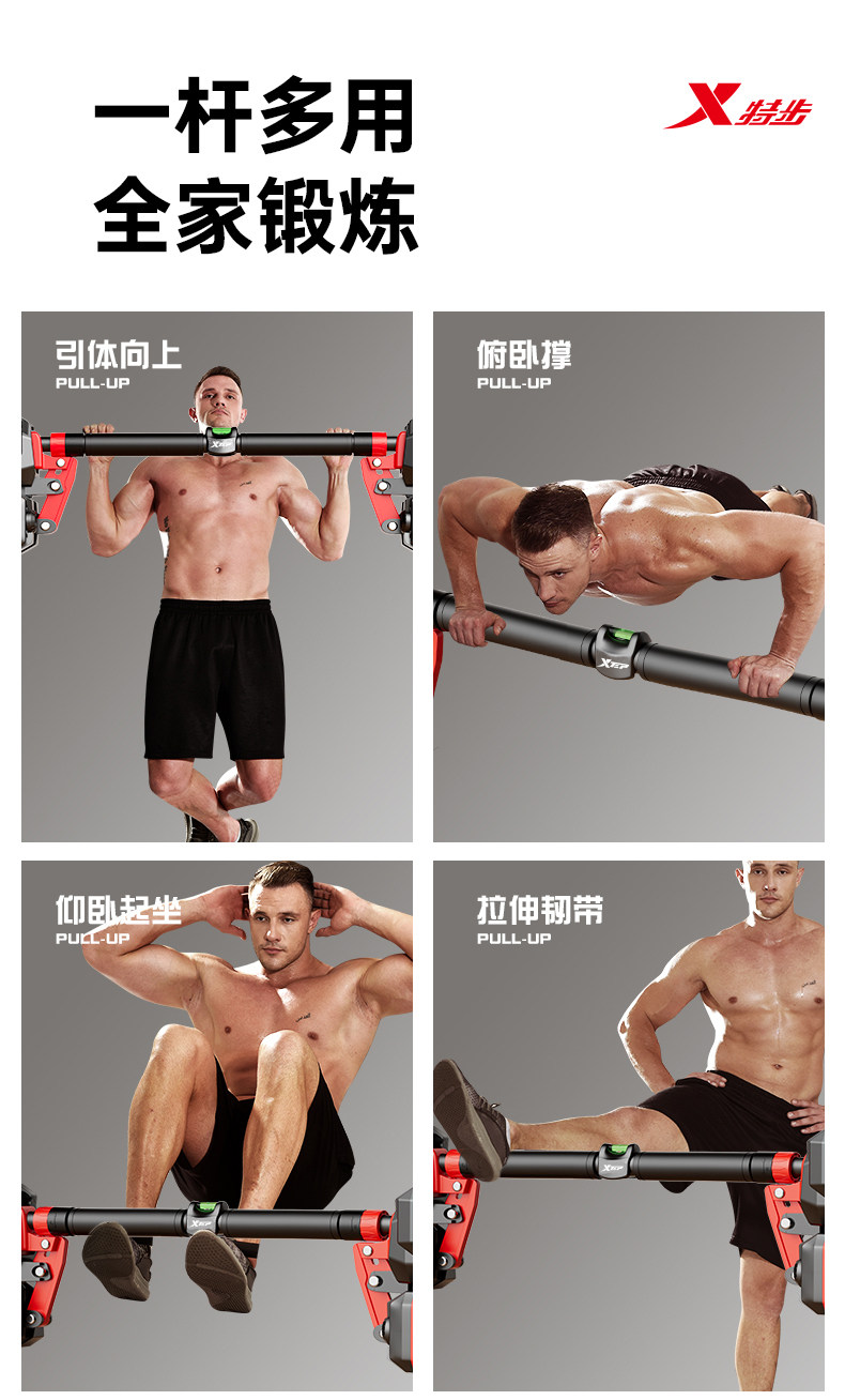 特步单杠室内家用引体向上吊杆免打孔健身器材训练家庭门框墙大人