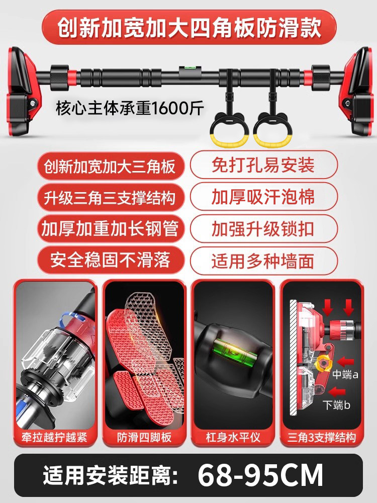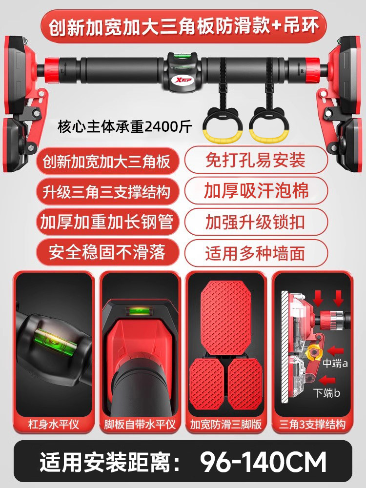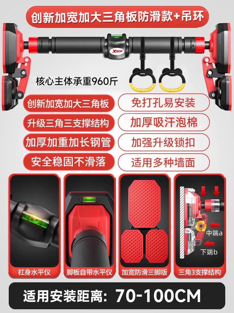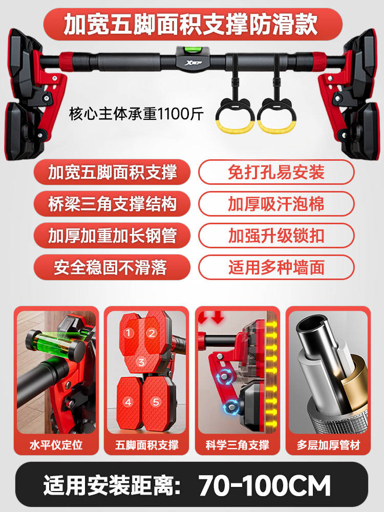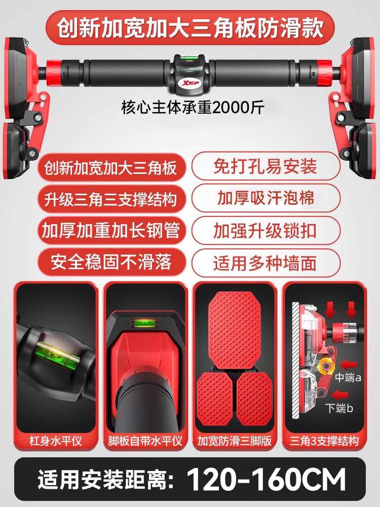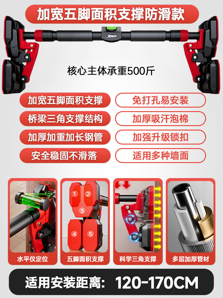 特步单杠室内家用引体向上吊杆免打孔健身器材训练家庭门框墙大人