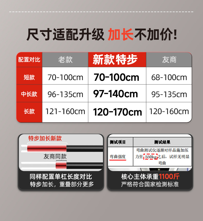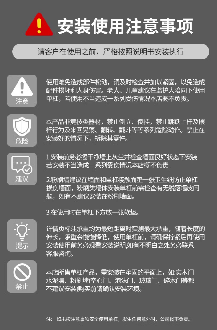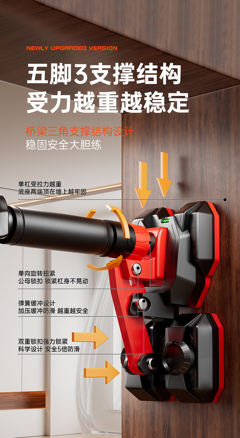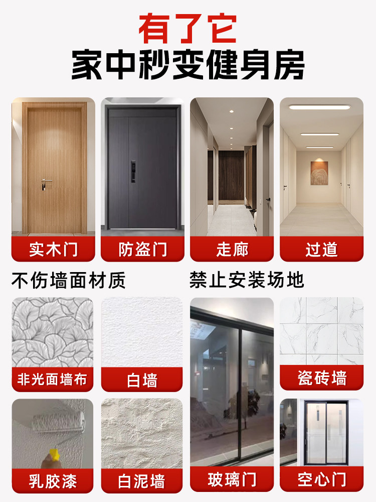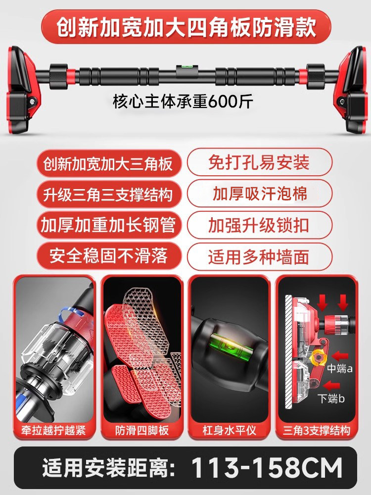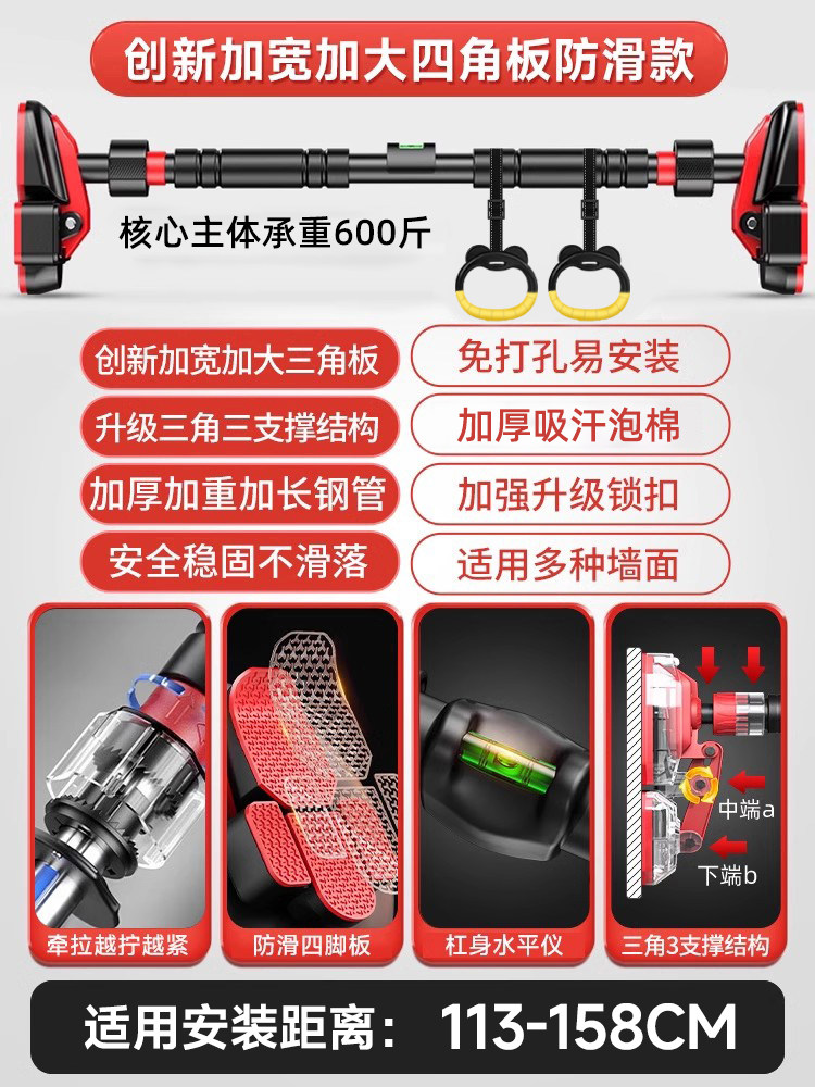 特步单杠室内家用引体向上吊杆免打孔健身器材训练家庭门框墙大人