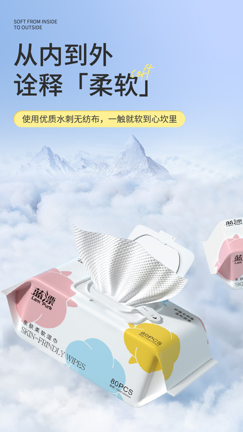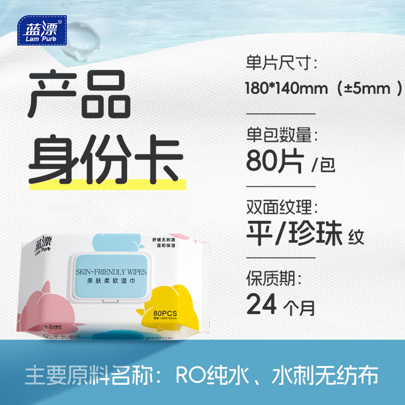 蓝漂婴儿湿巾80抽亲肤柔湿巾清洁卫生手口湿巾家用湿纸巾大包整箱