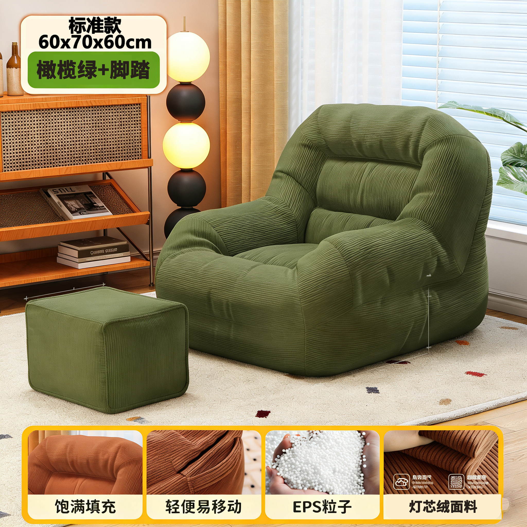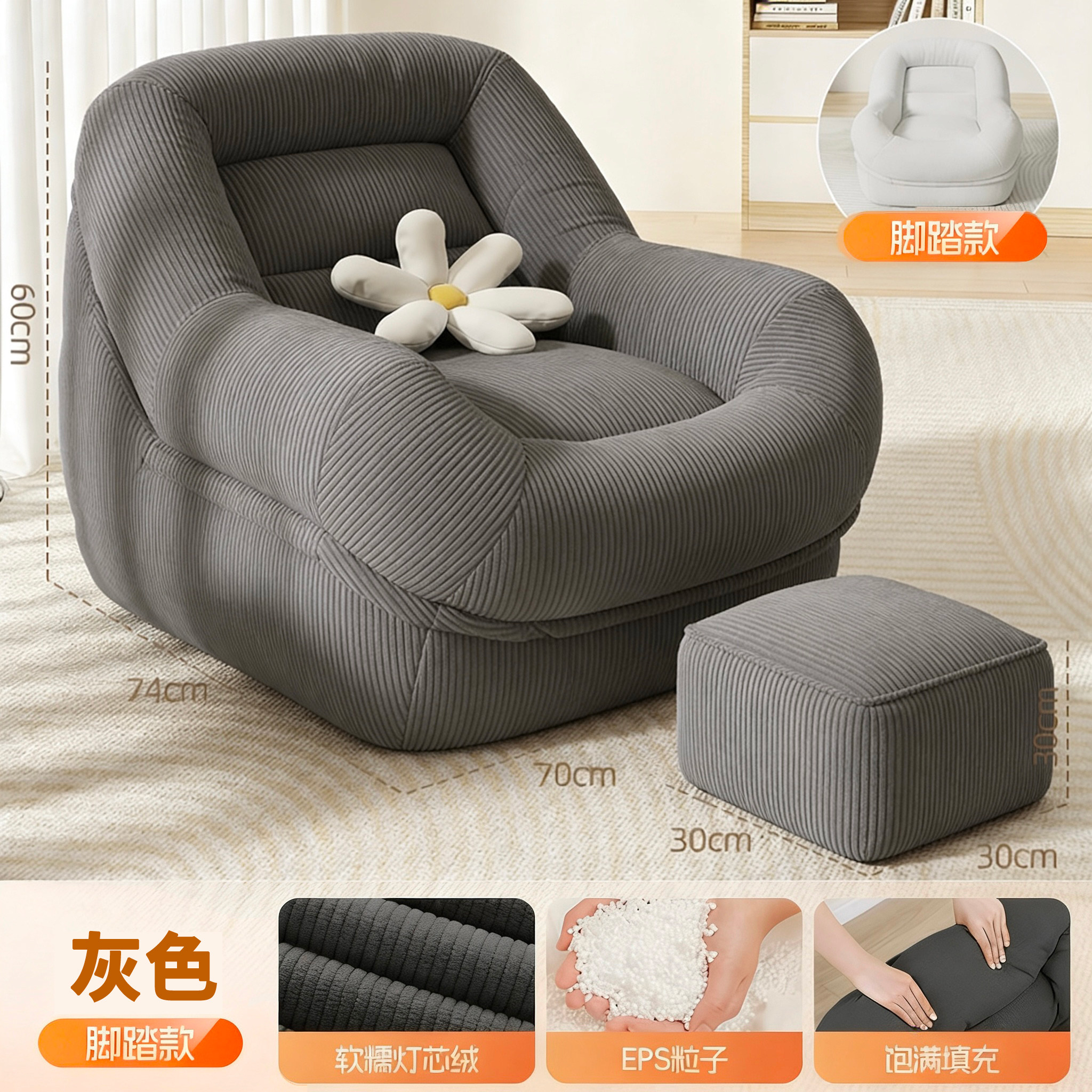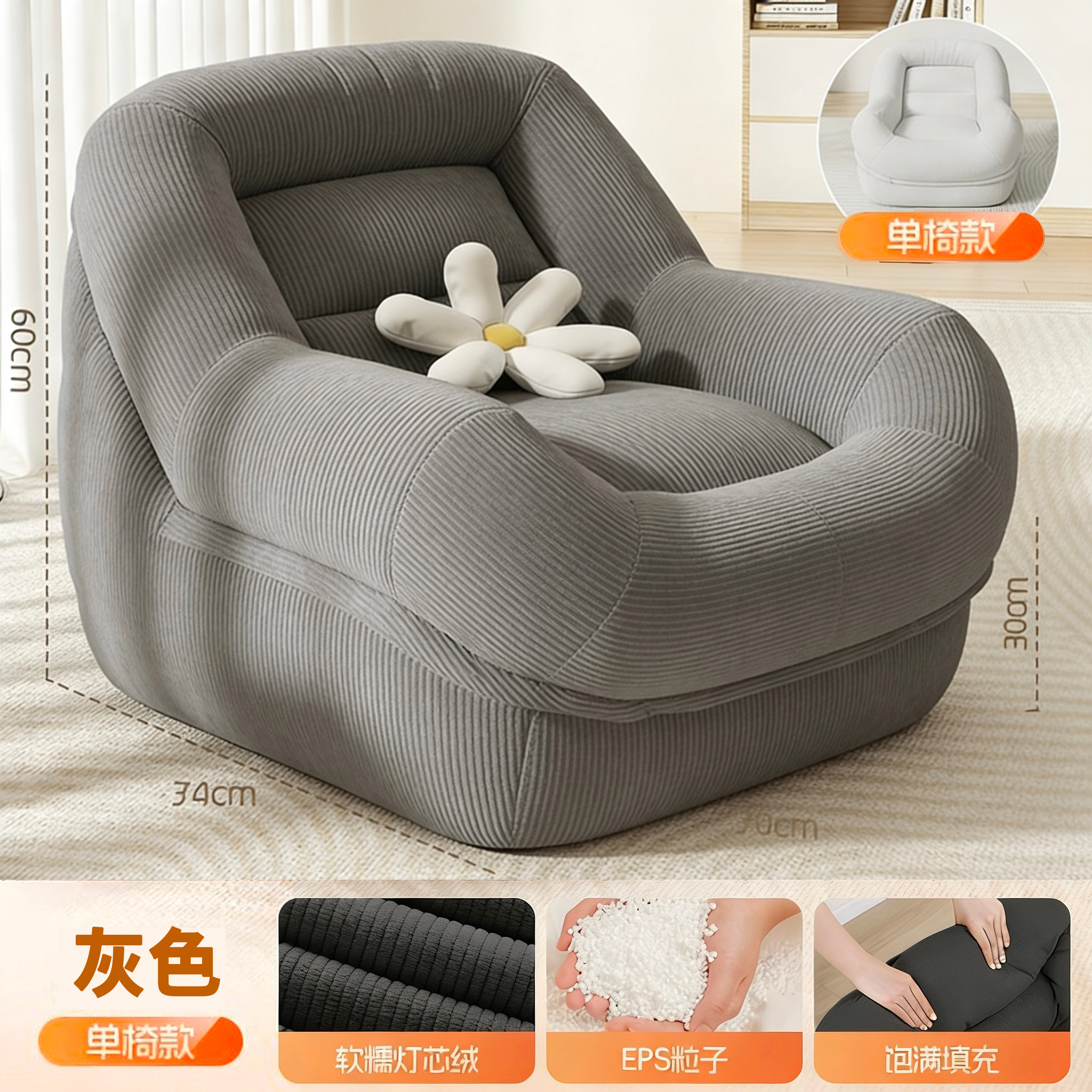 懒人沙发可睡可躺客厅单人小户型卧室阳台休闲舒适看书解压窝窝椅