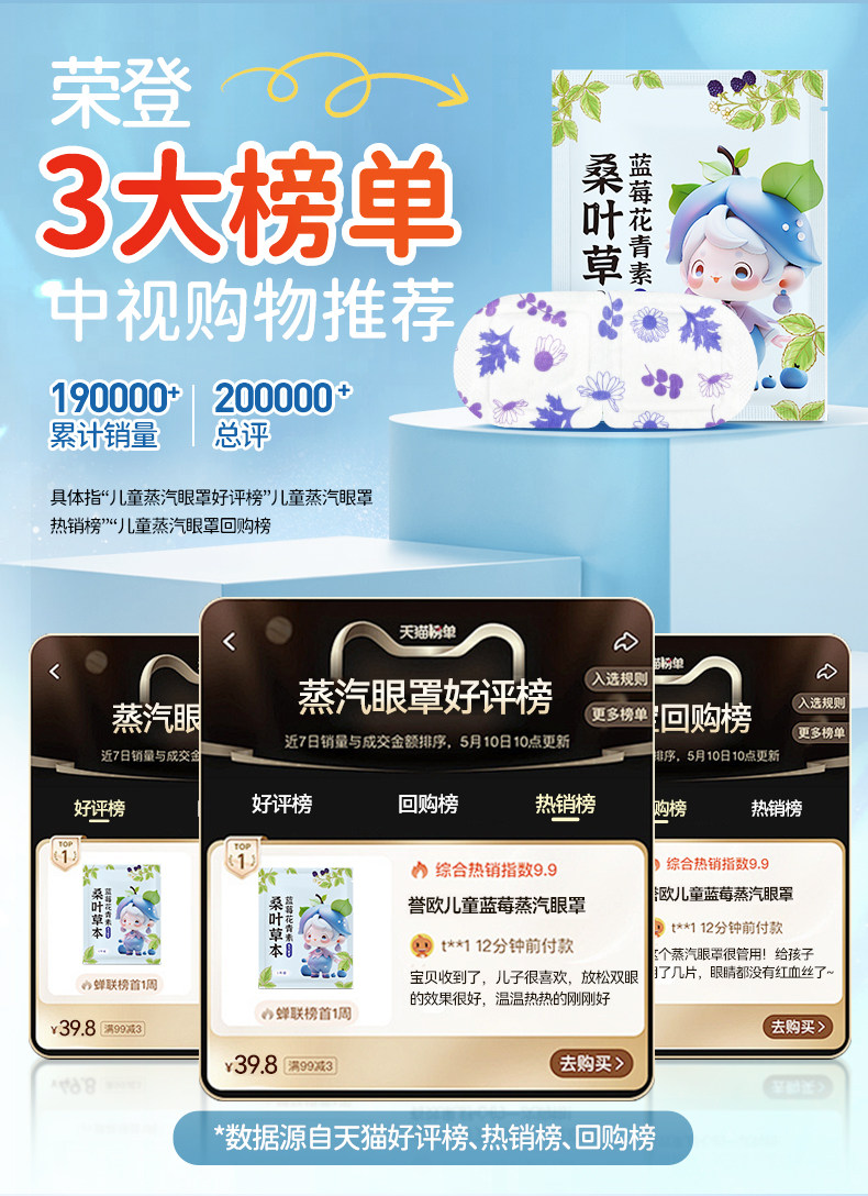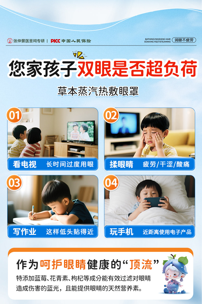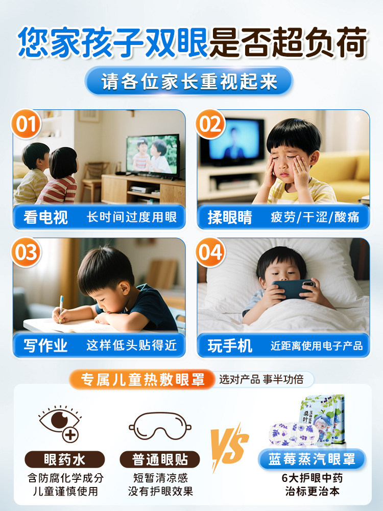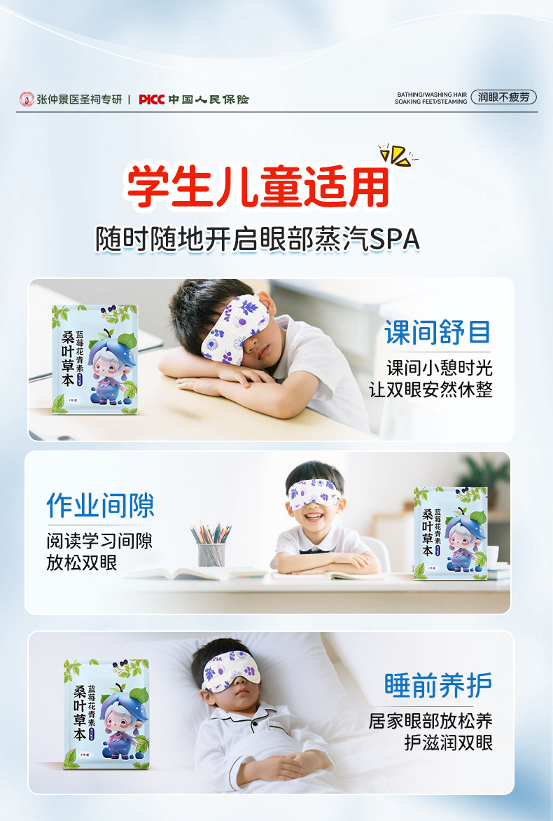 艾草蒸汽眼罩儿童学生专用眼部睡眠遮光叶黄素自发热敷护眼贴正品
