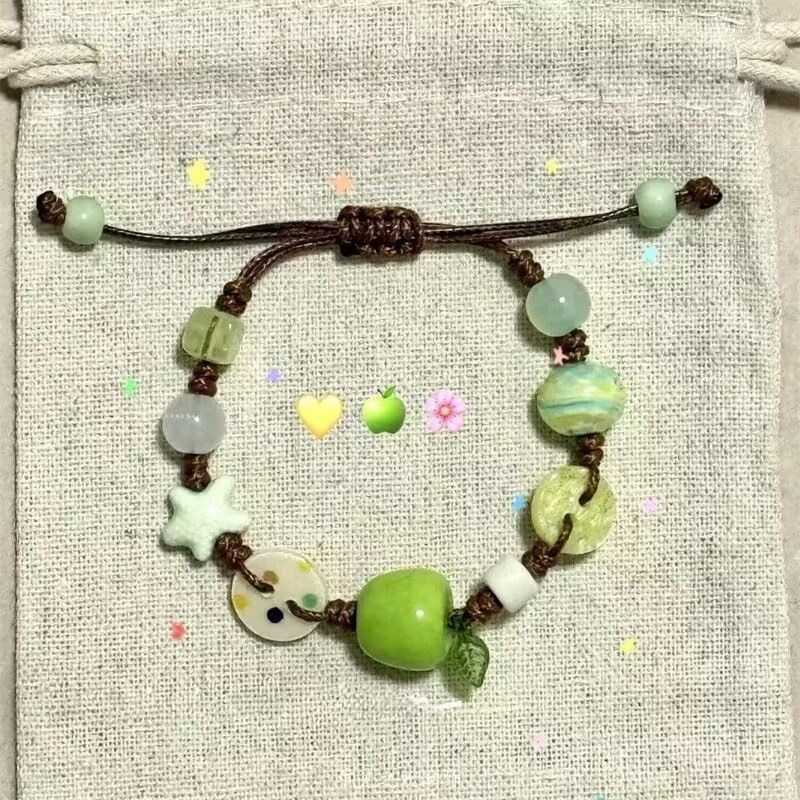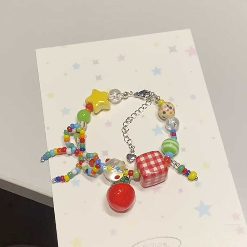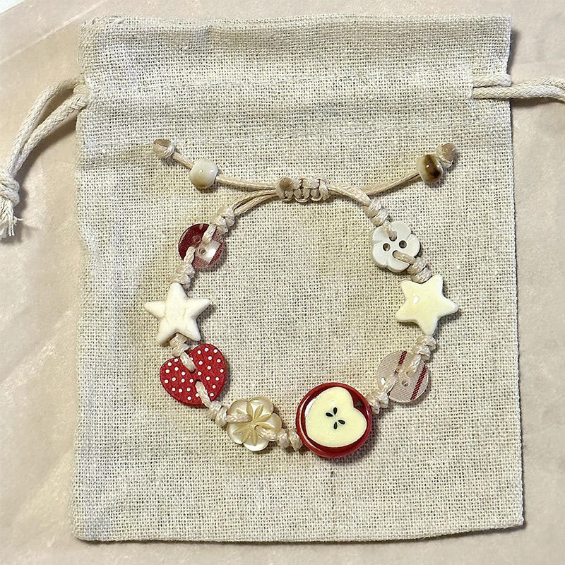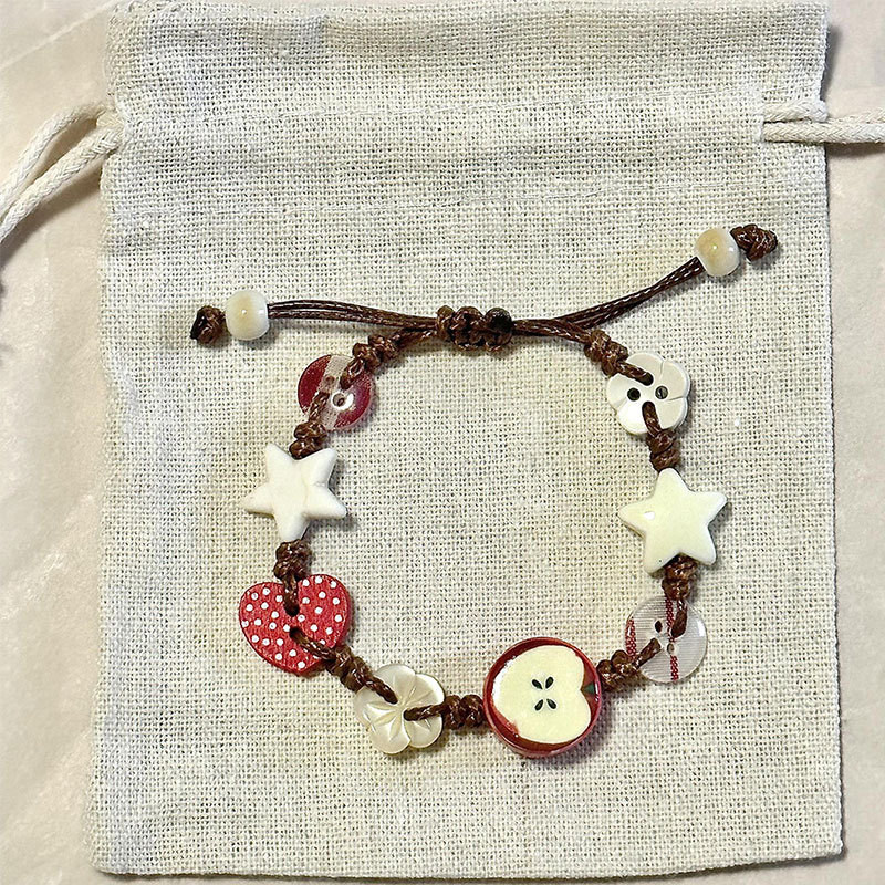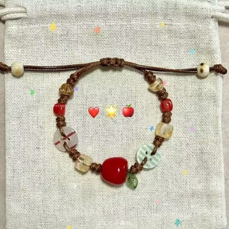 苹果乐园手工编织小众彩色串珠手链纽扣可爱甜美清新2025新款手饰