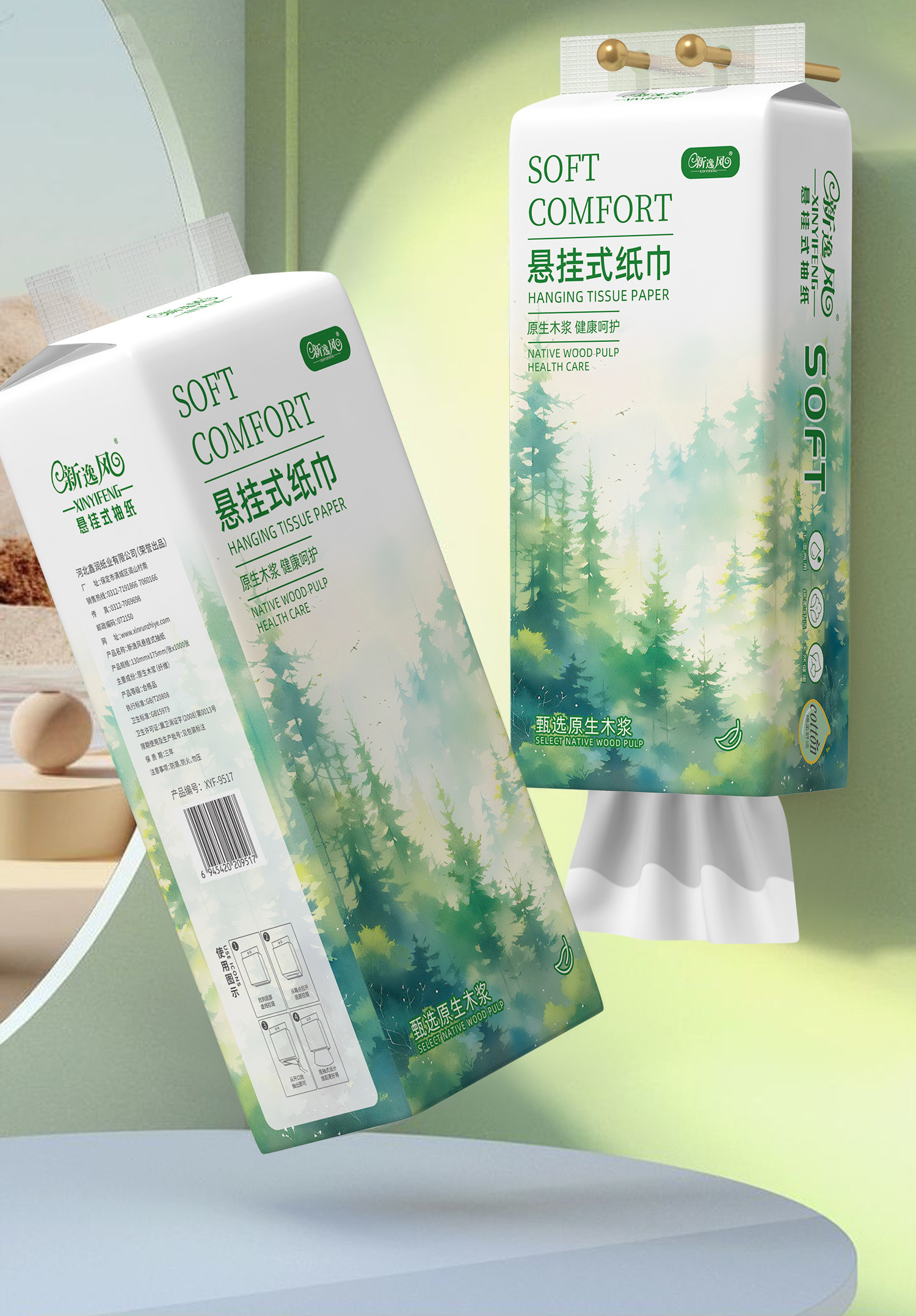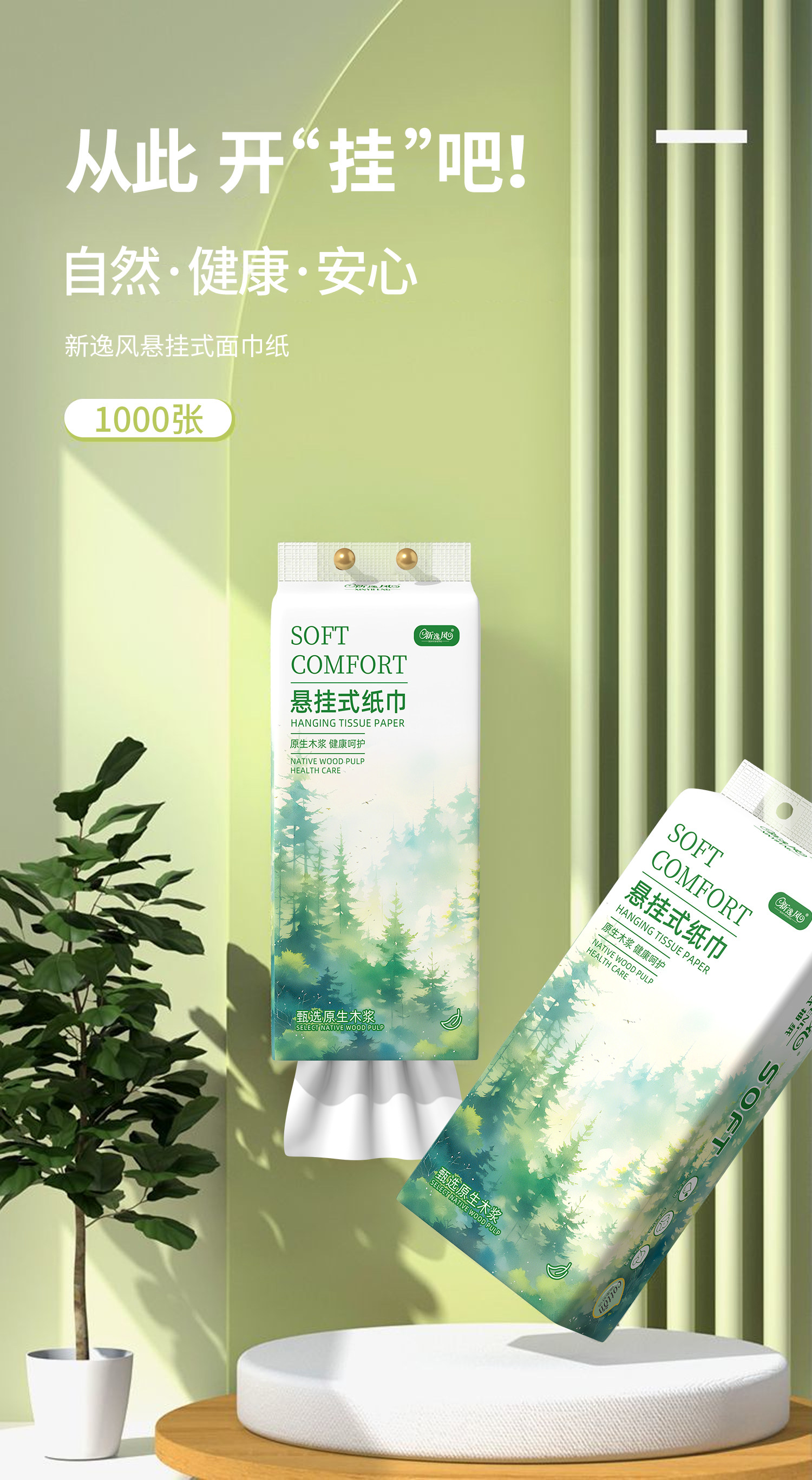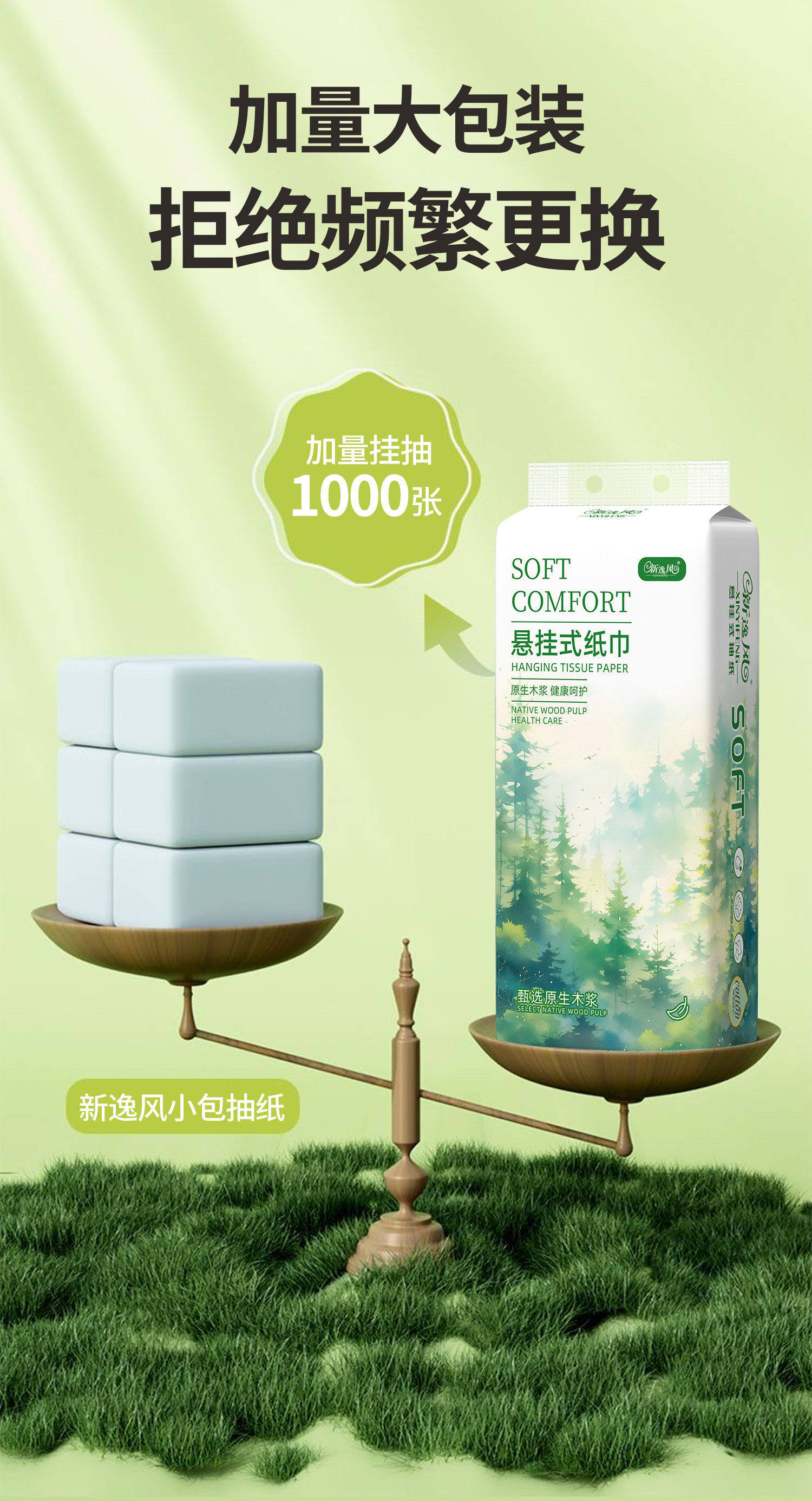 新逸风悬挂式抽纸1800张每提家用抽纸办公用纸柔厚细腻大量加厚